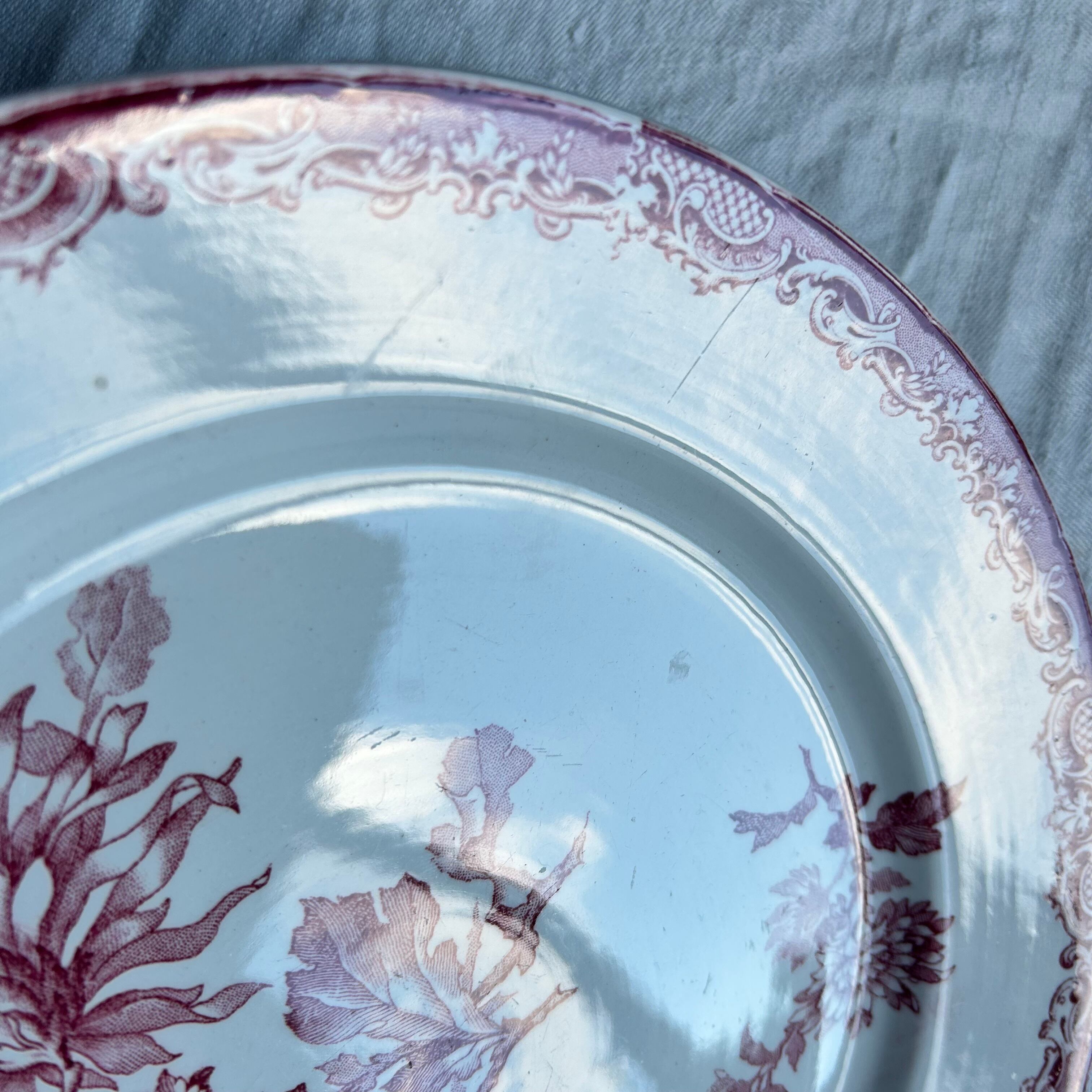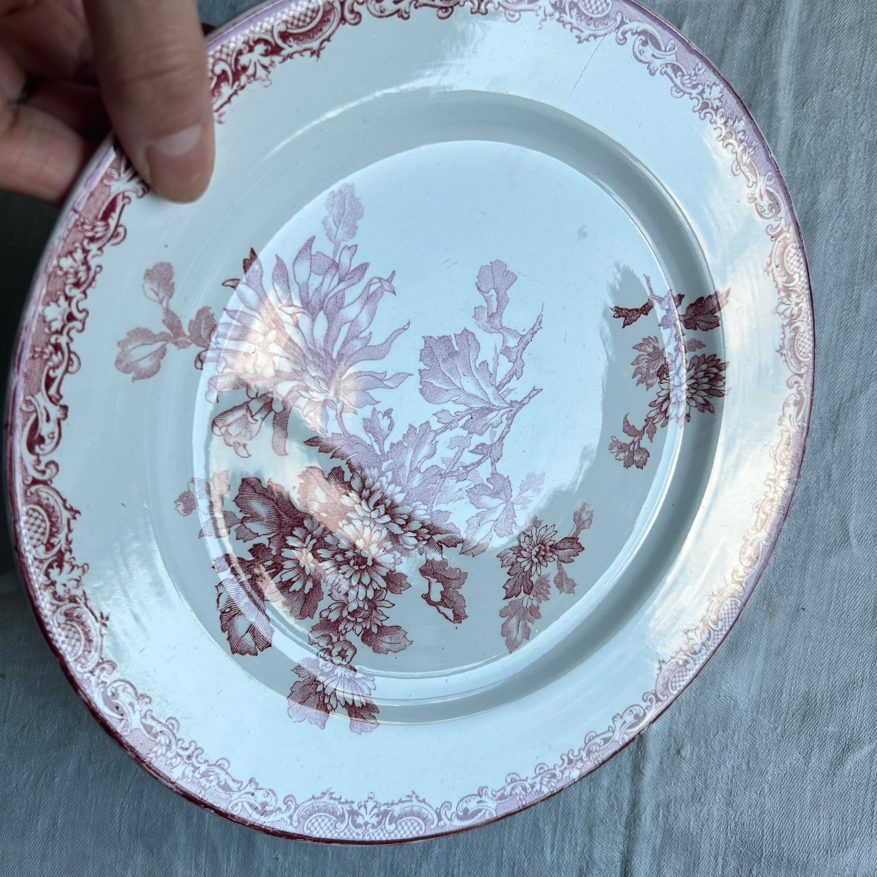 sarreguemines フランス 菊 ピンク 赤 アンティーク プレート