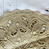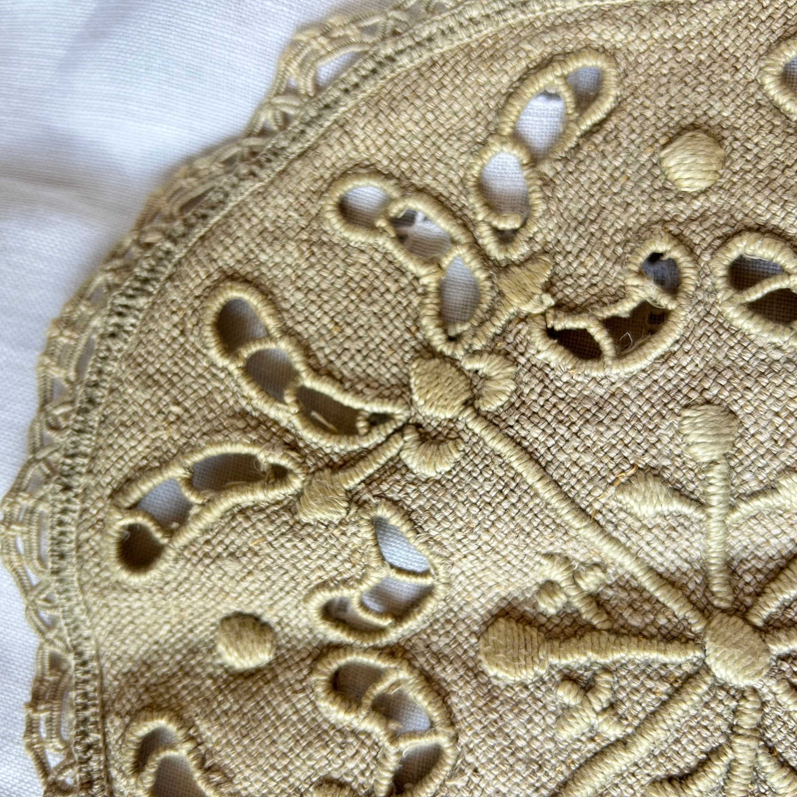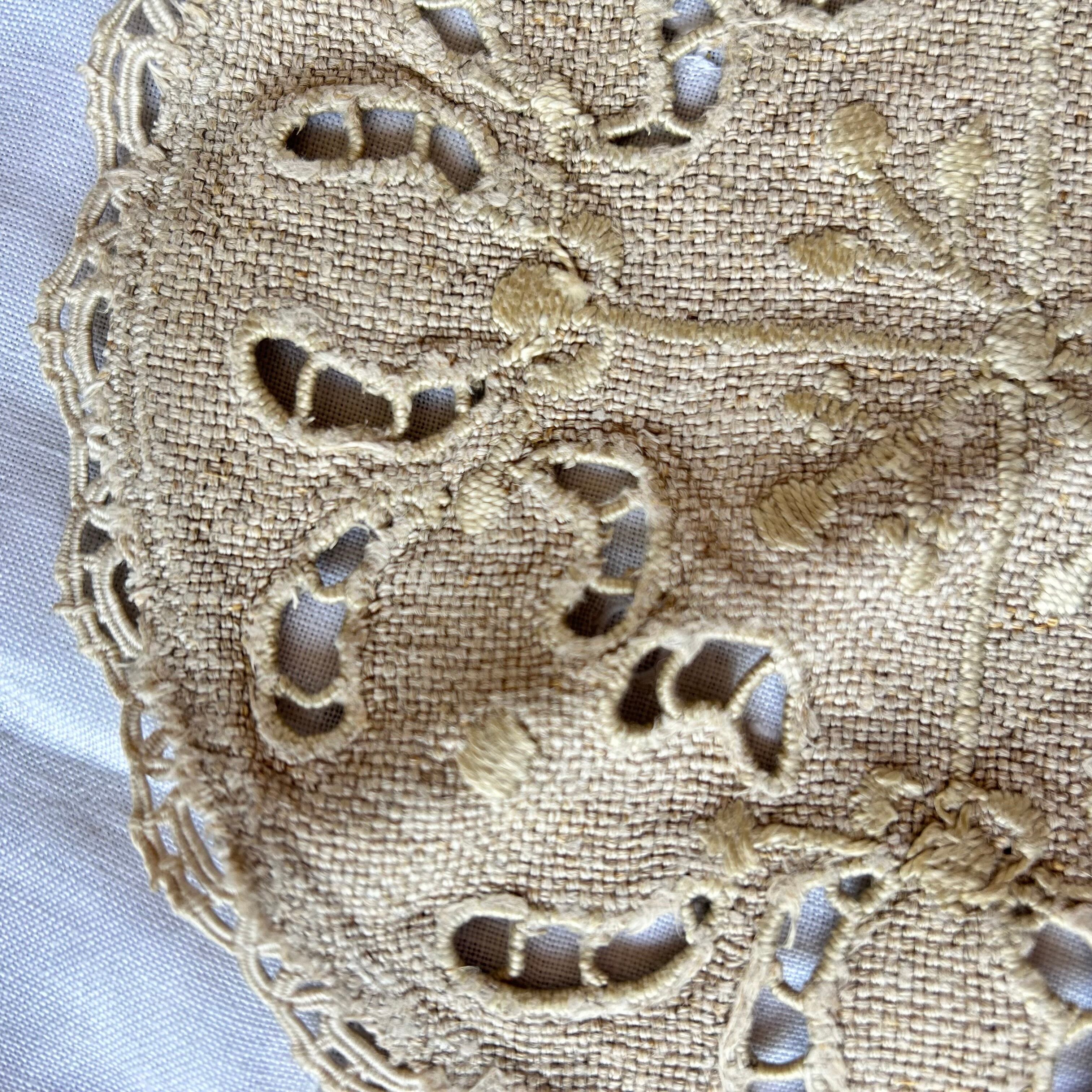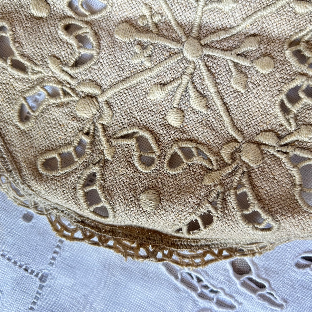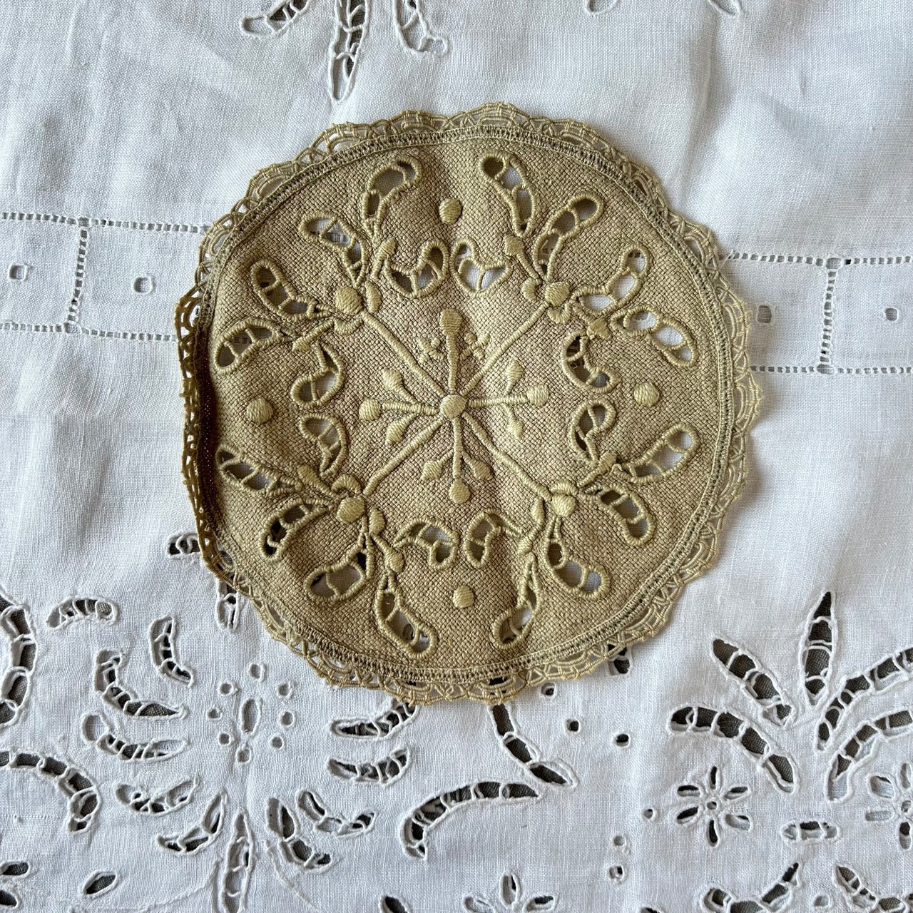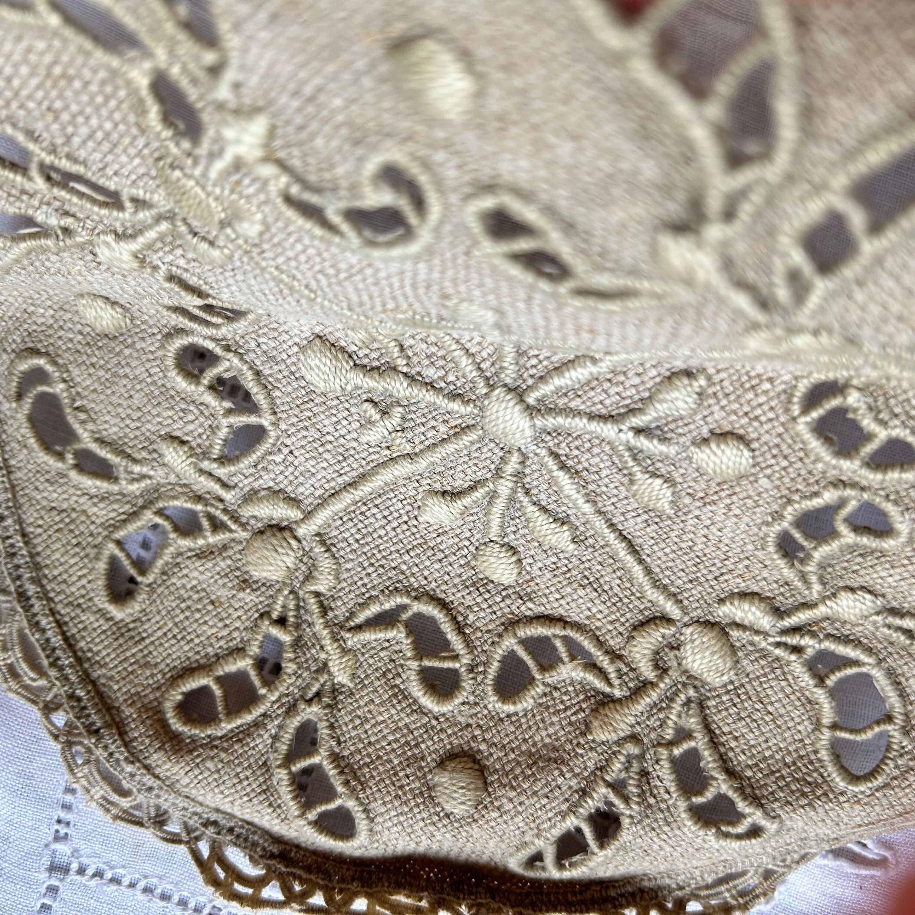 リネン 生成り ドイリー 麻 ヤドリギ レース 花柄 クロス フランス アンティーク 刺繍