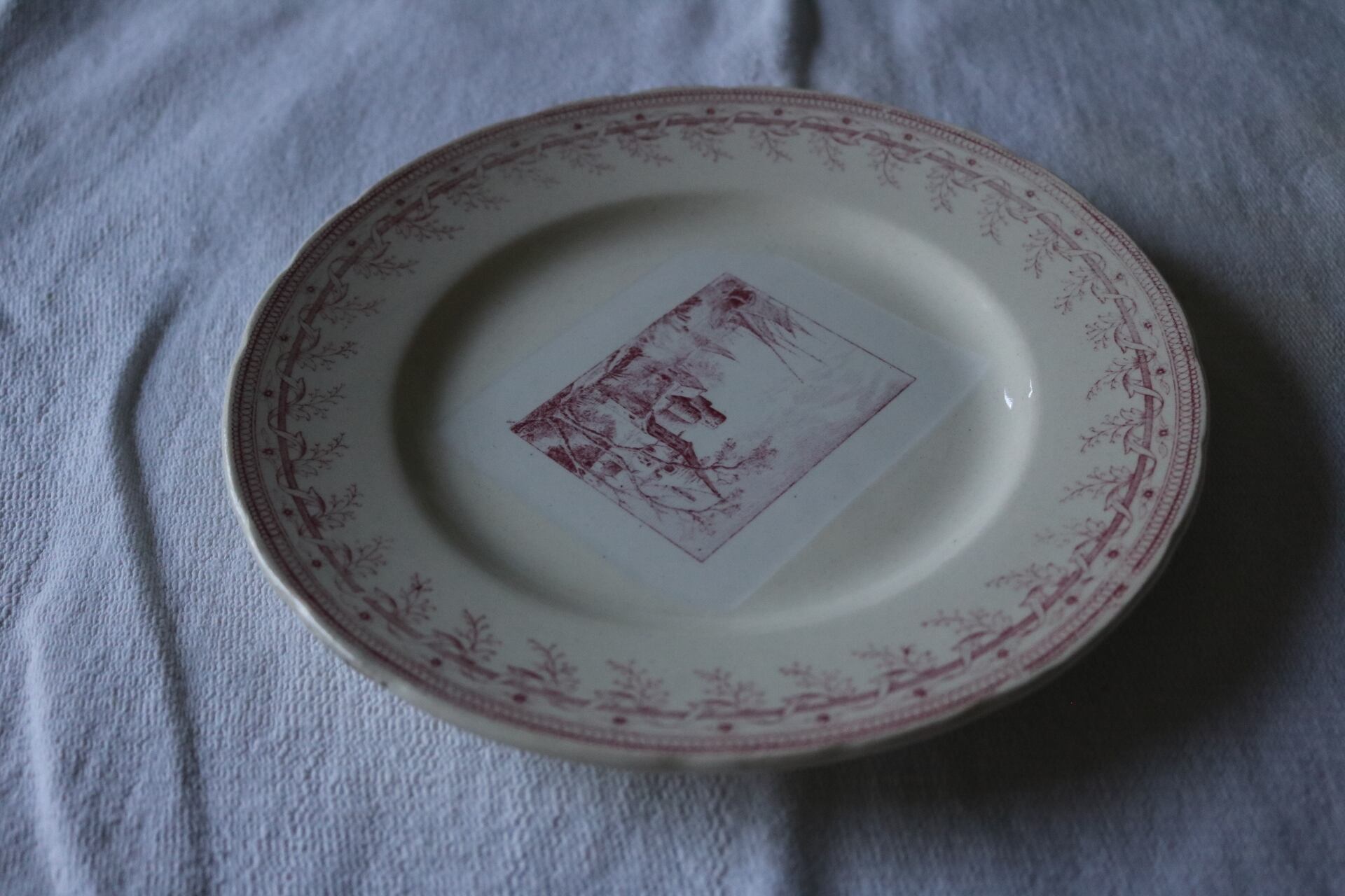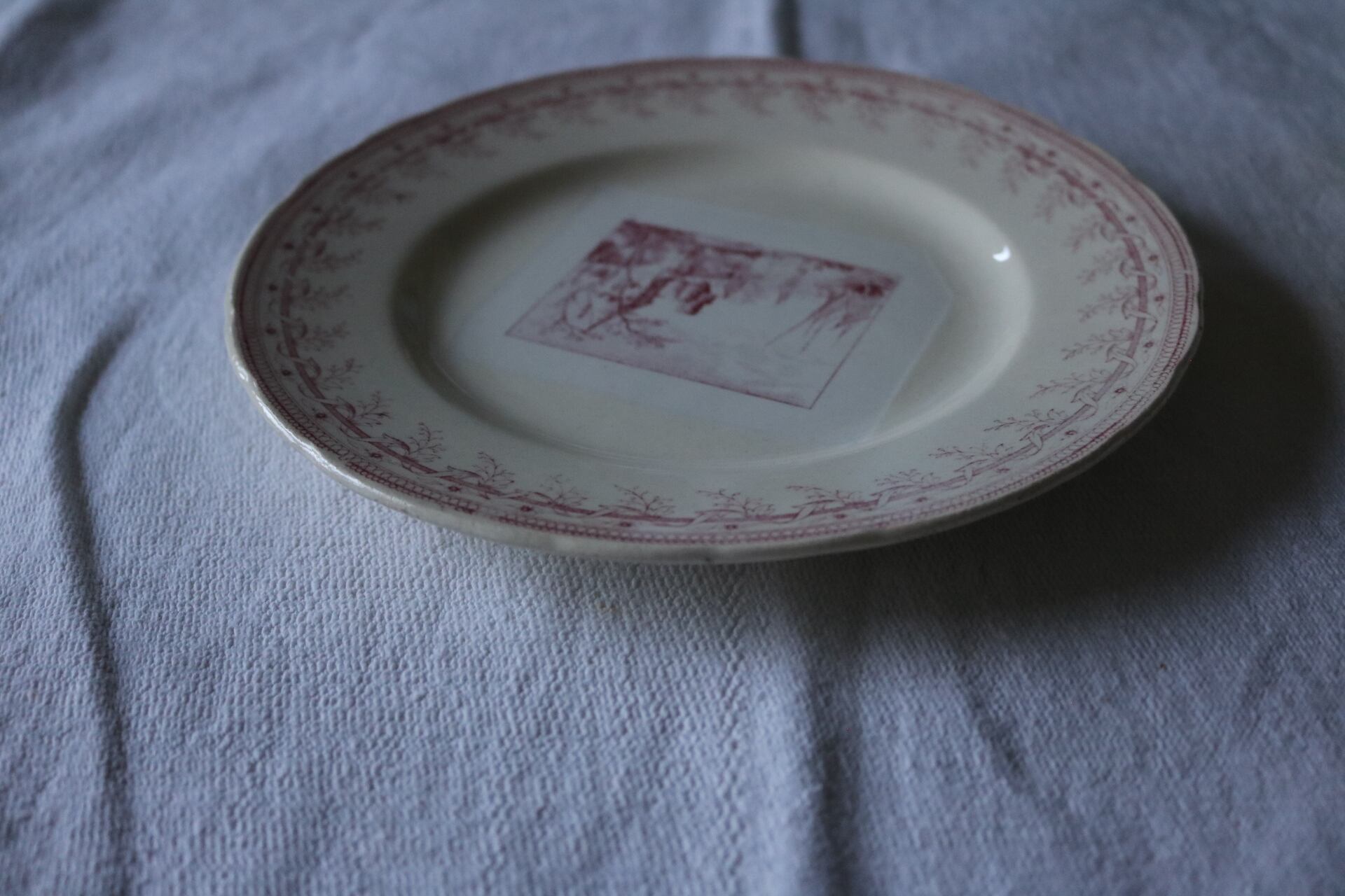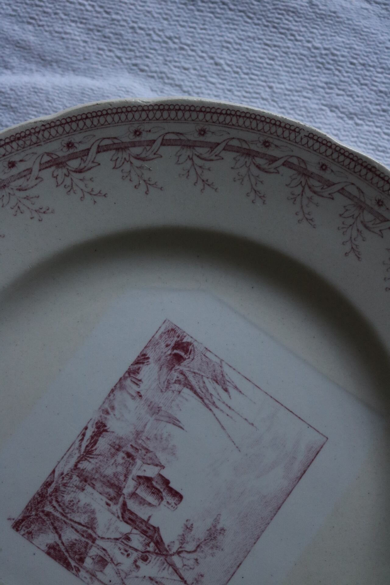 花リム 風景 写真 絵画 ピンク 赤 Creil et montereau プレート