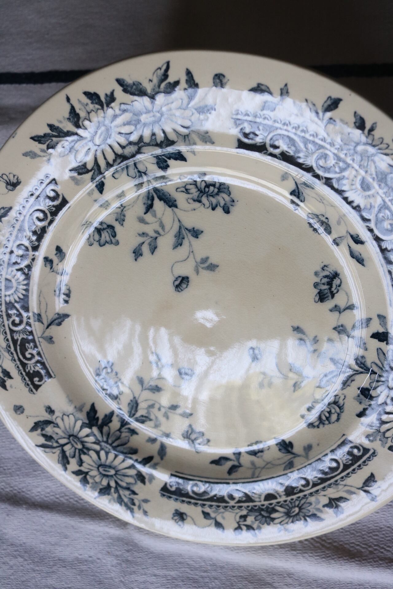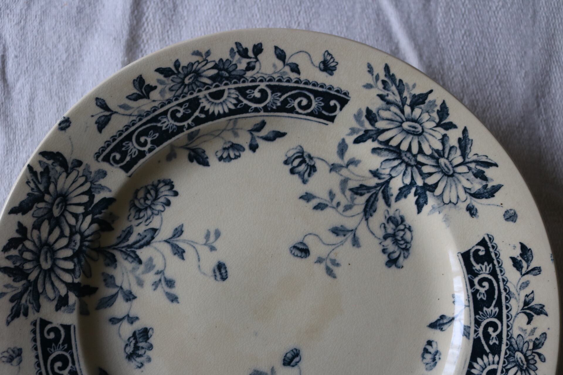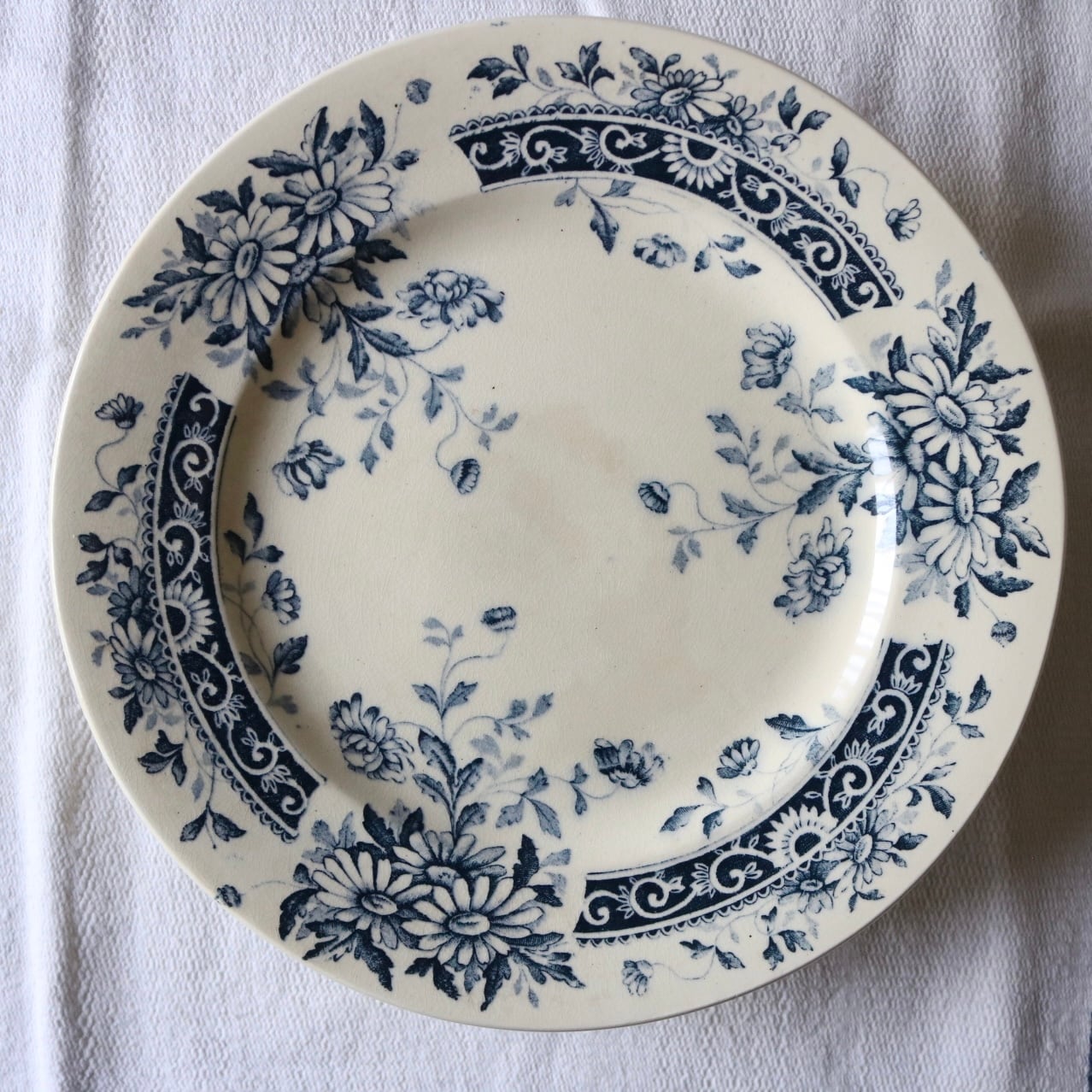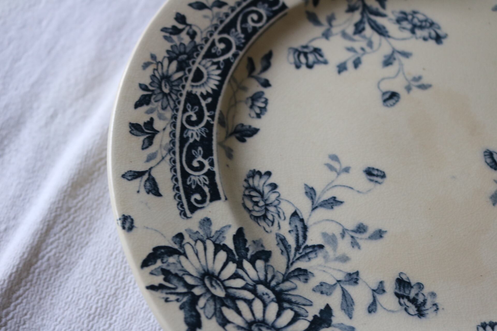 コンポティエ ケーキ台 小花柄 マーガレット 藍色 ブルー フランス アンティーク プレート