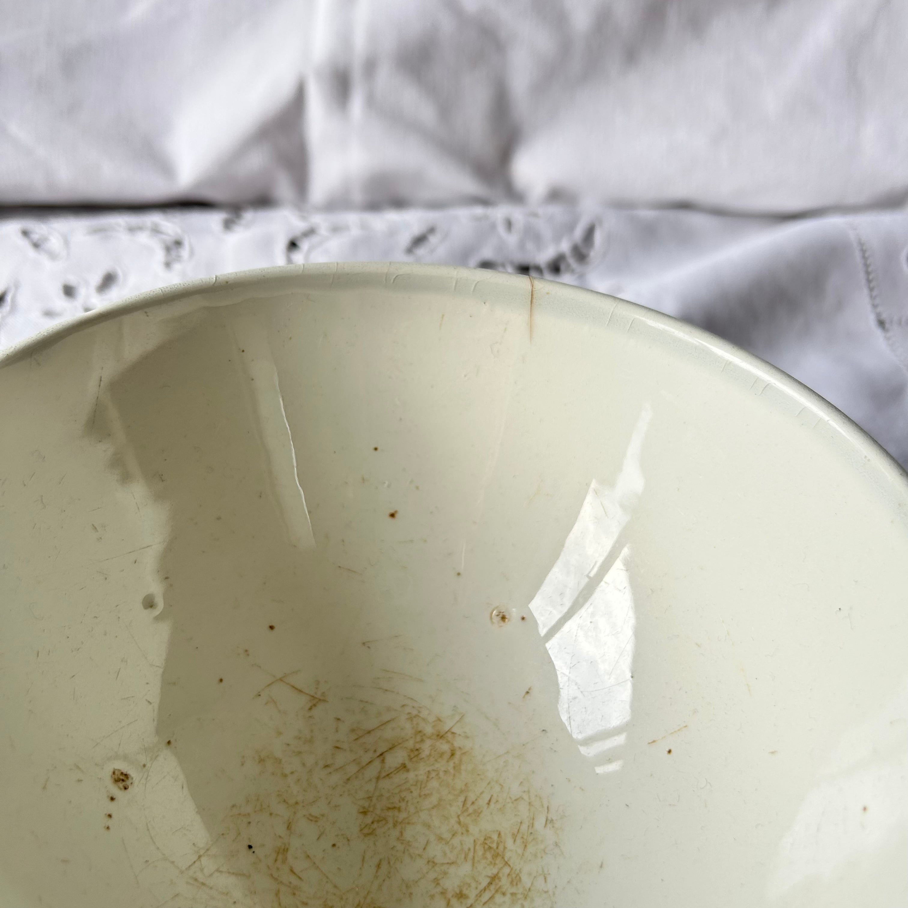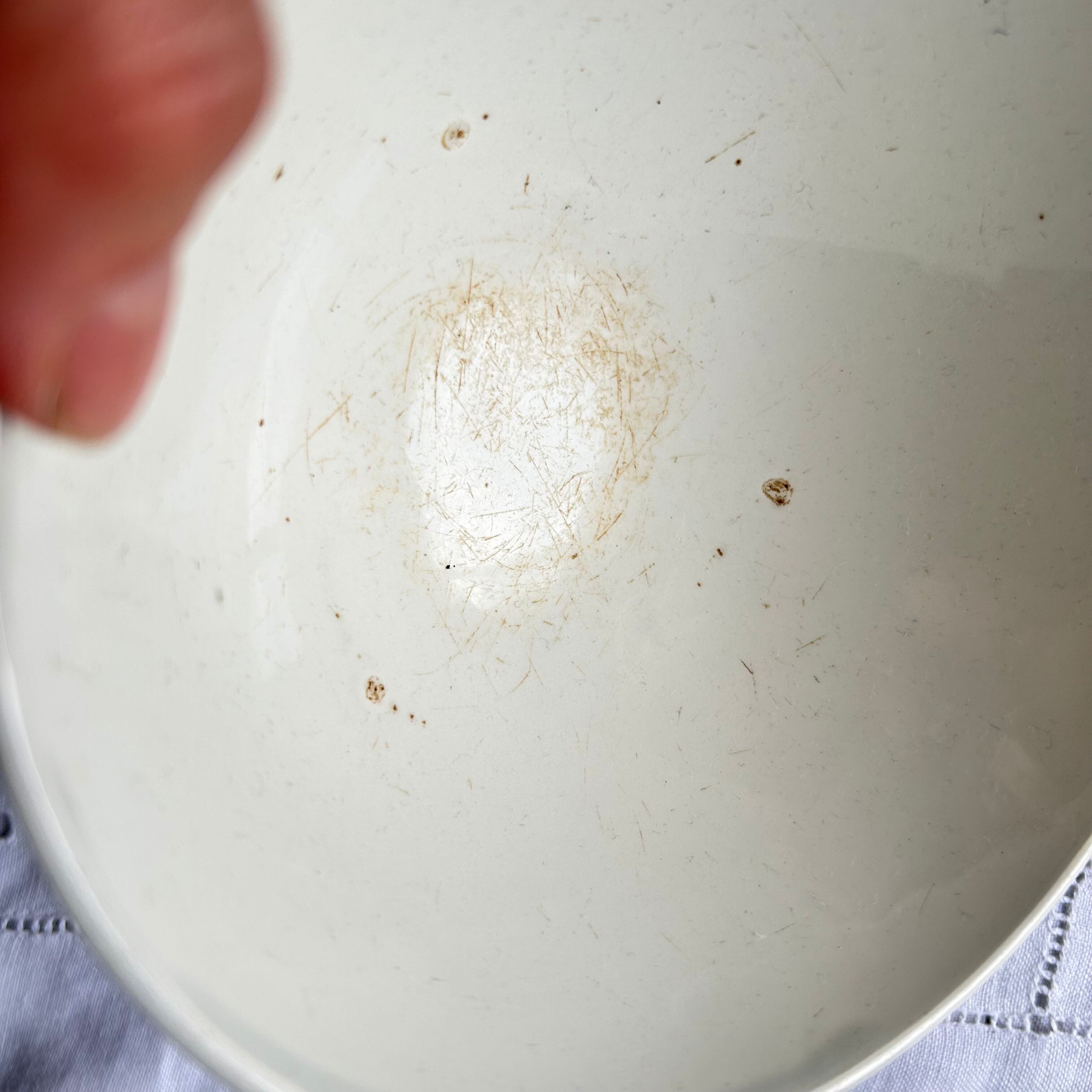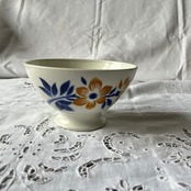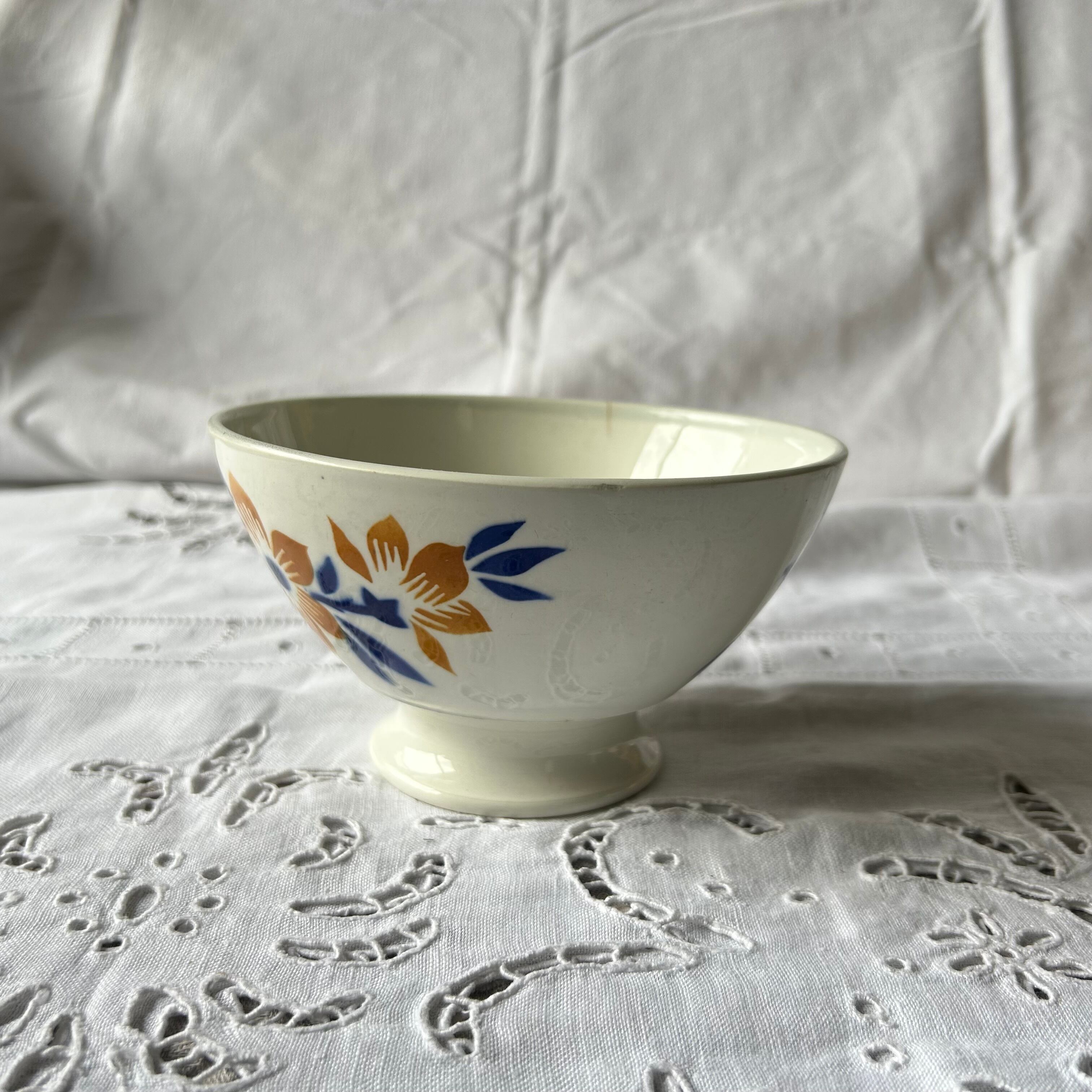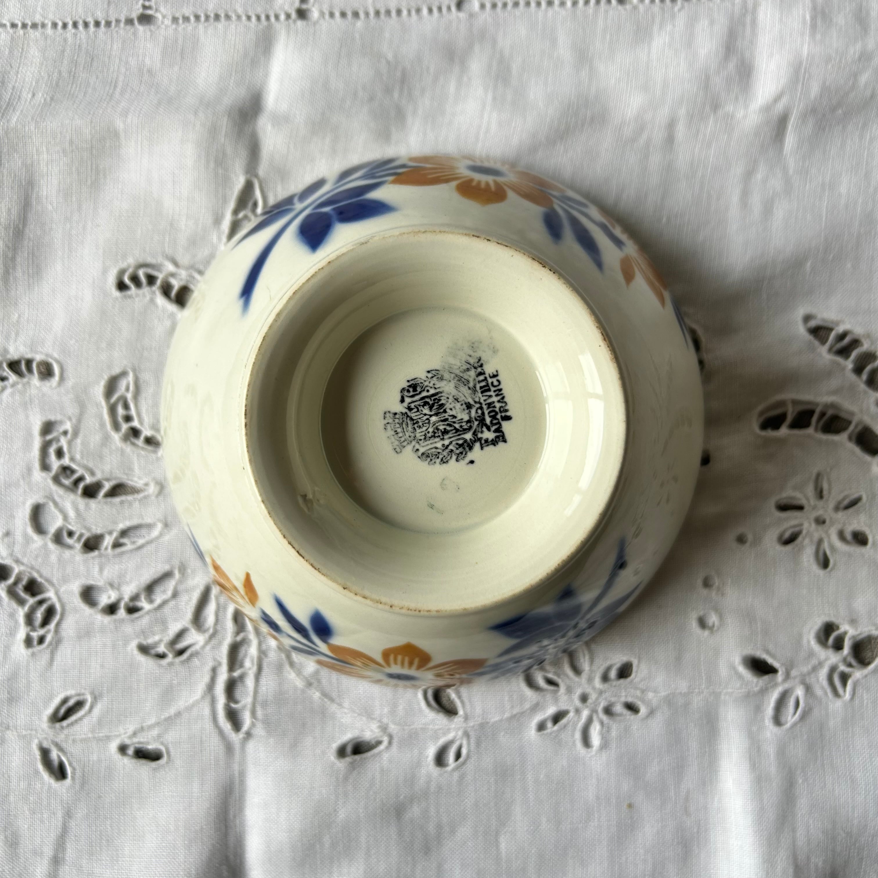 Badonviller ステンシル オレンジ ブルー 大ぶり 花柄 カフェオレボウル フランス アンティーク