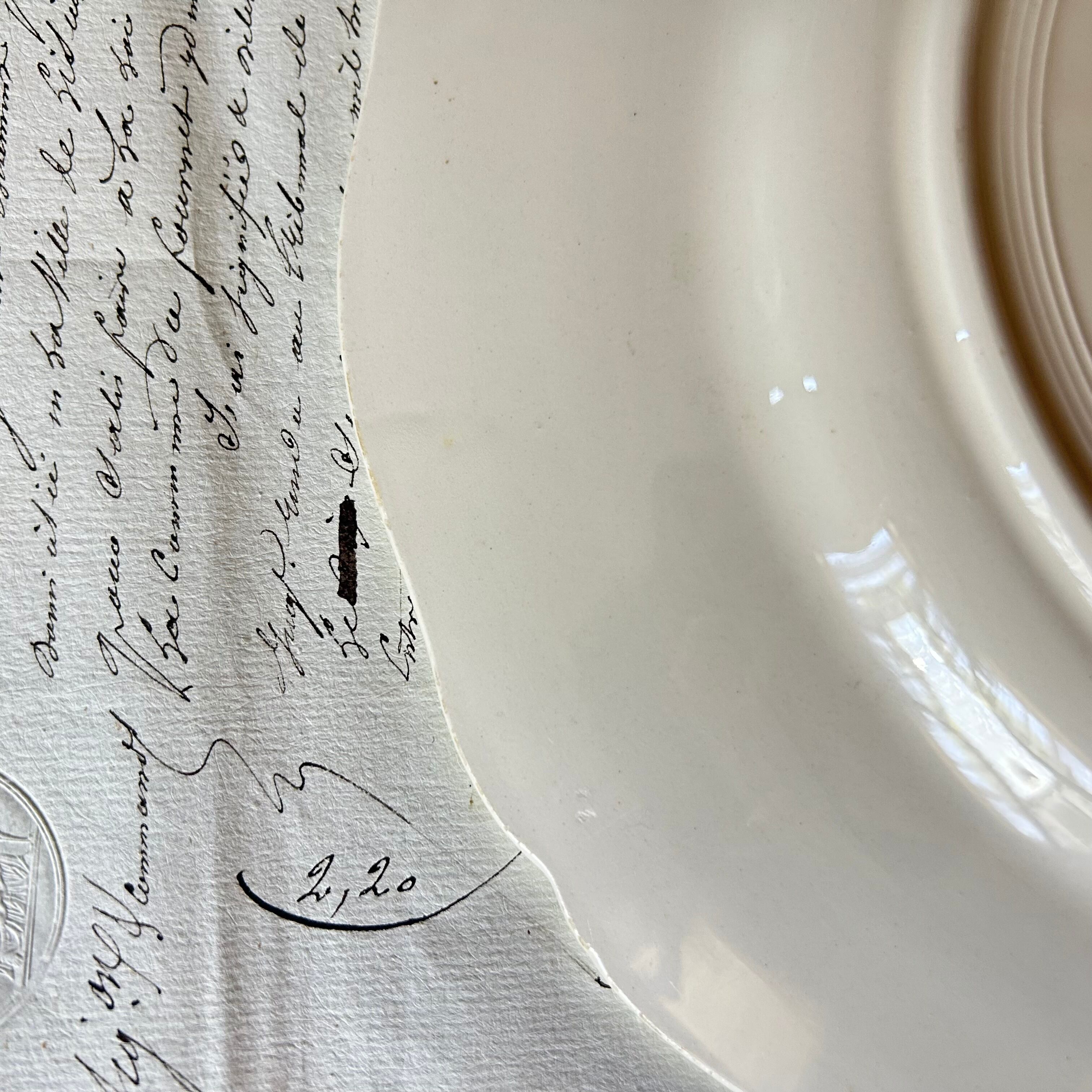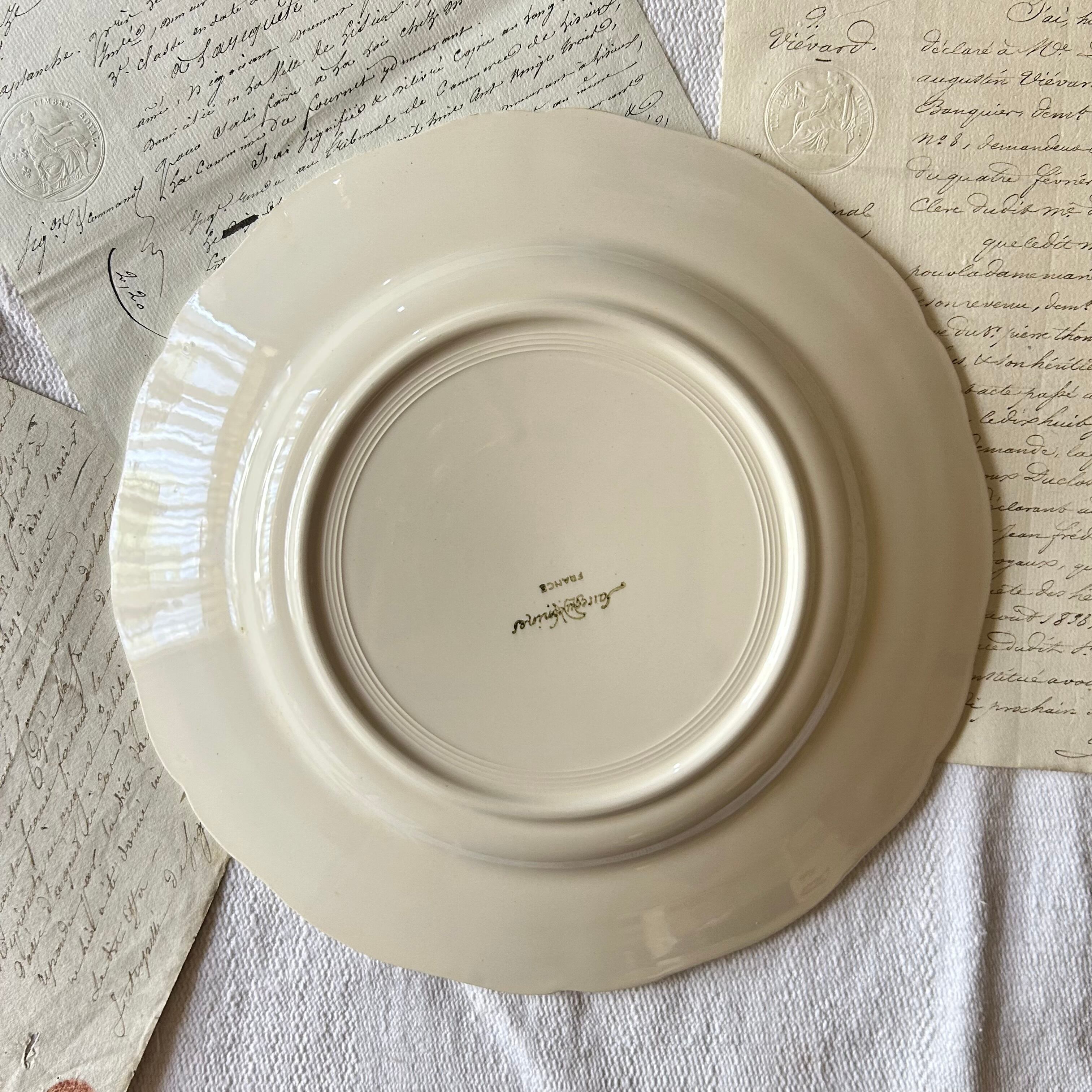 Sarreguemines 花リム アイボリー アンティーク フランス