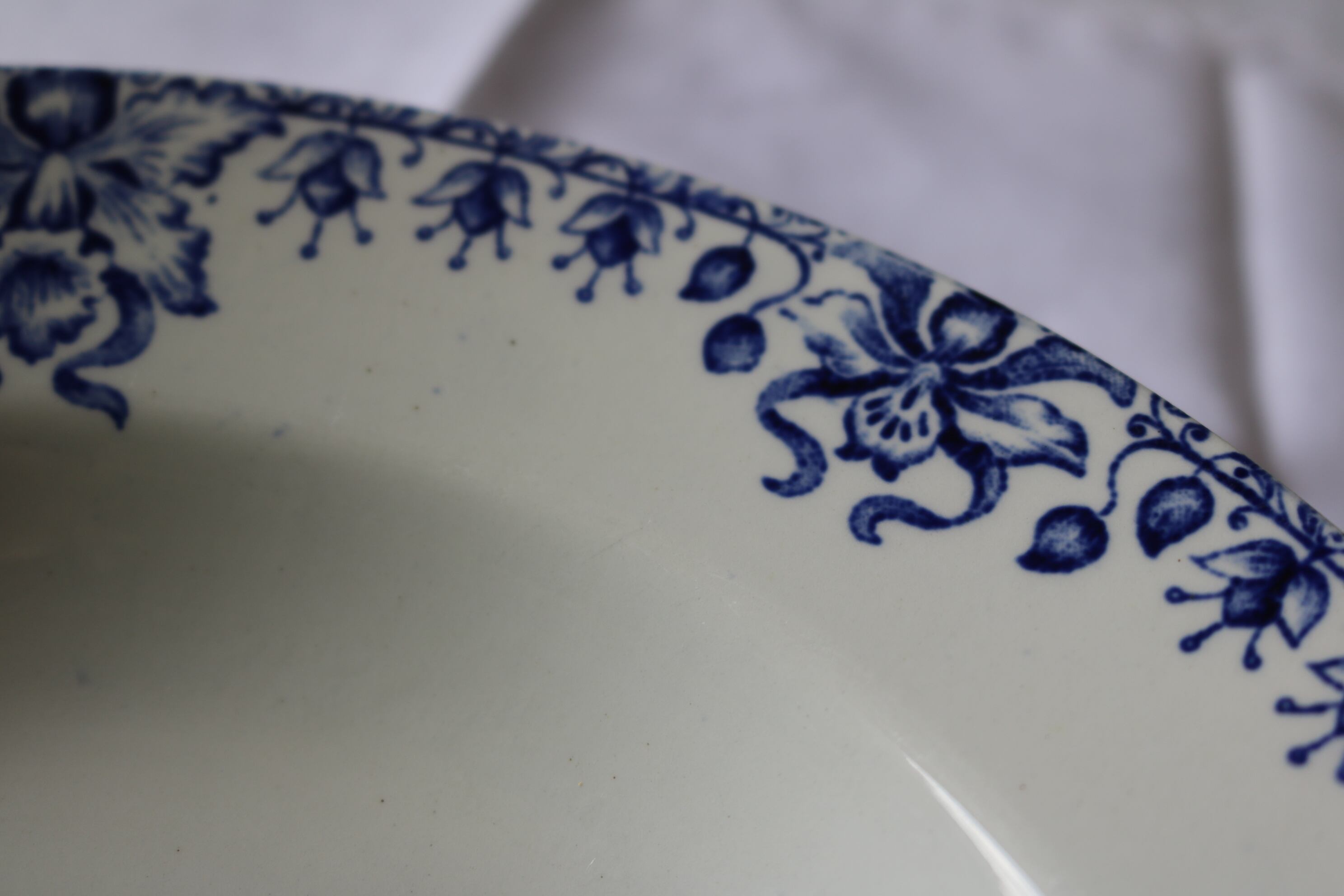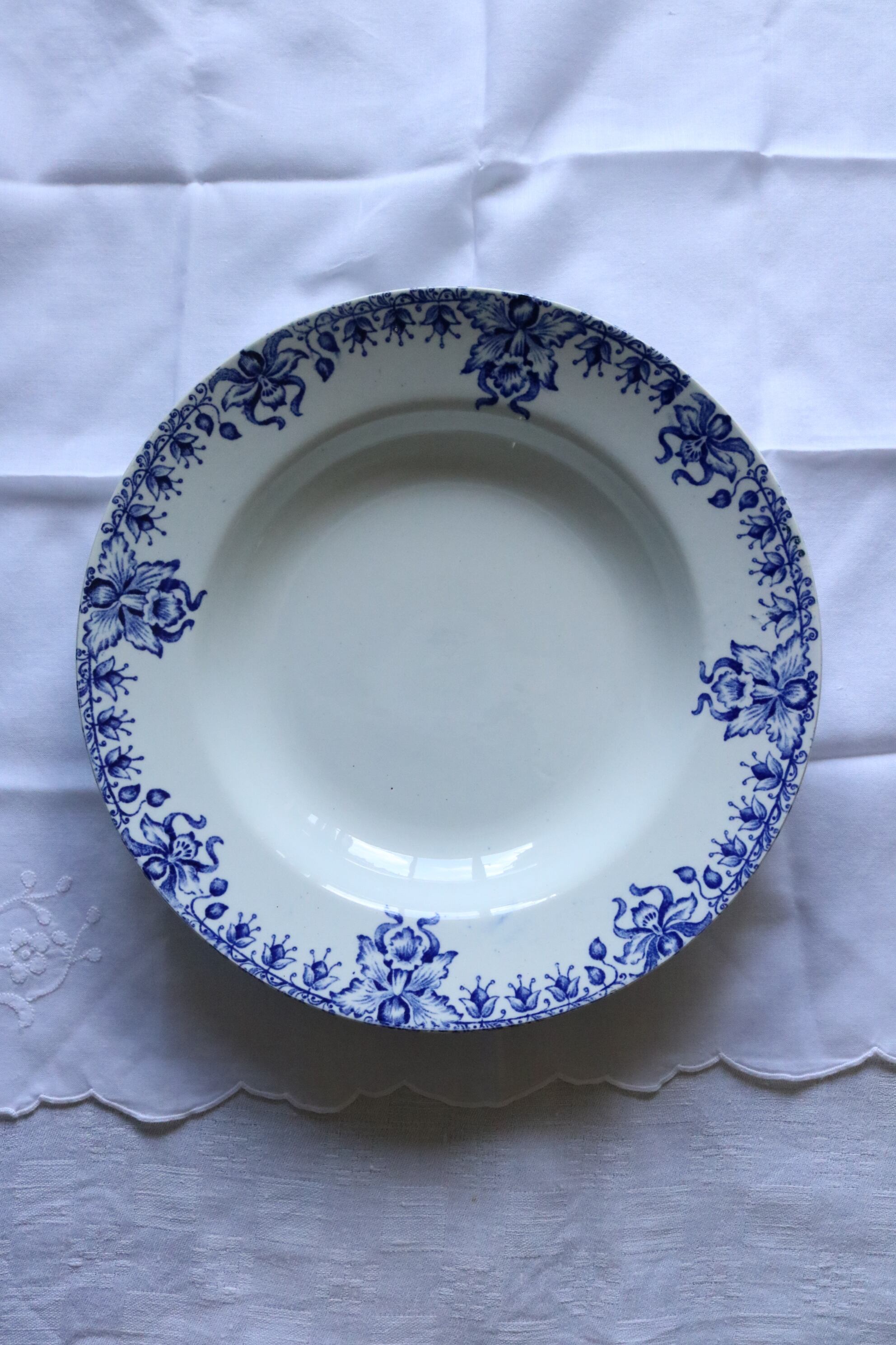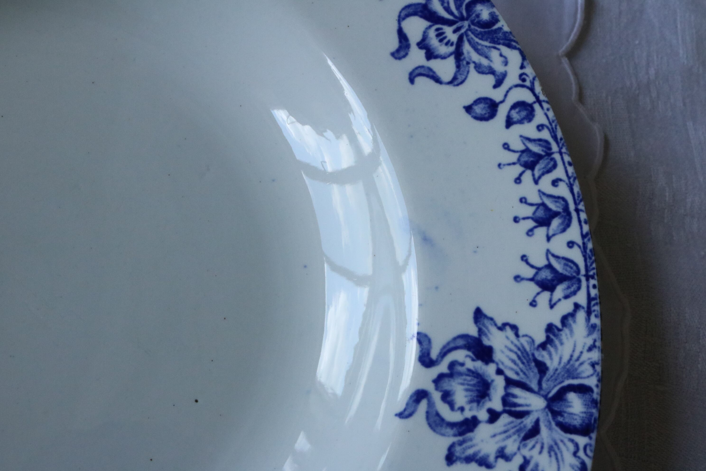 はっきりとした紫がかったブルーの蘭の花柄が素敵な深皿です。