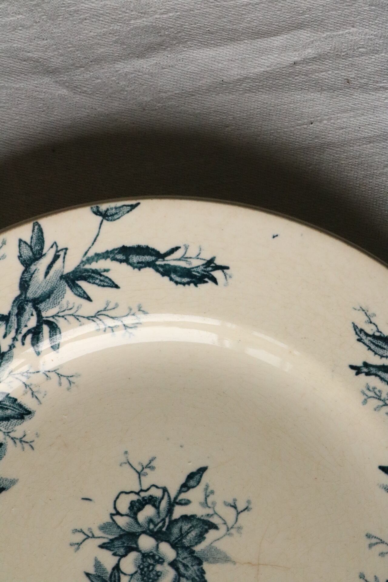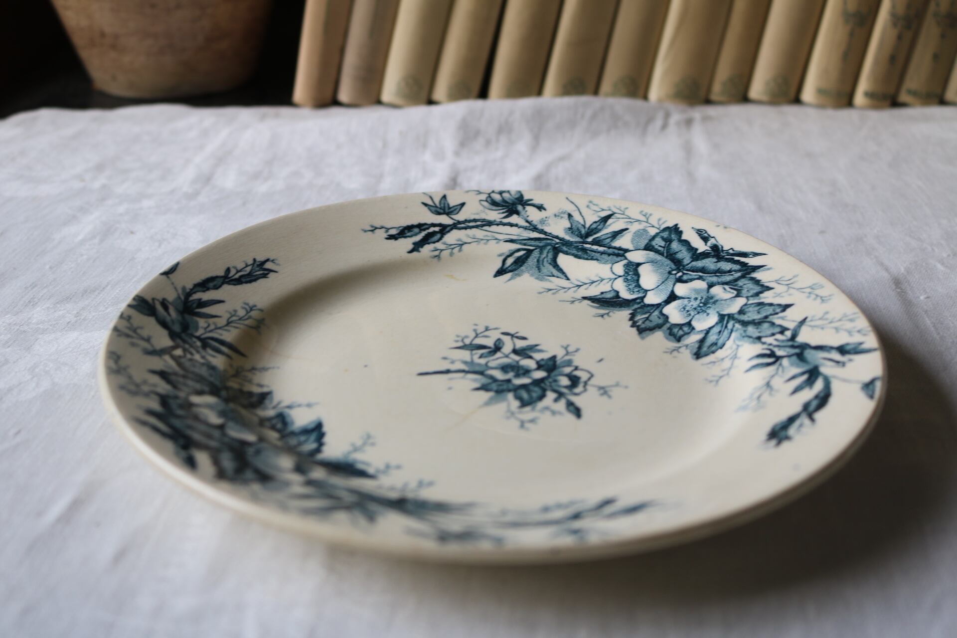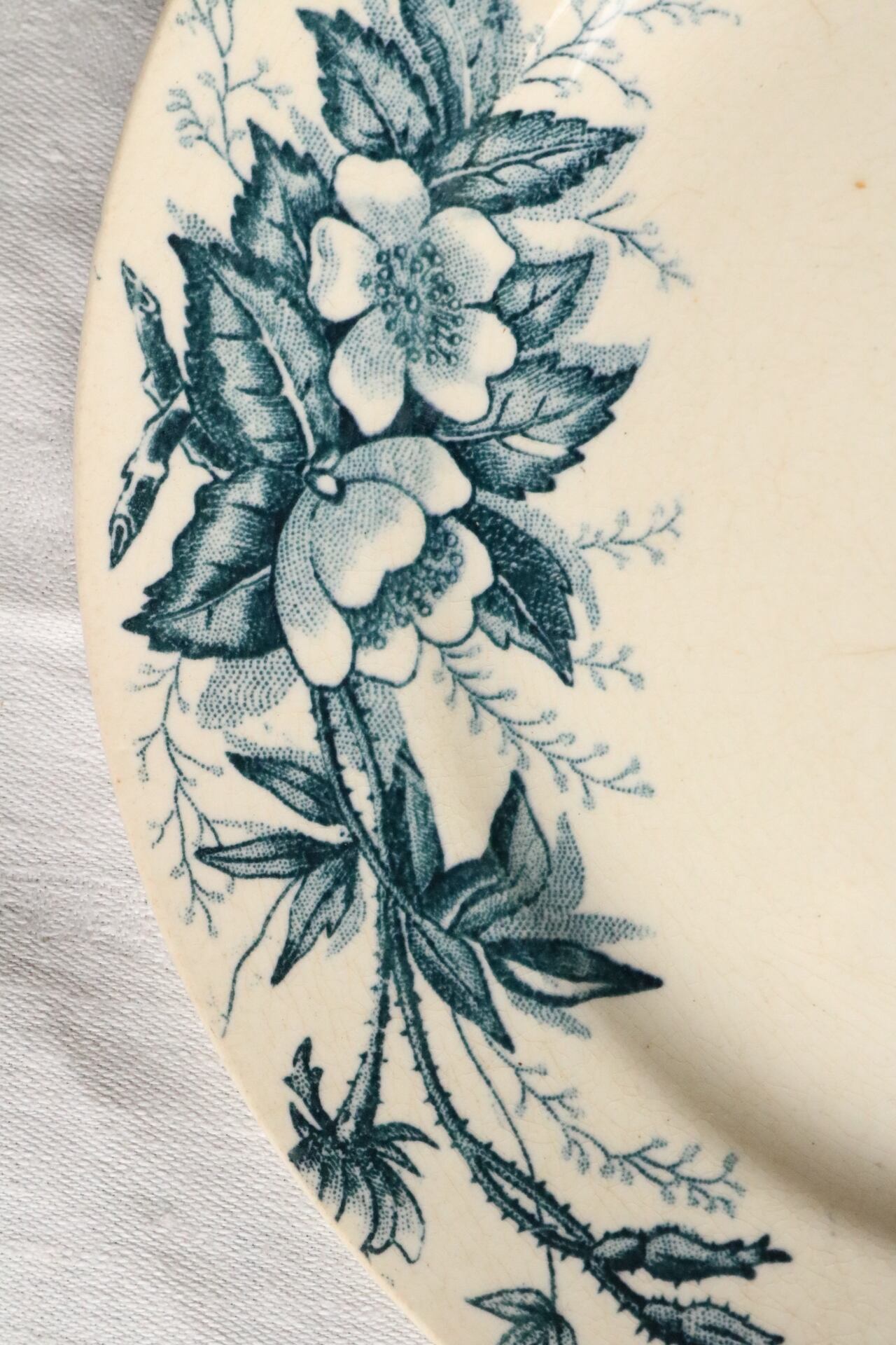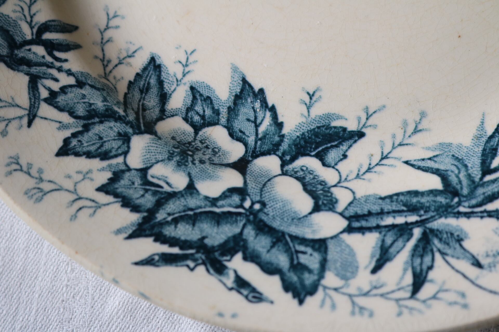 リムに沿った深い藍色のワイルドローズが印象的なプレートです。