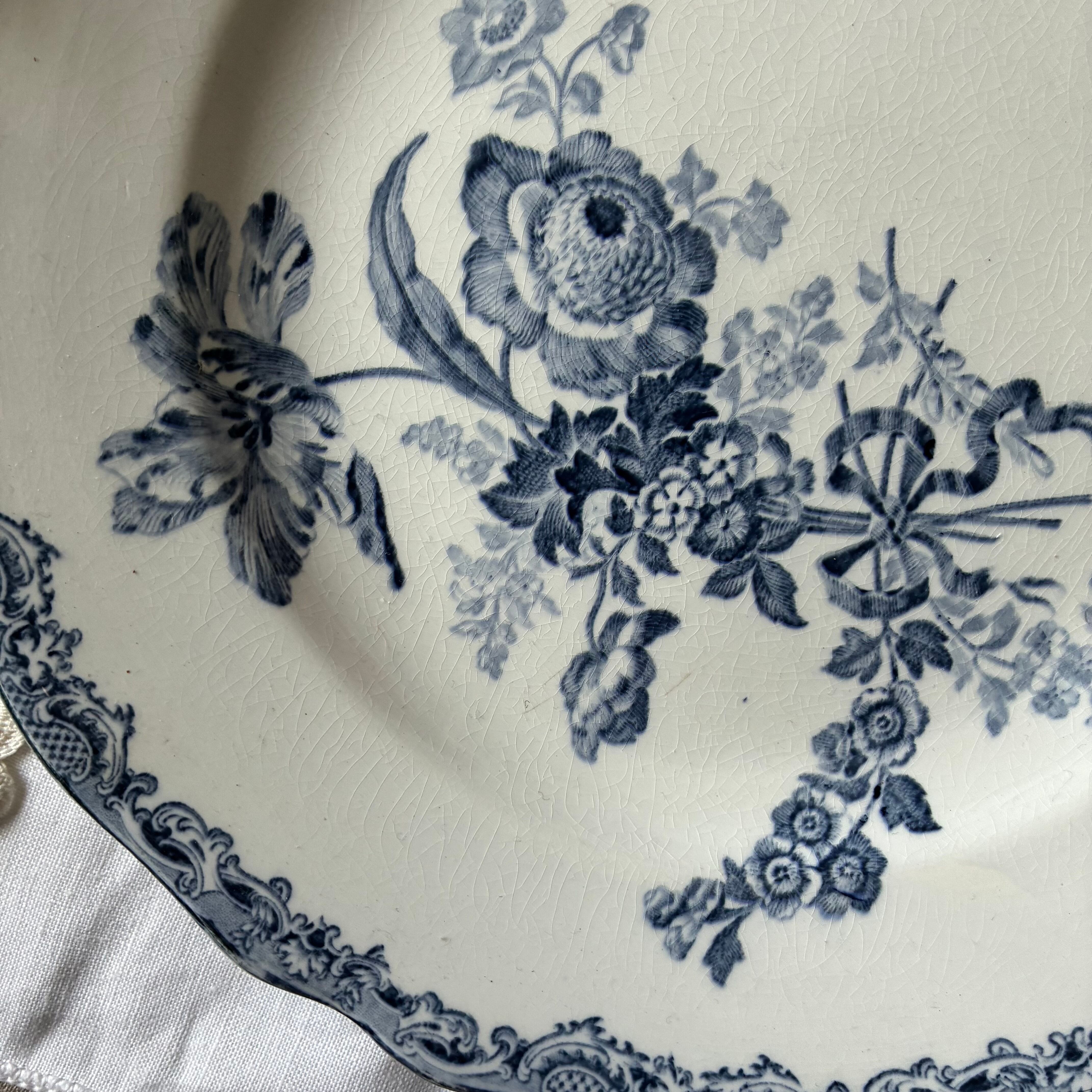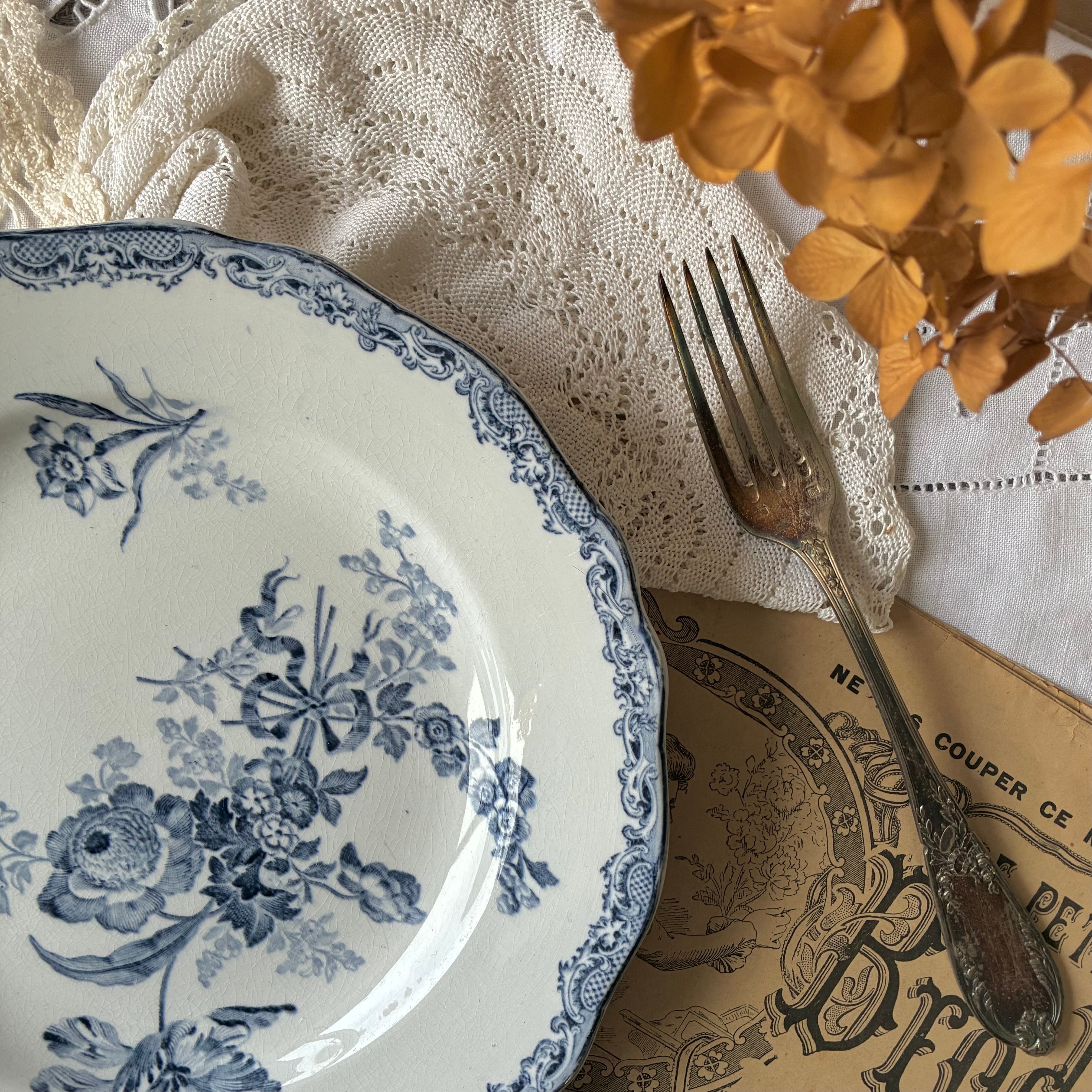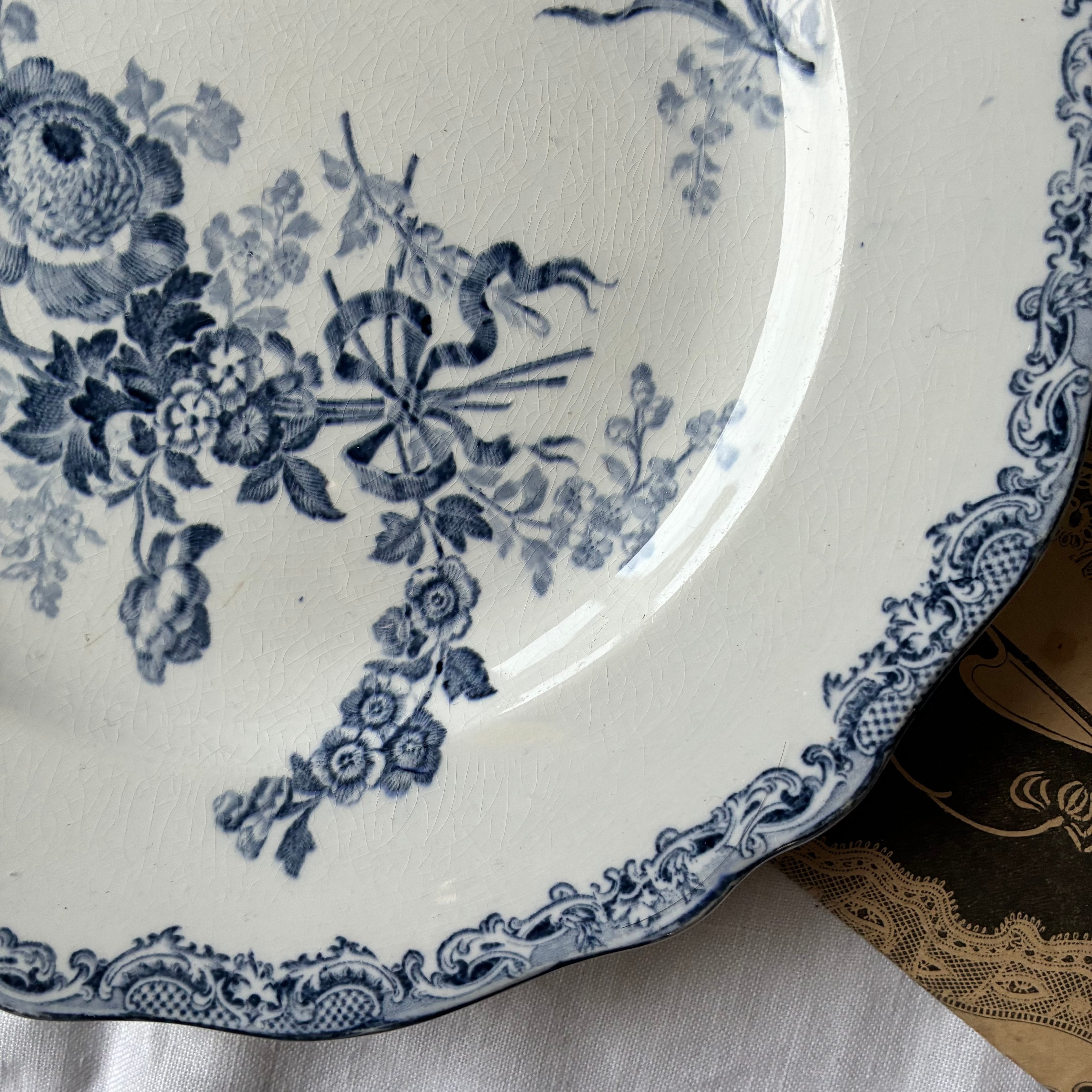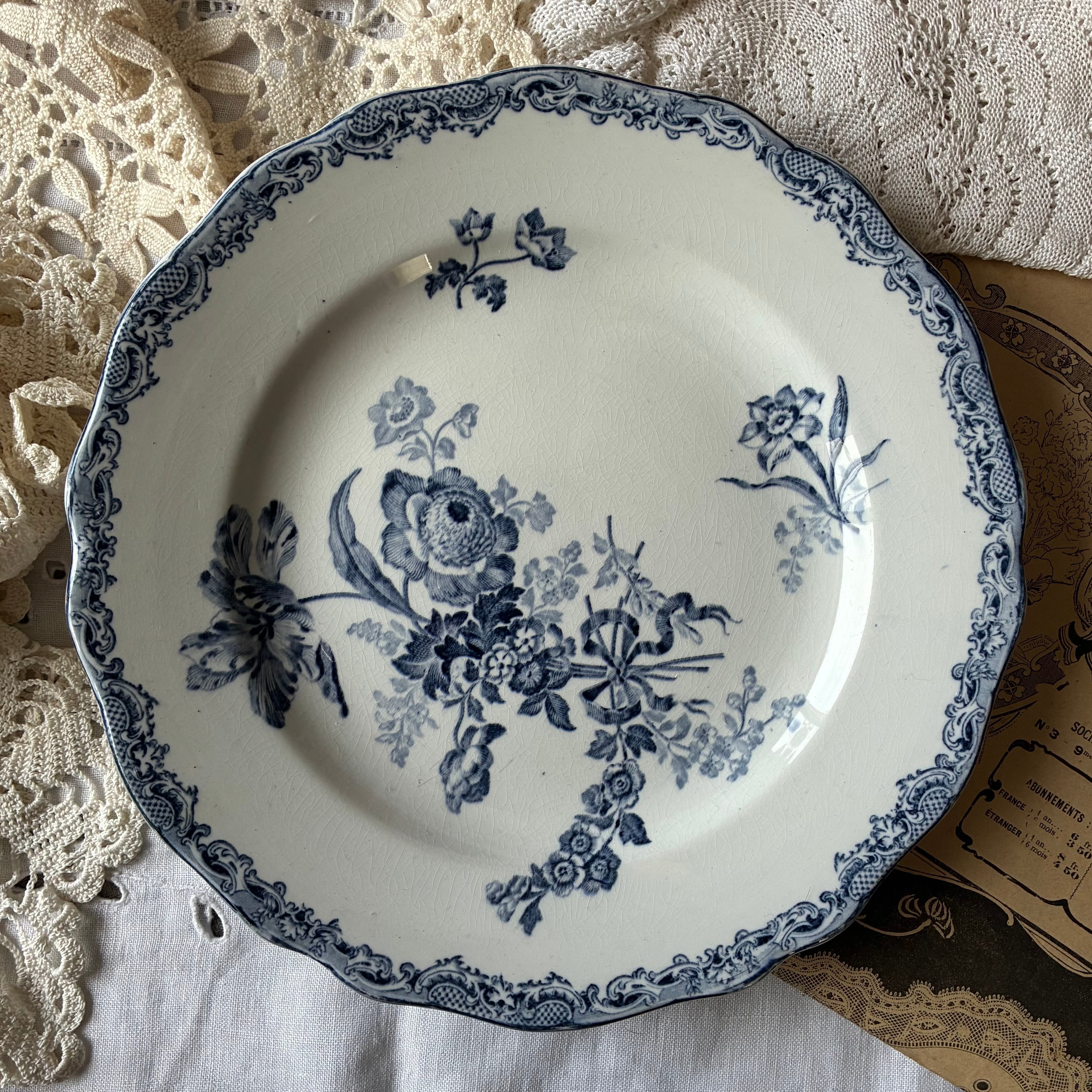 Sarreguemines フランス アンティーク プレート fontanges 藍色 花リム