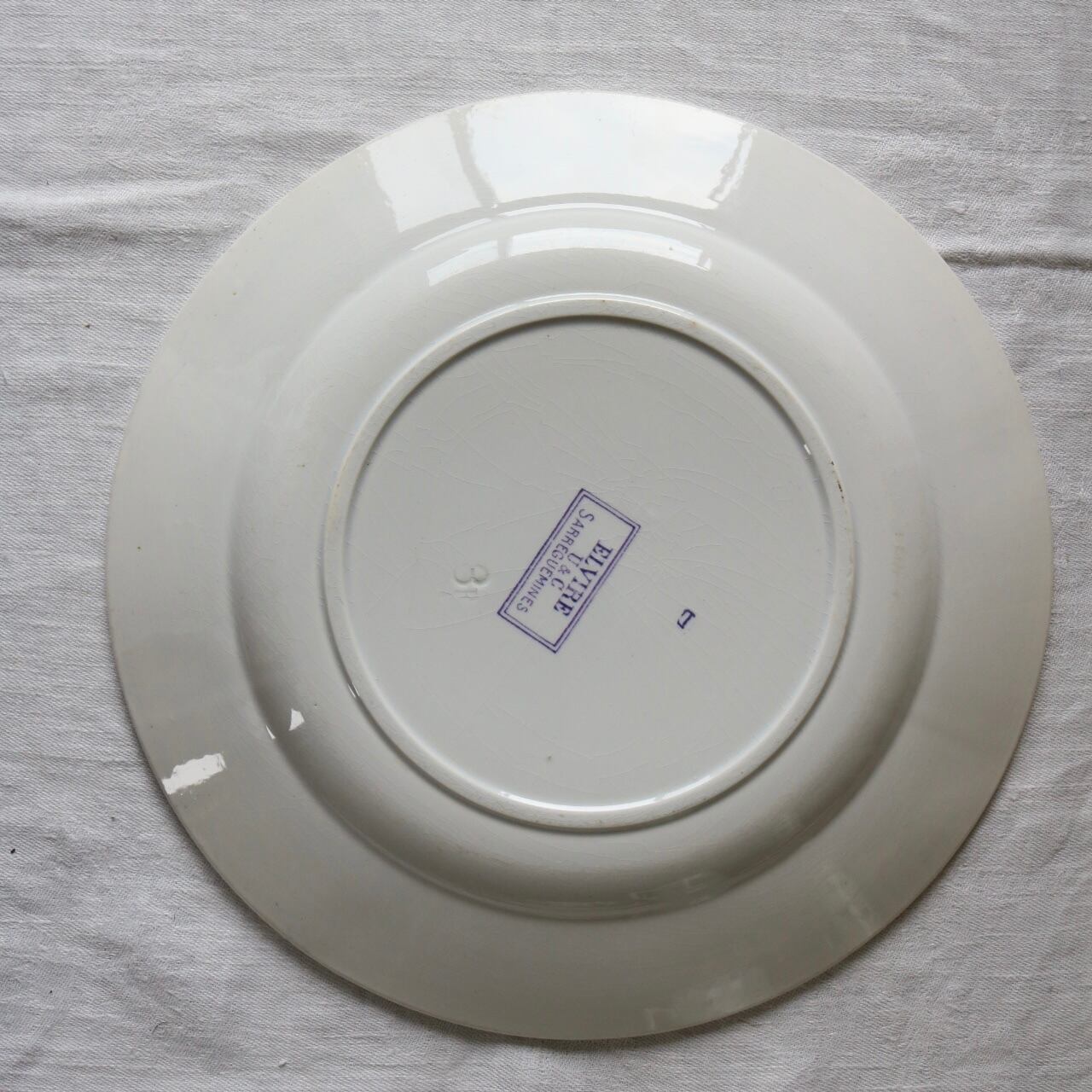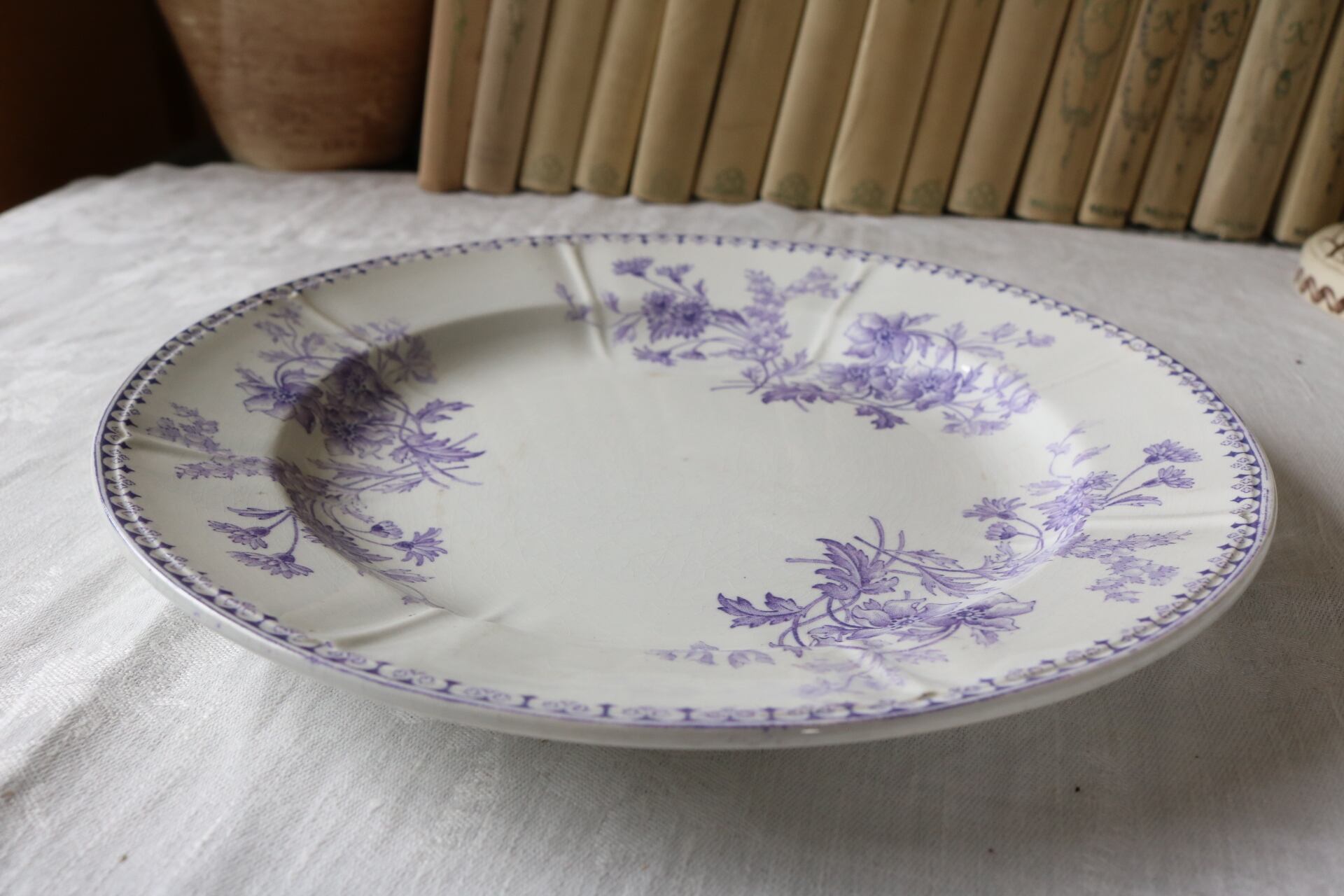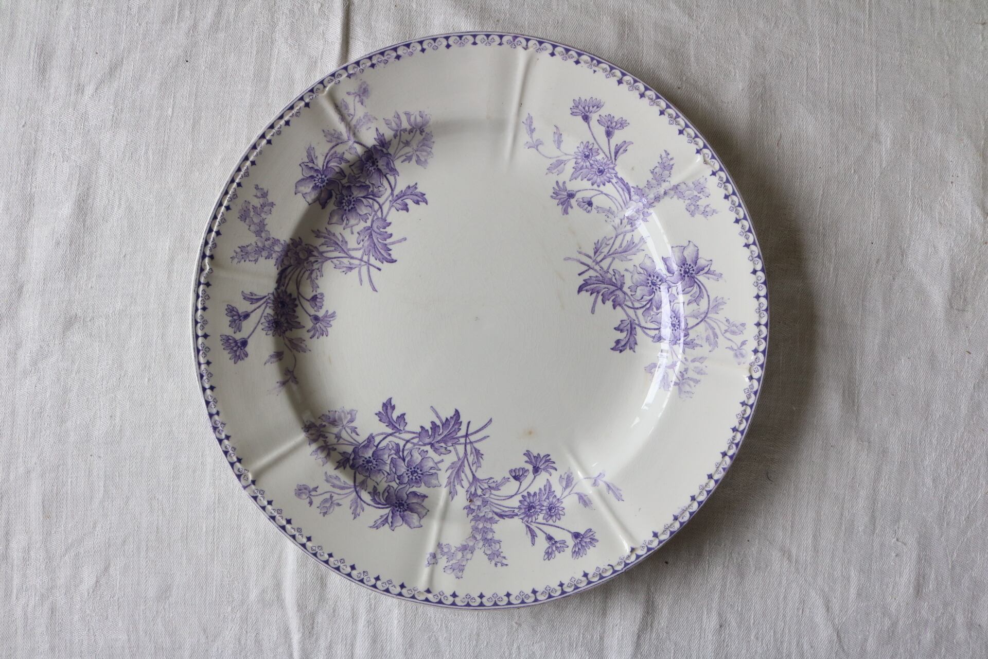 Sarreguemines モーブ レリーフ フランス アンティーク プレート ラベンダー サルグミンヌ
