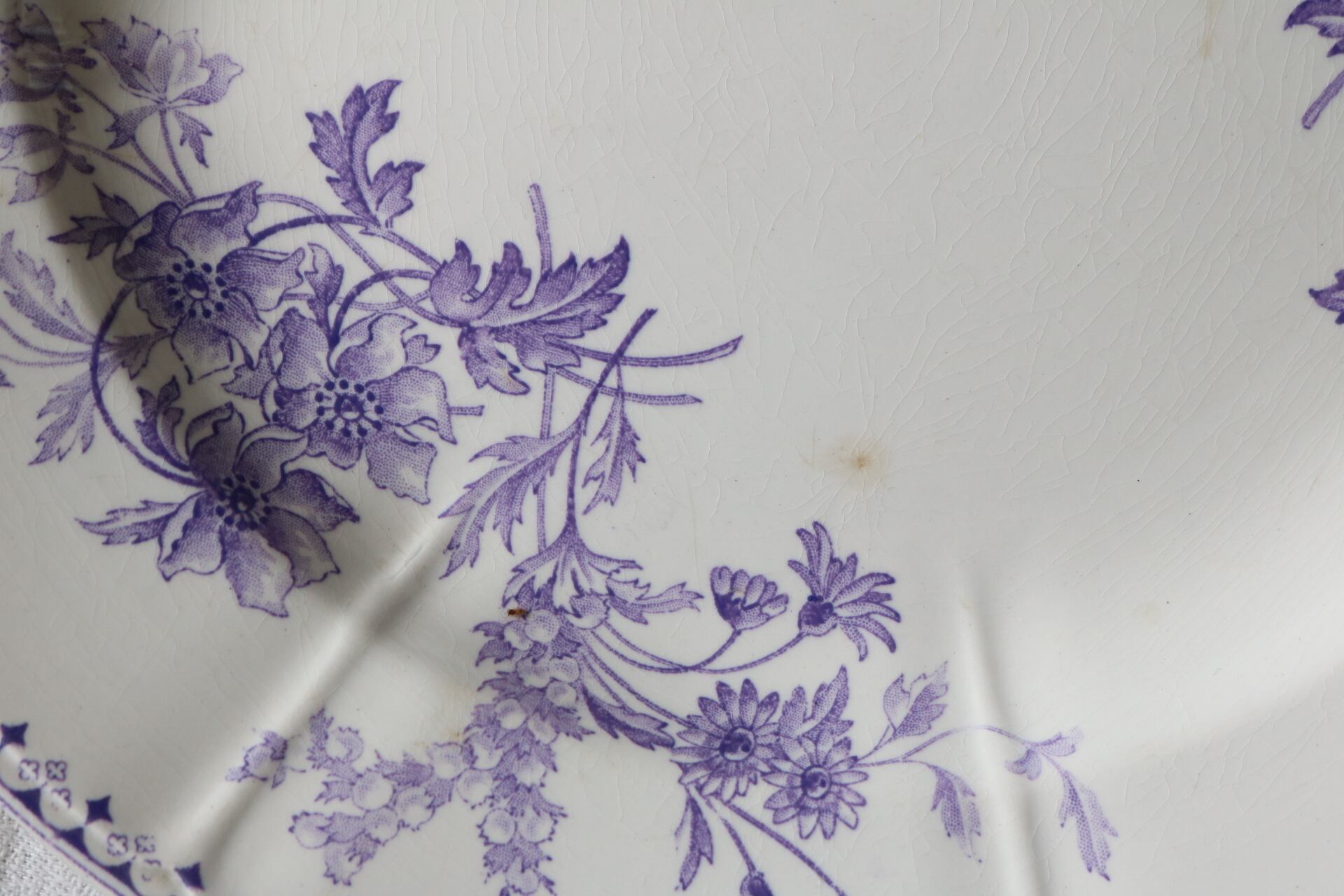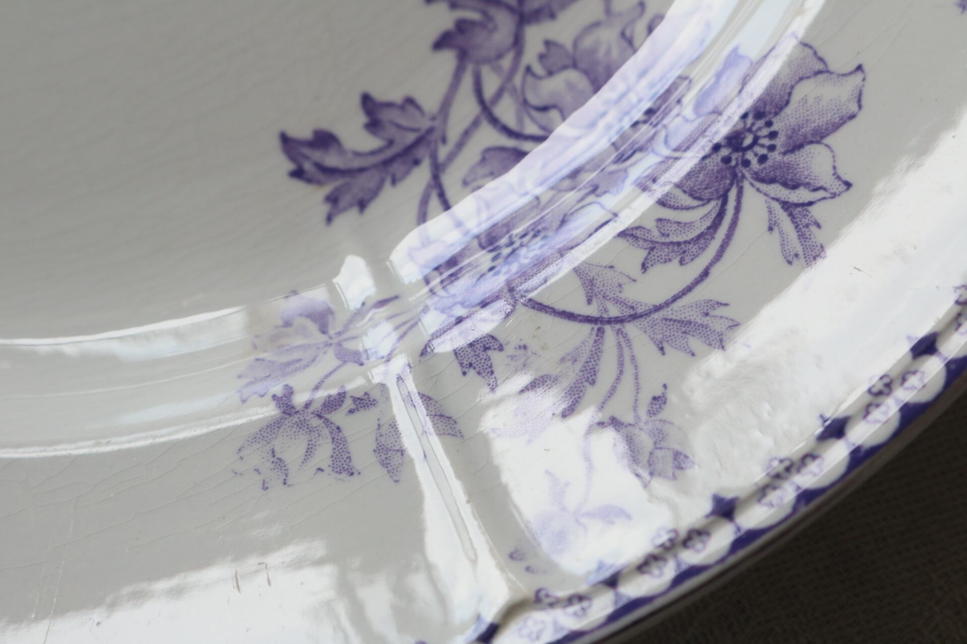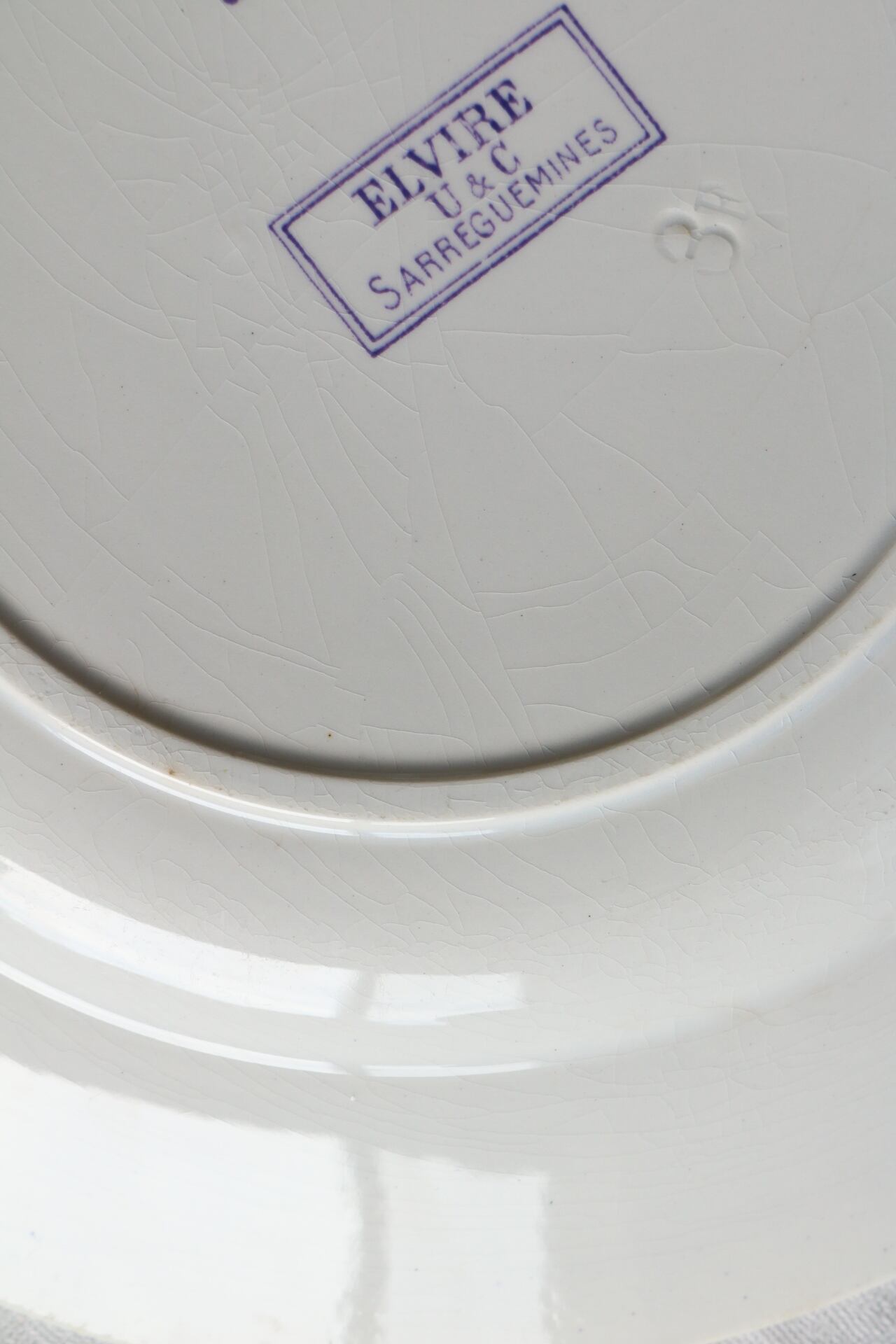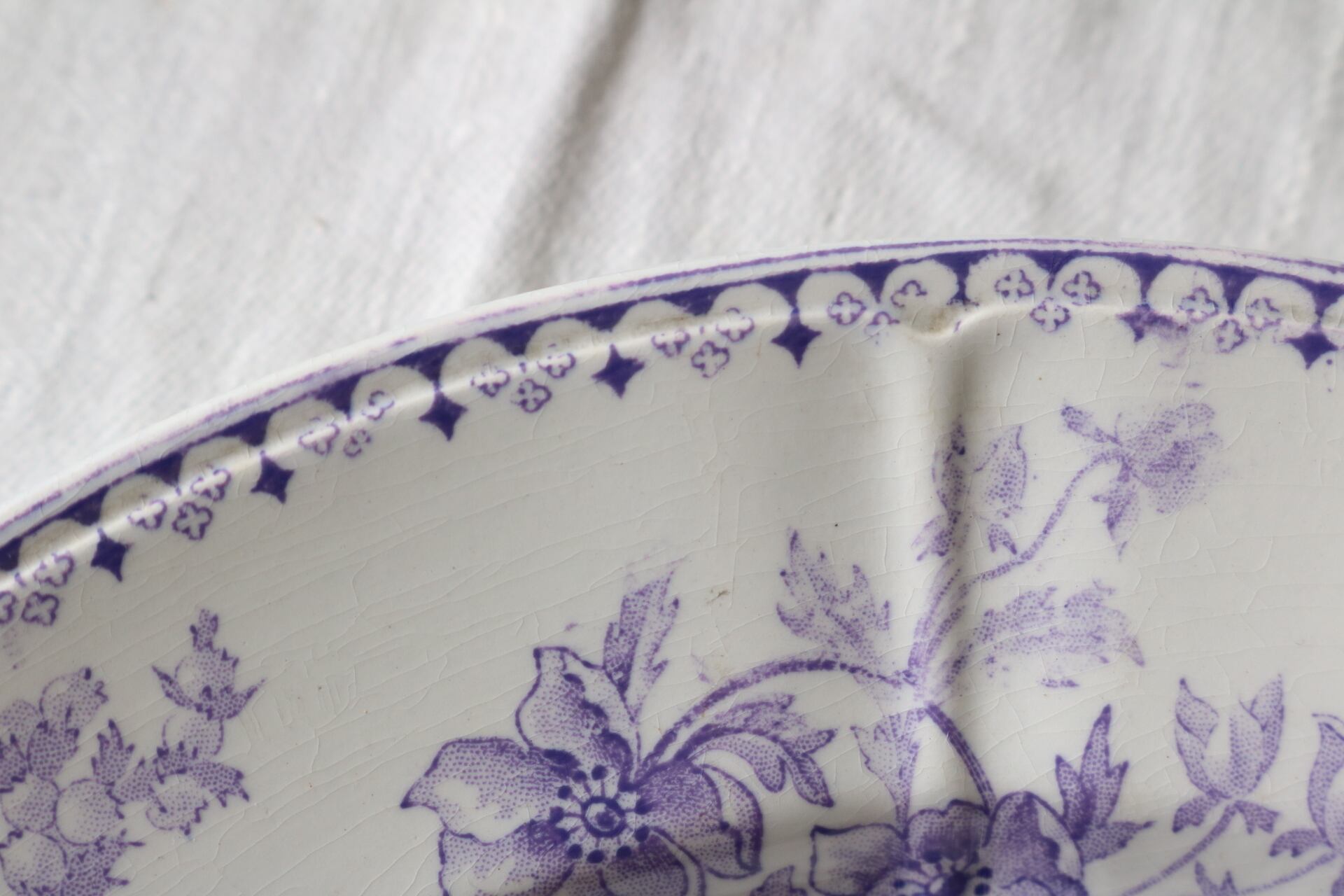 Sarreguemines モーブ レリーフ フランス アンティーク プレート ラベンダー サルグミンヌ
