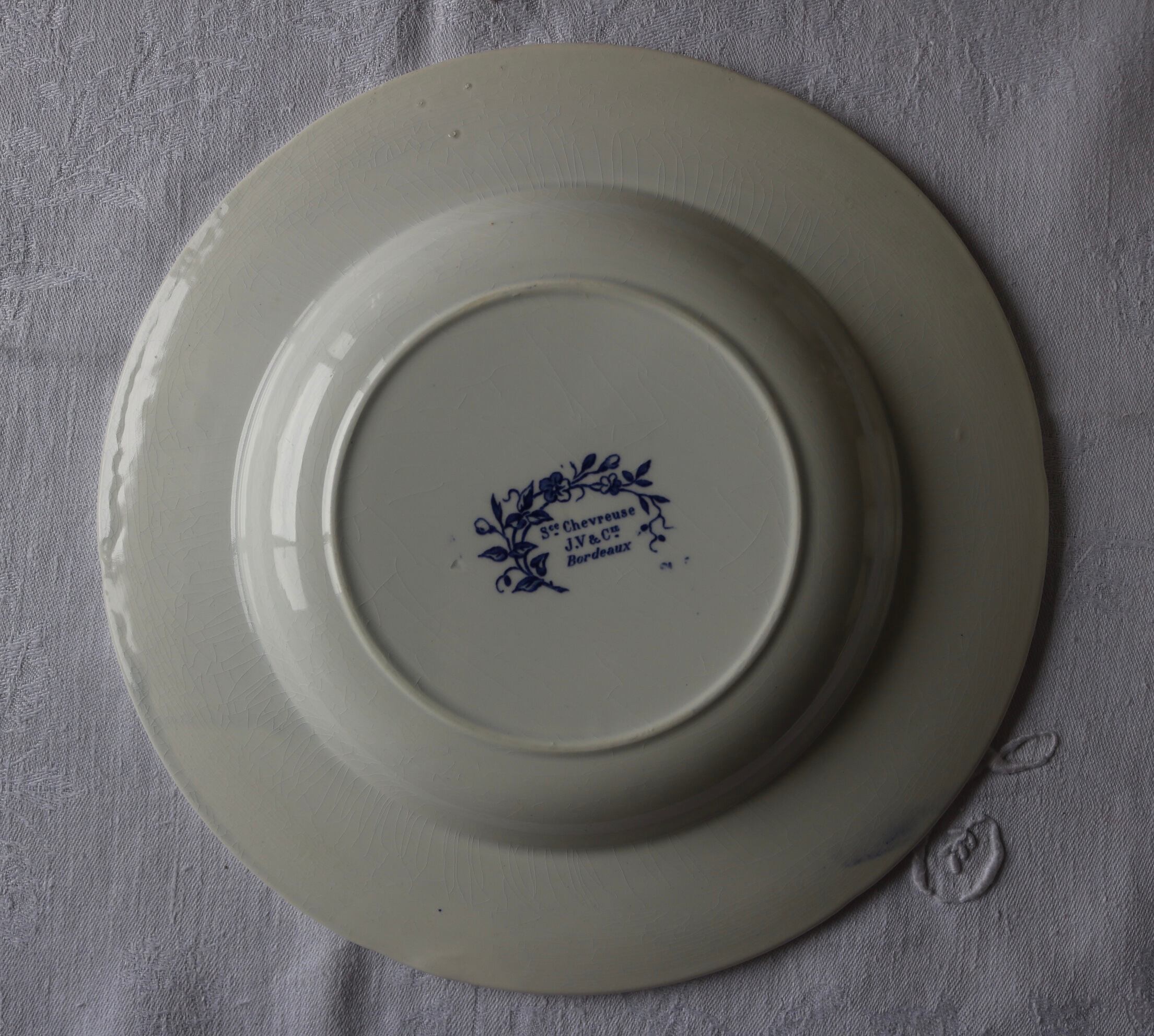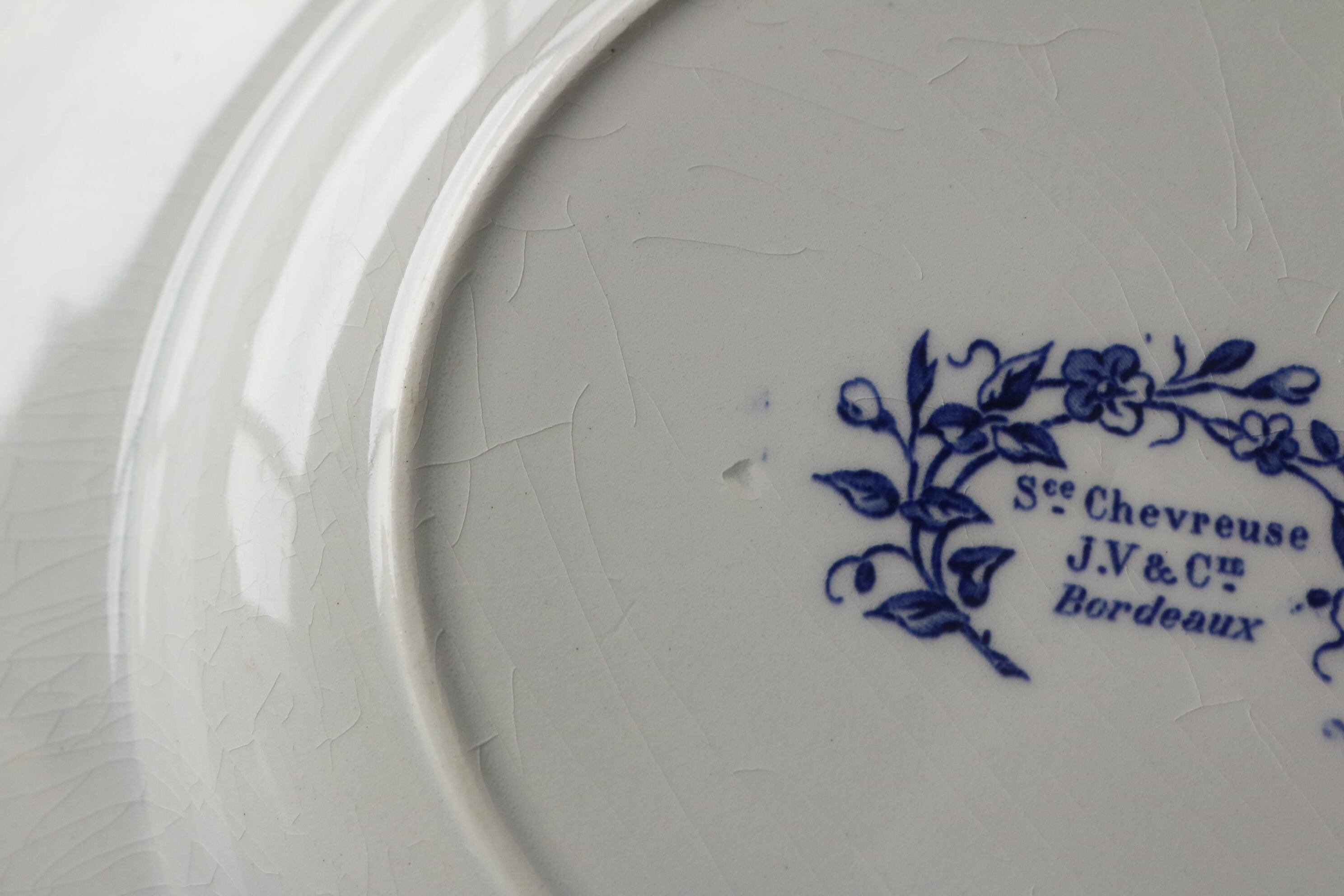 フランス アンティーク プレートB 藍色 ボルドー窯