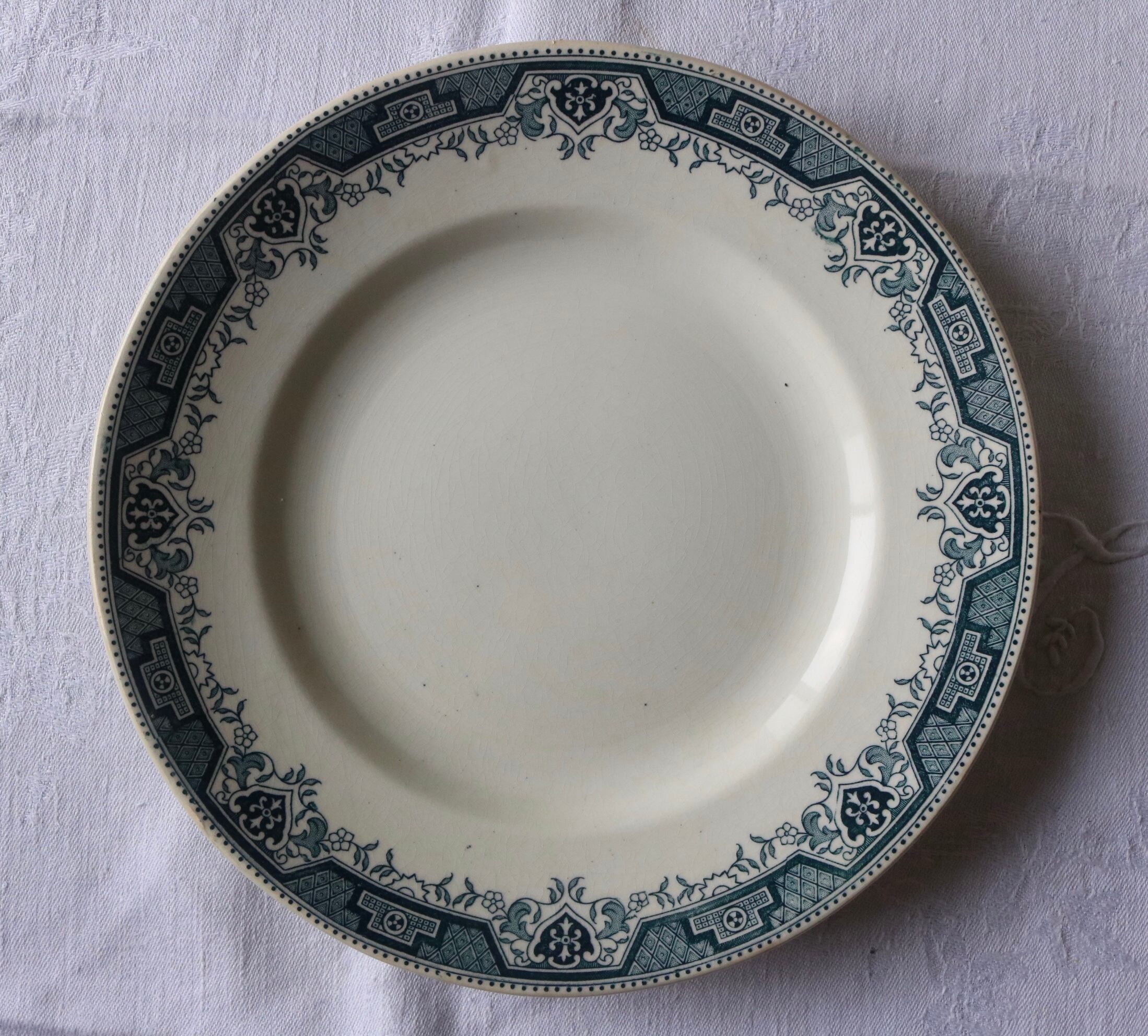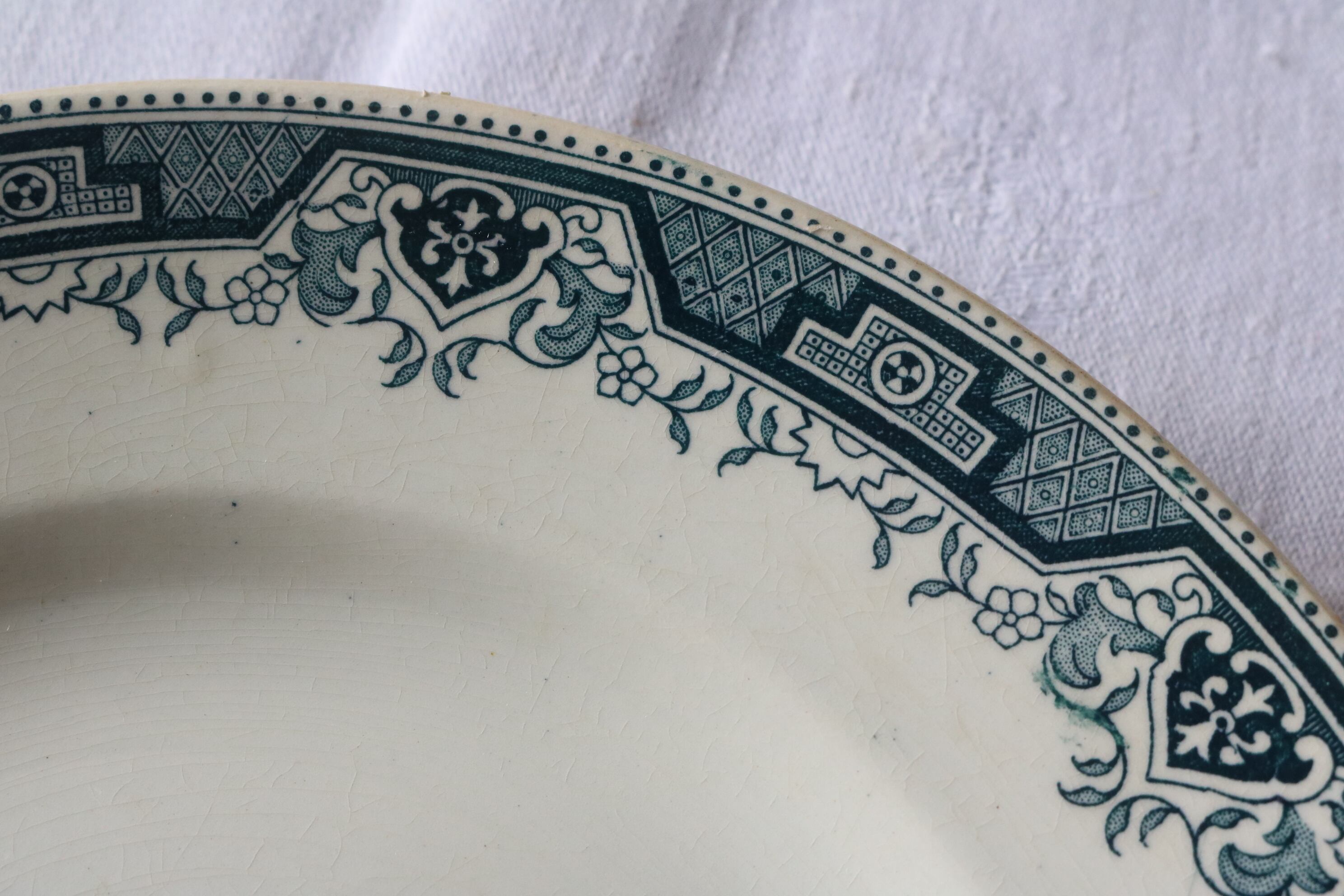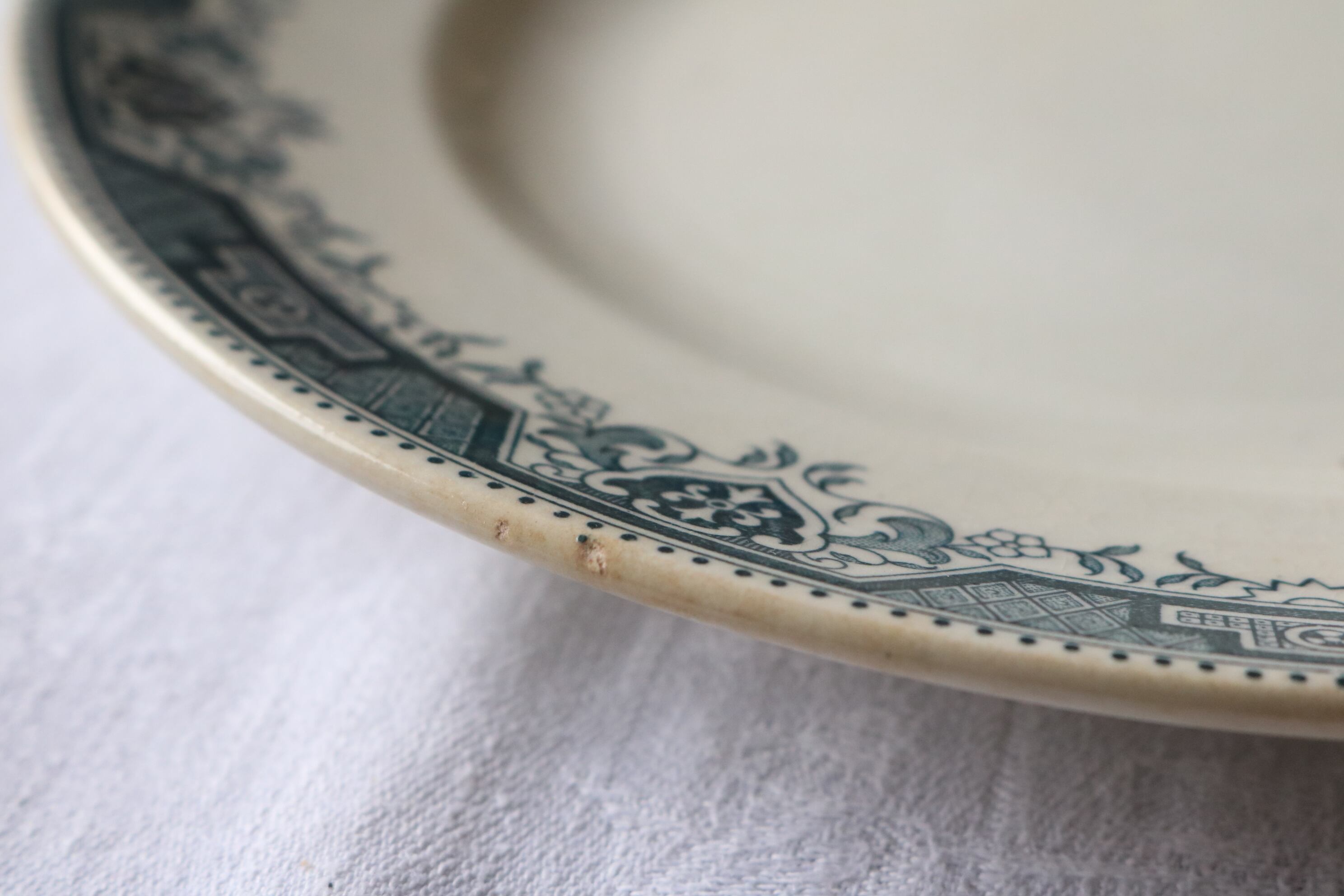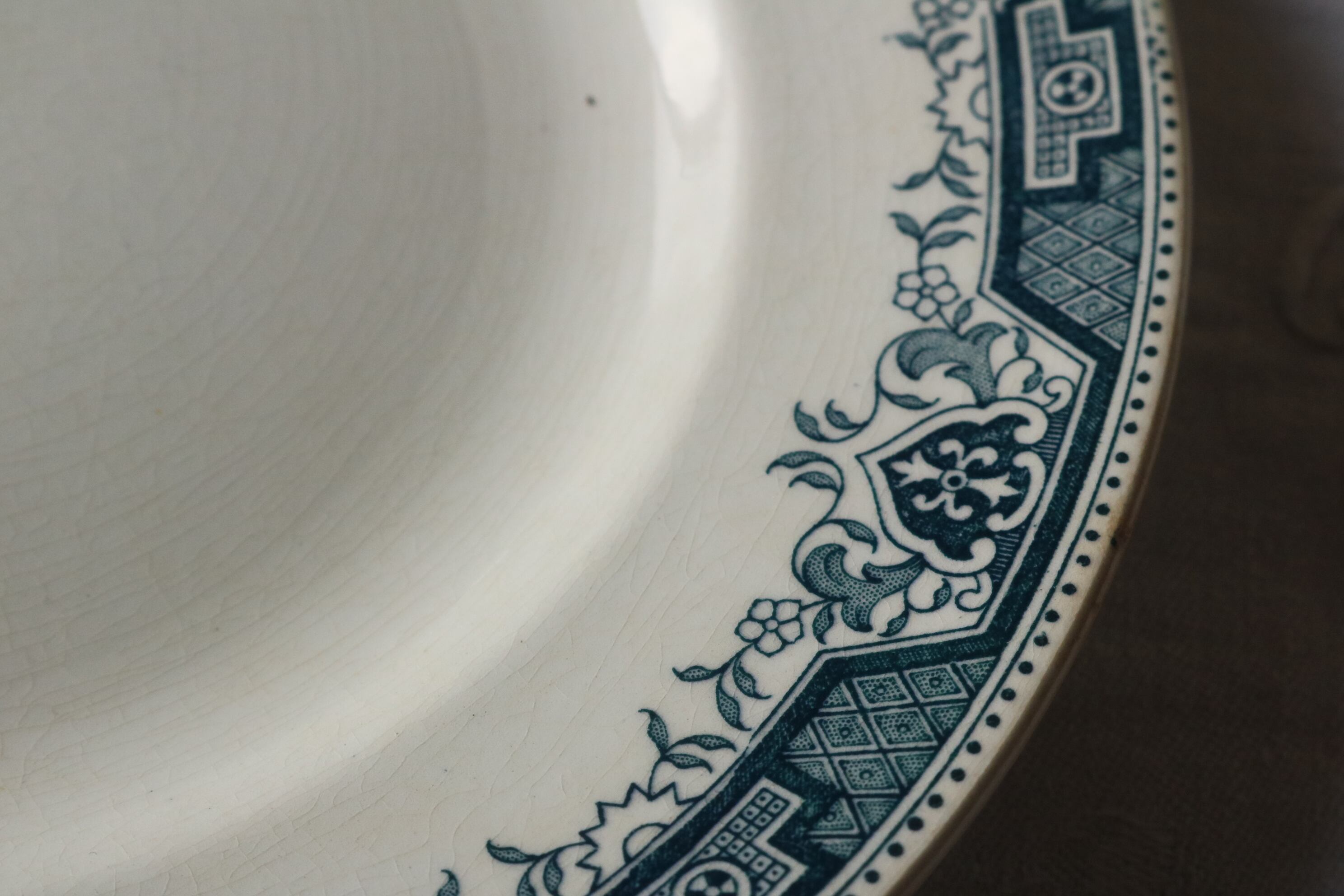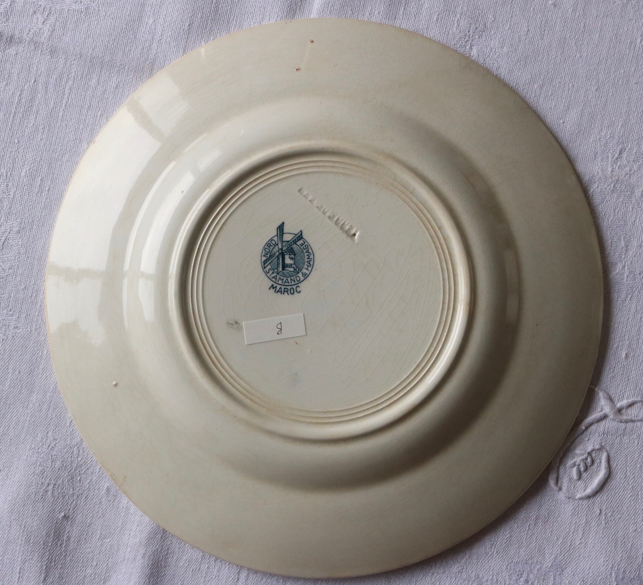 フランス アンティーク プレートB ブルーグレー 使用感有 モロッコ柄 サンタマン