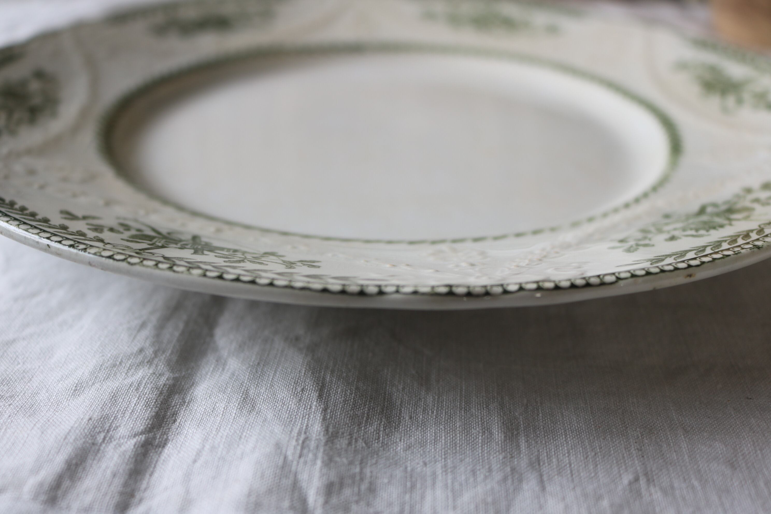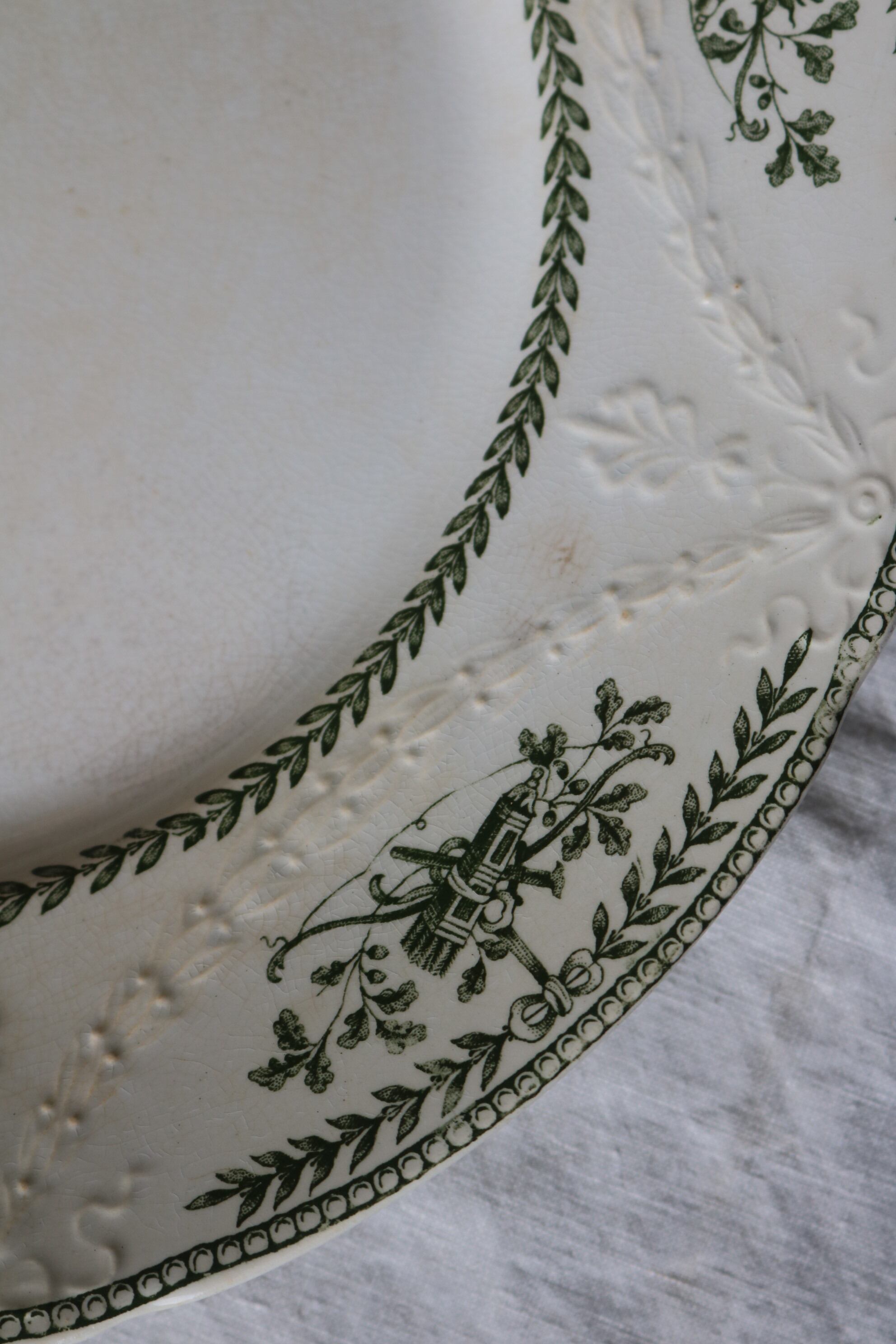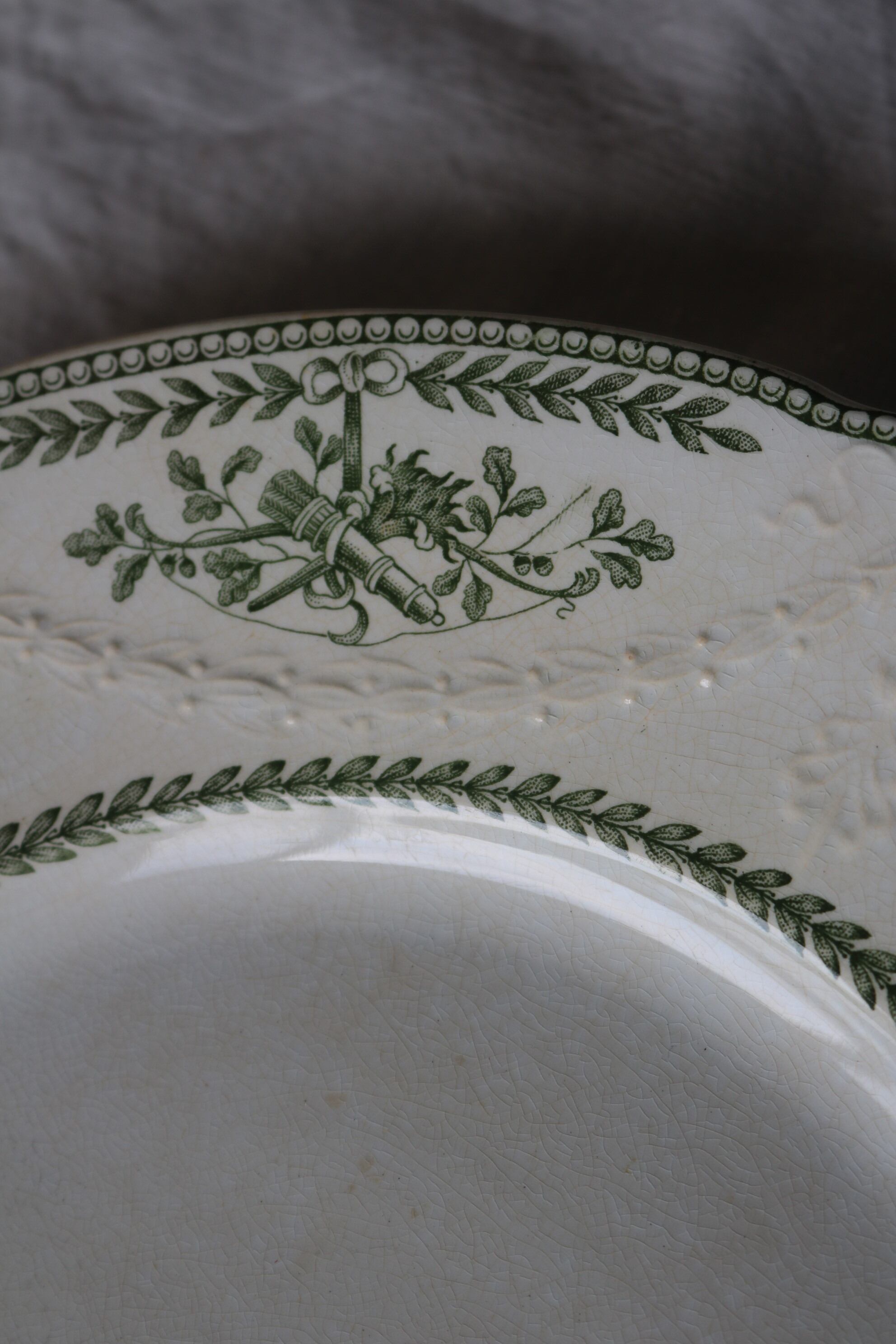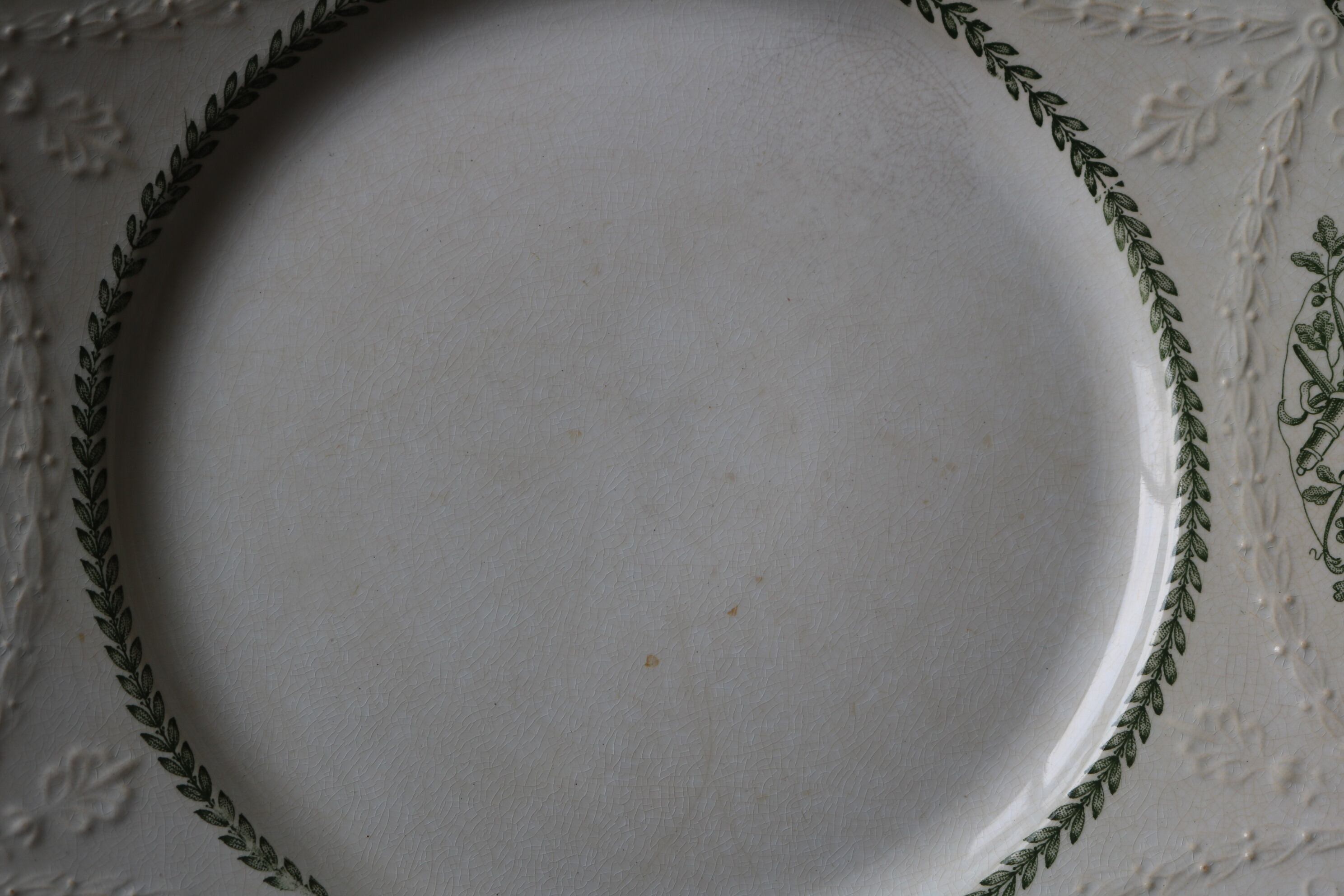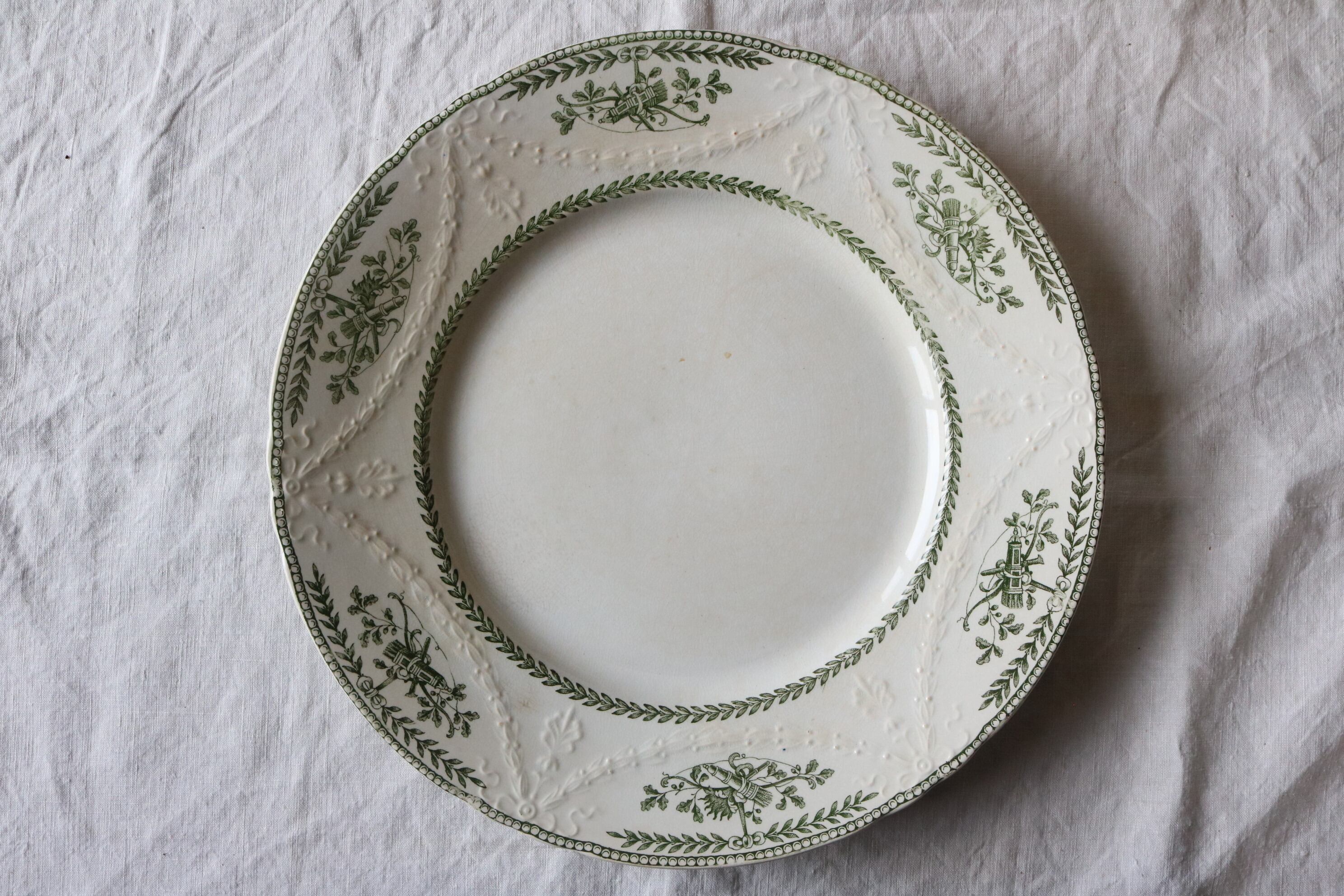 フランス アンティーク プレートg レリーフ 深緑 シミ