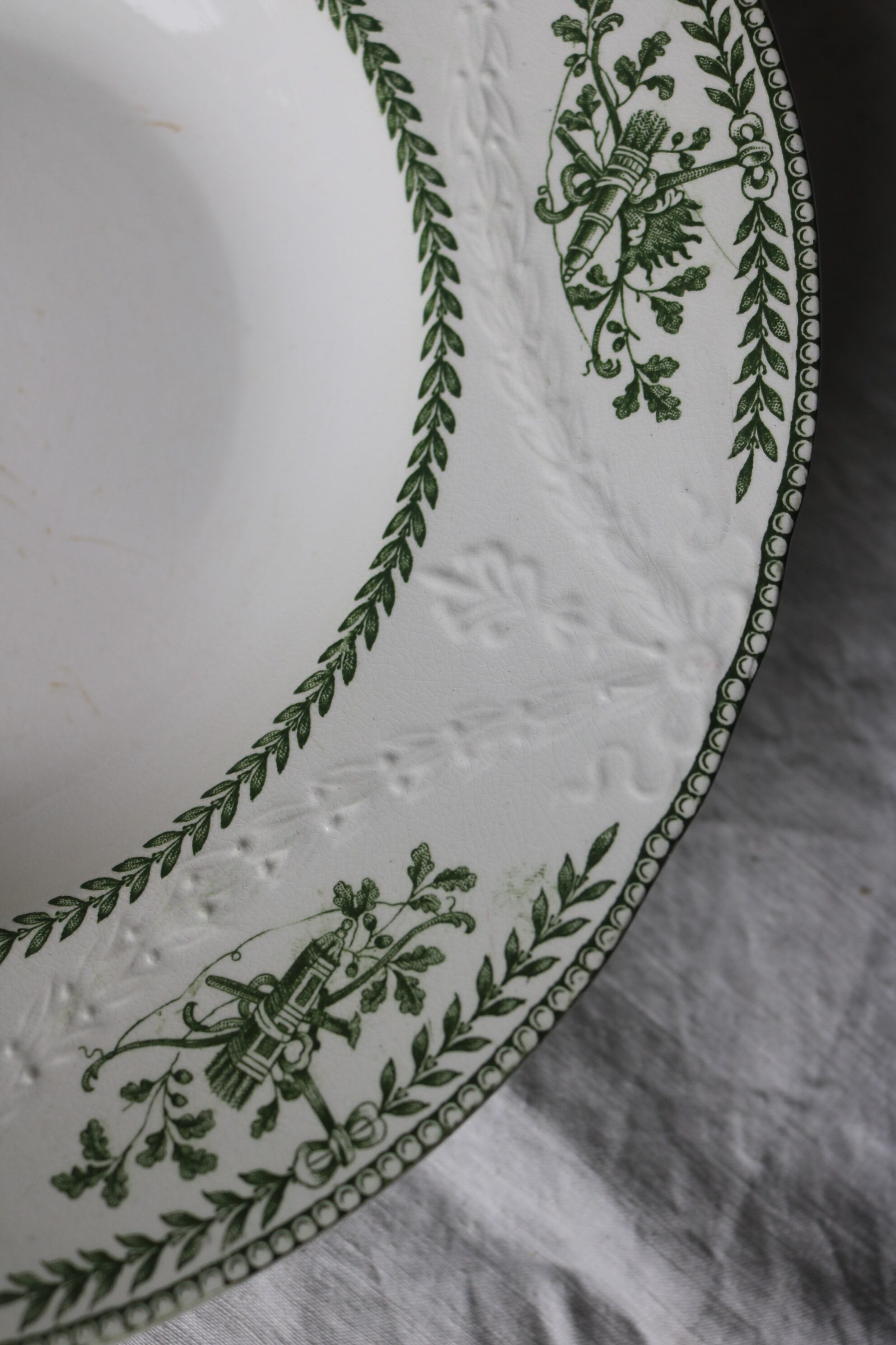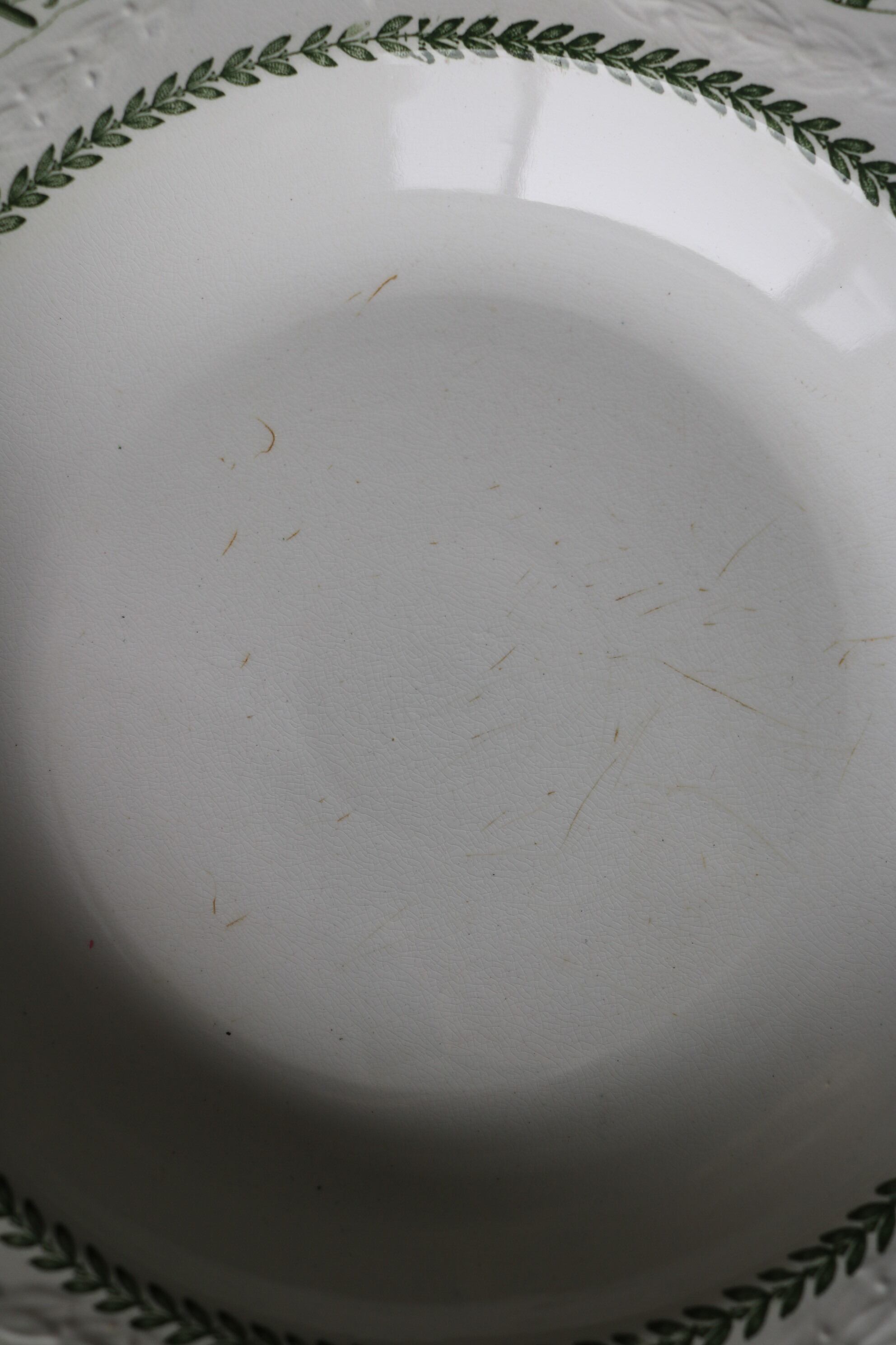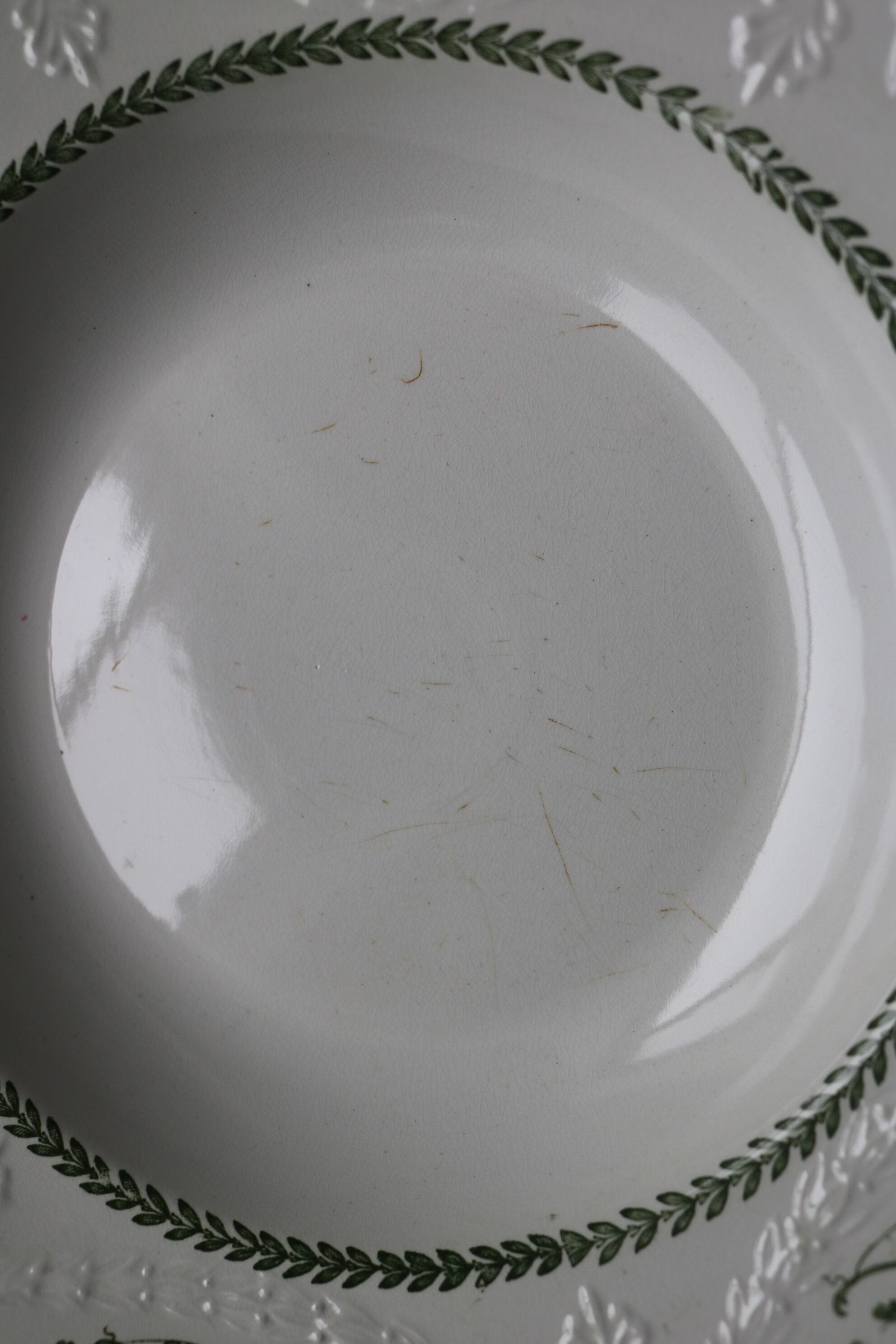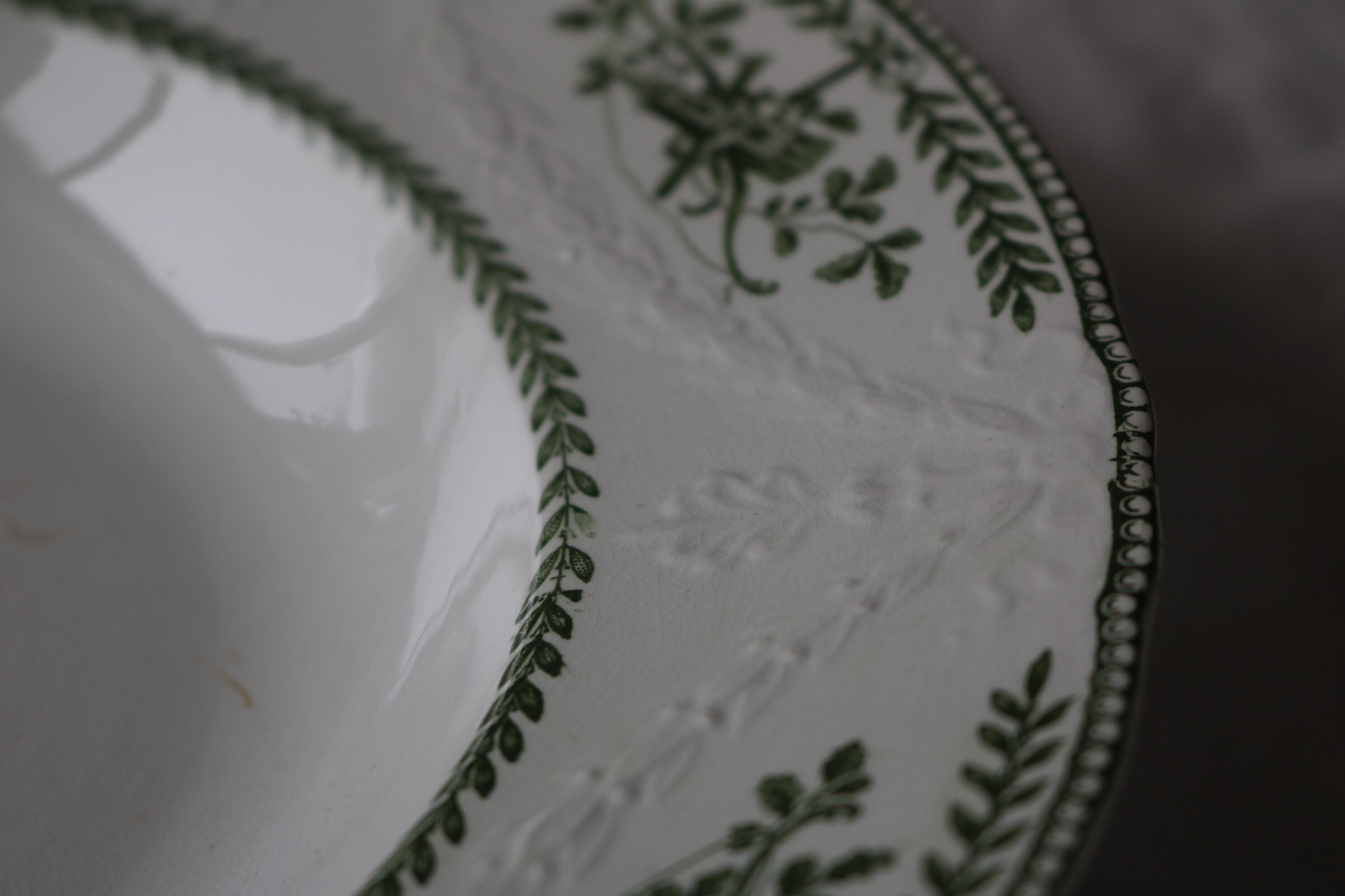 フランス アンティーク 深皿C レリーフ 深緑 チップ有り