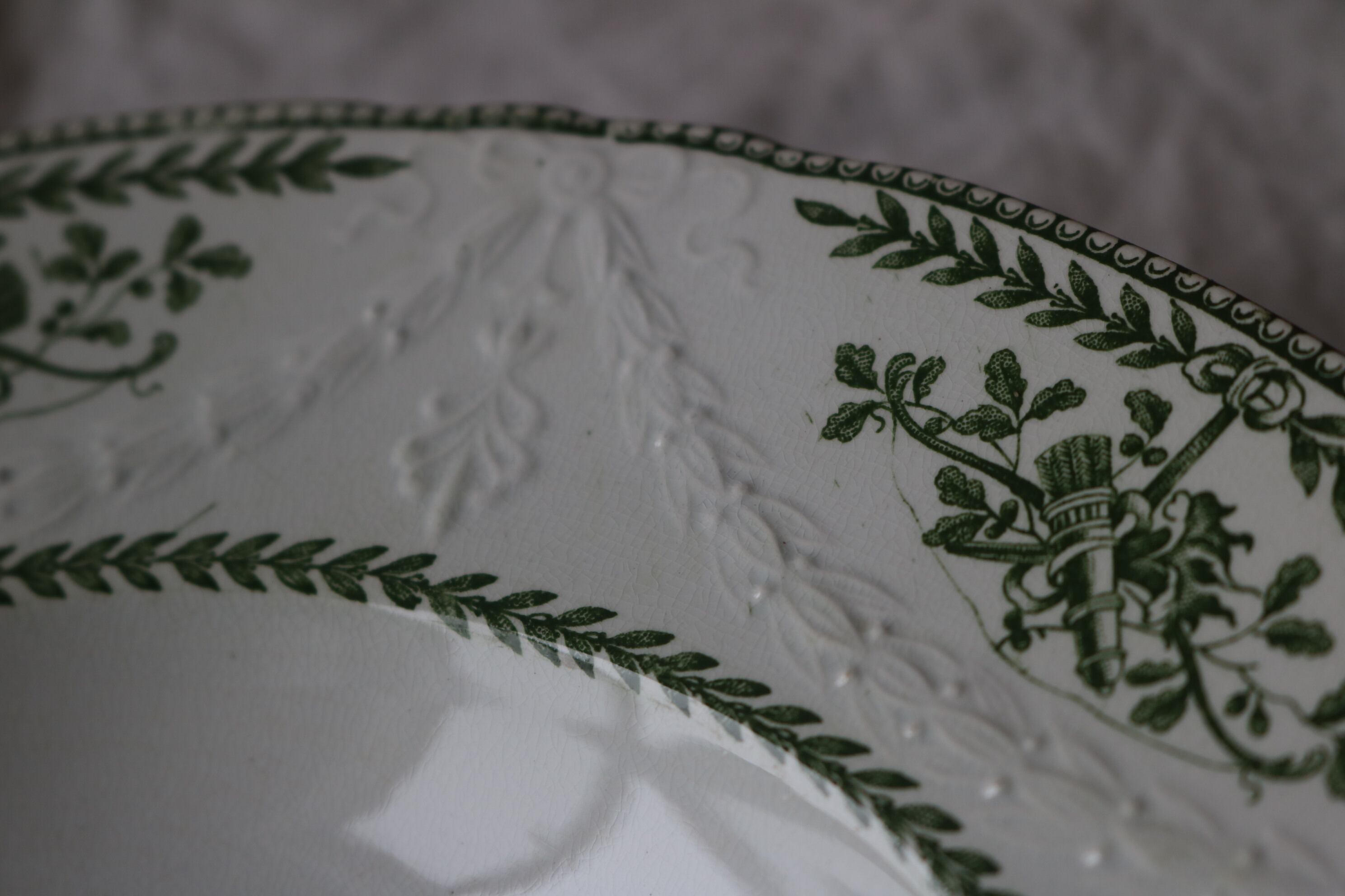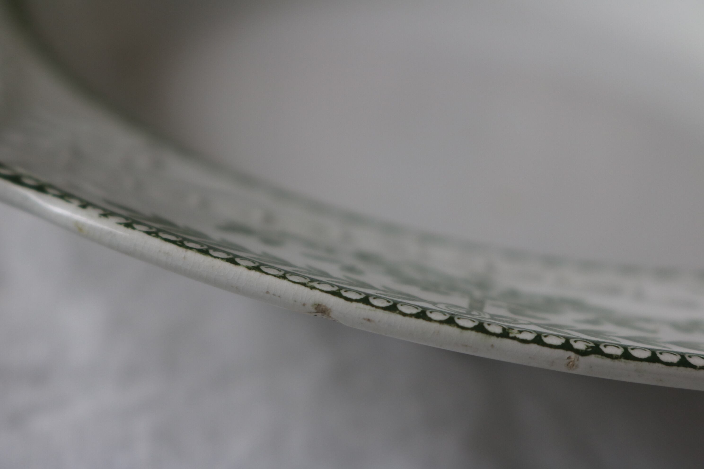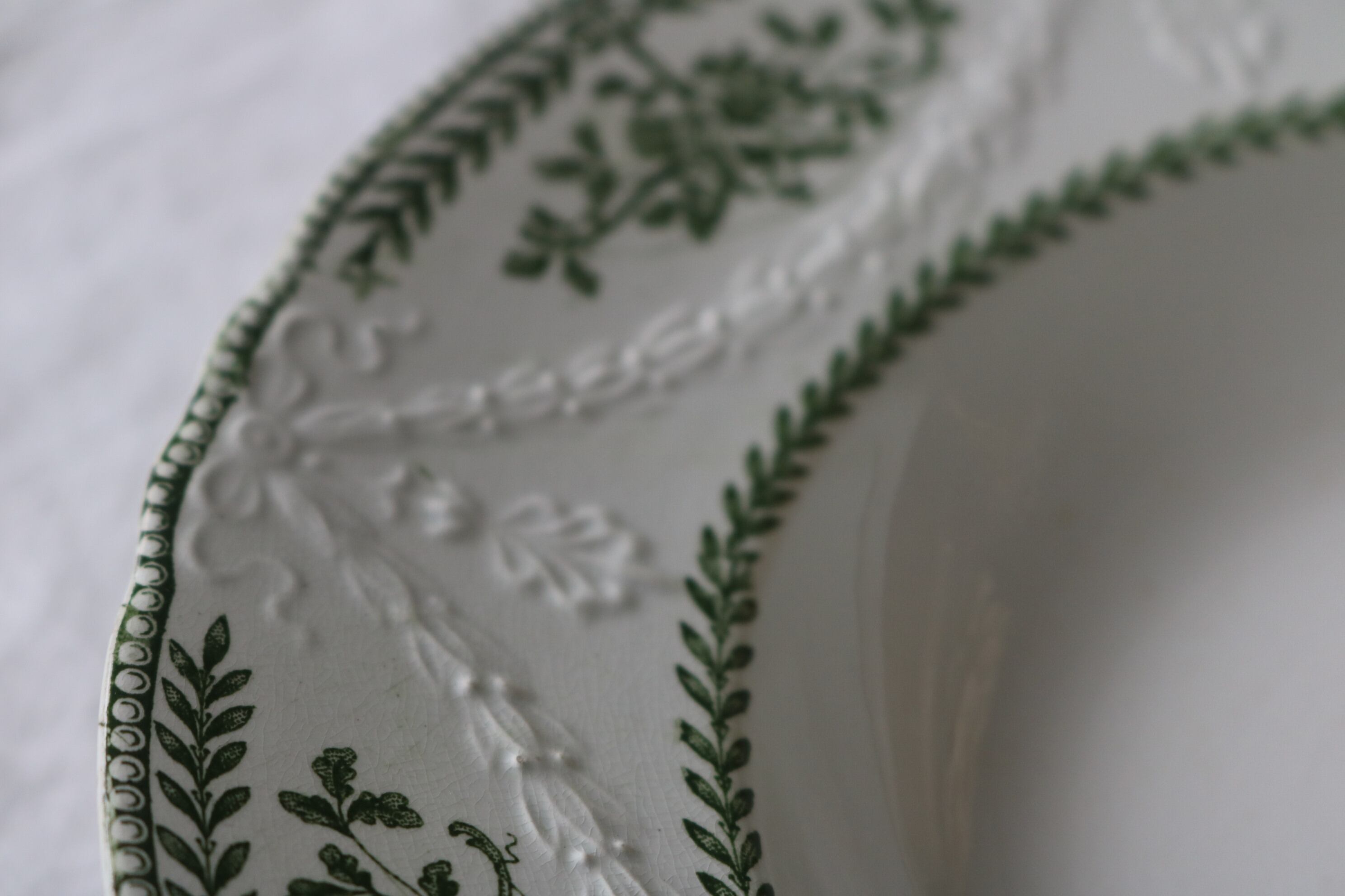 フランス アンティーク 深皿D レリーフ 深緑 チップ有り