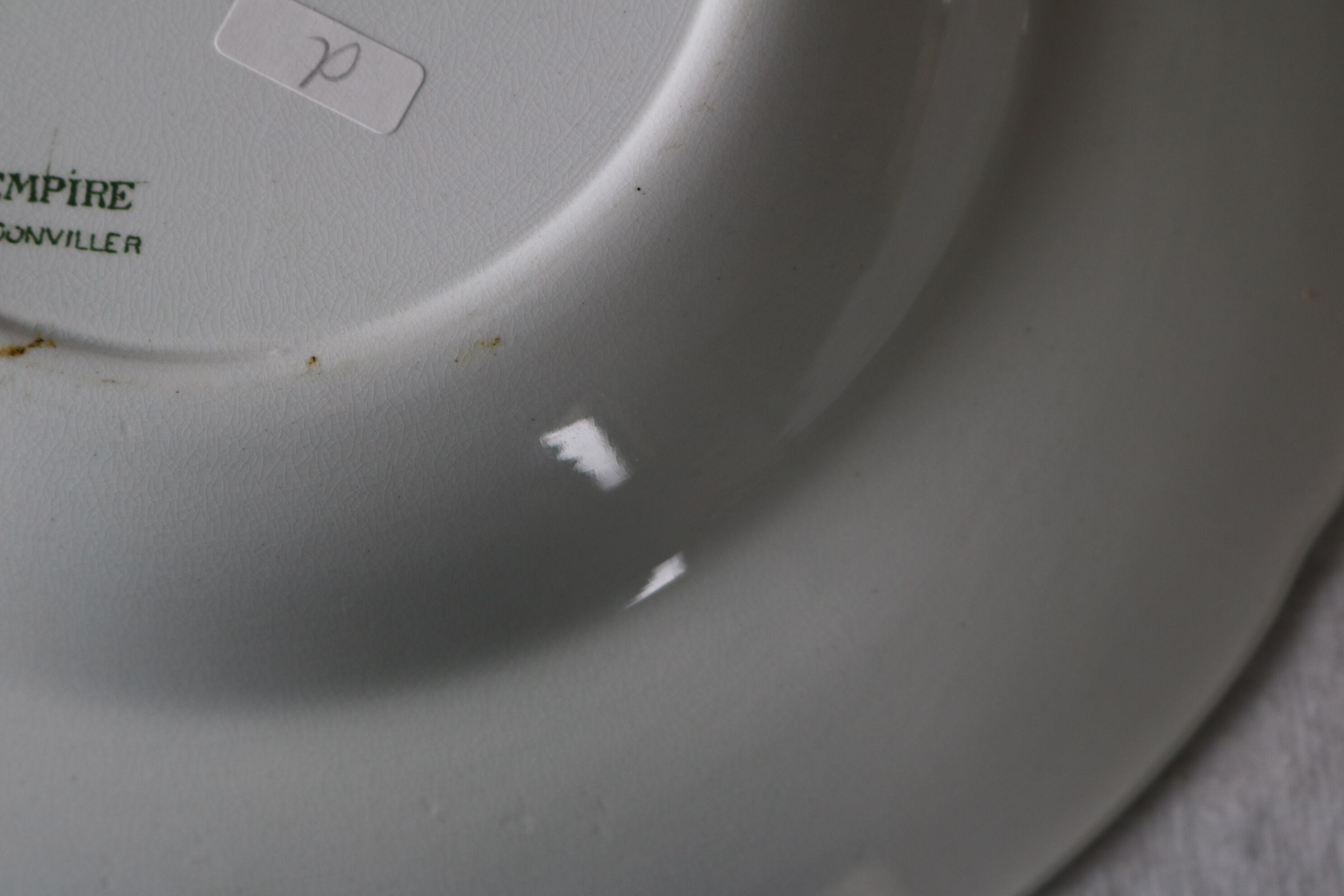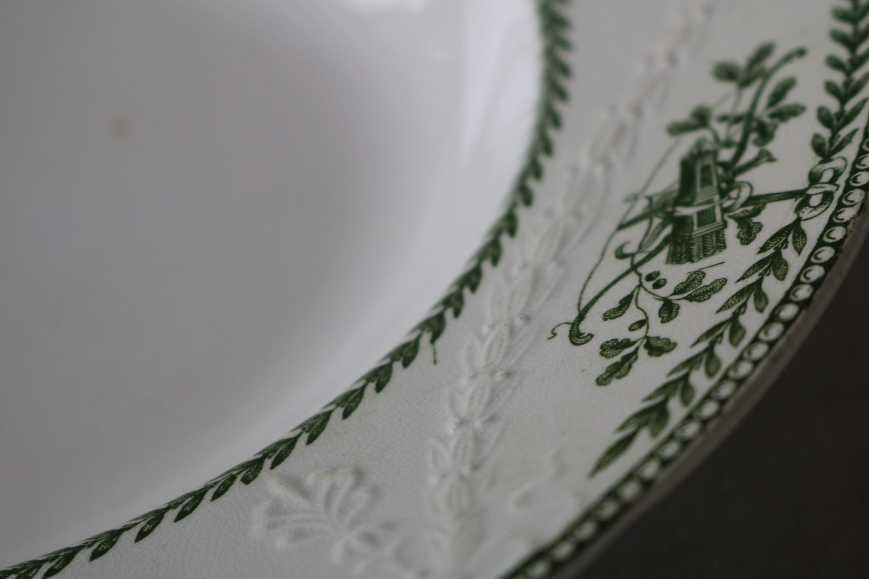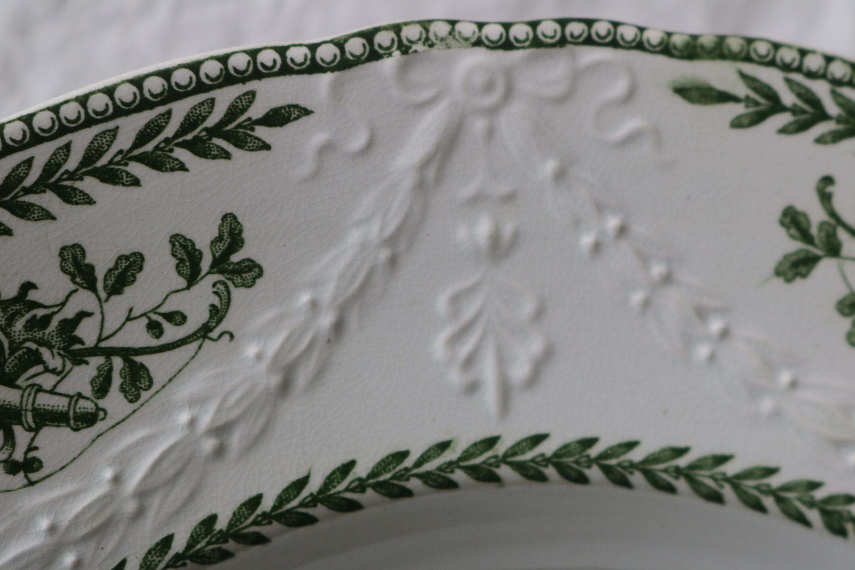 フランス アンティーク 深皿D レリーフ 深緑 チップ有り