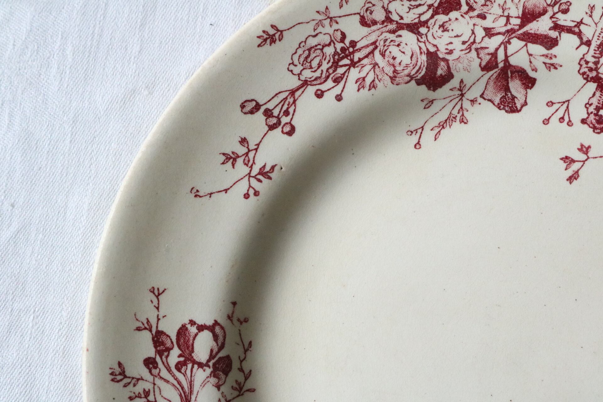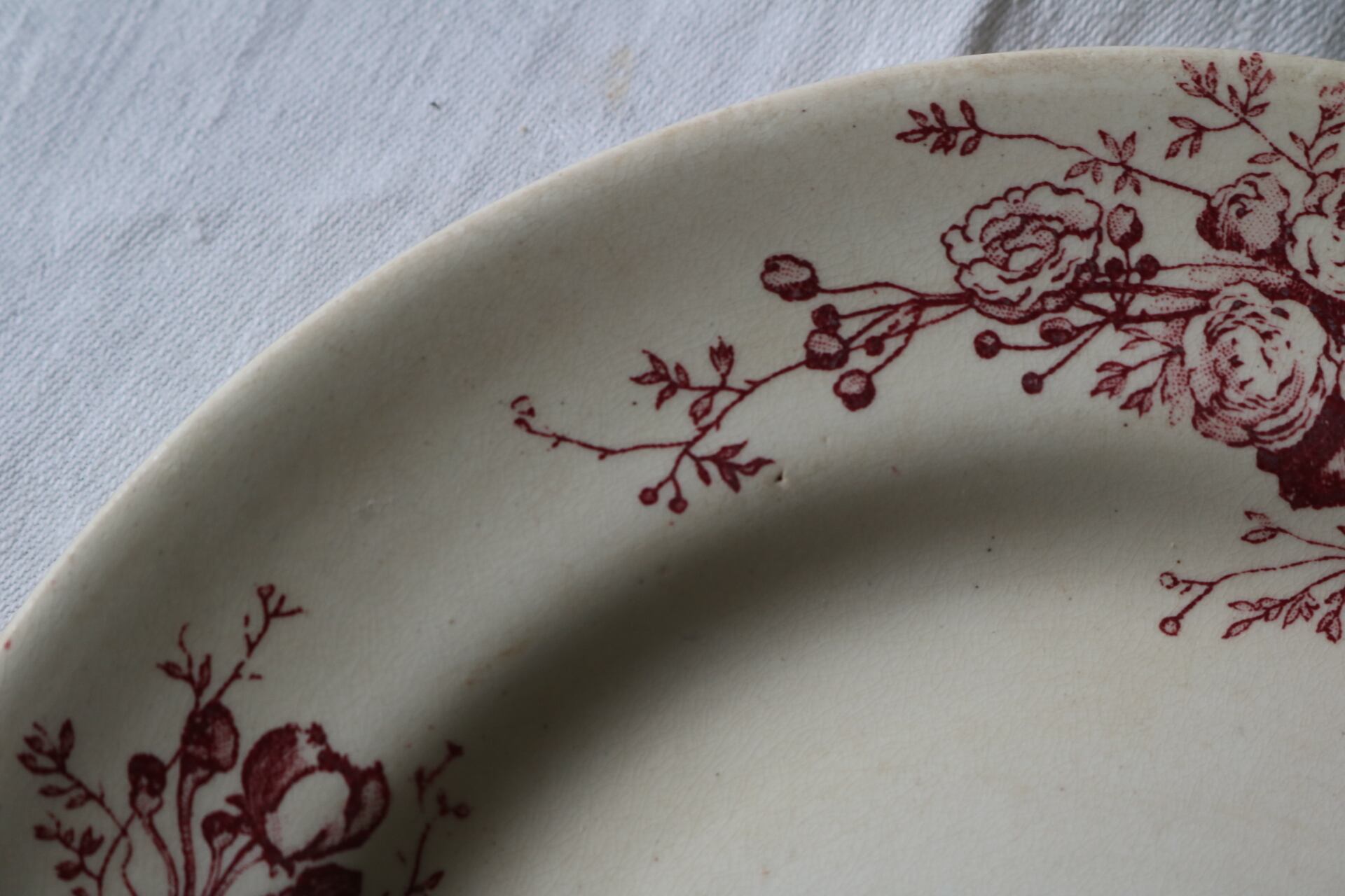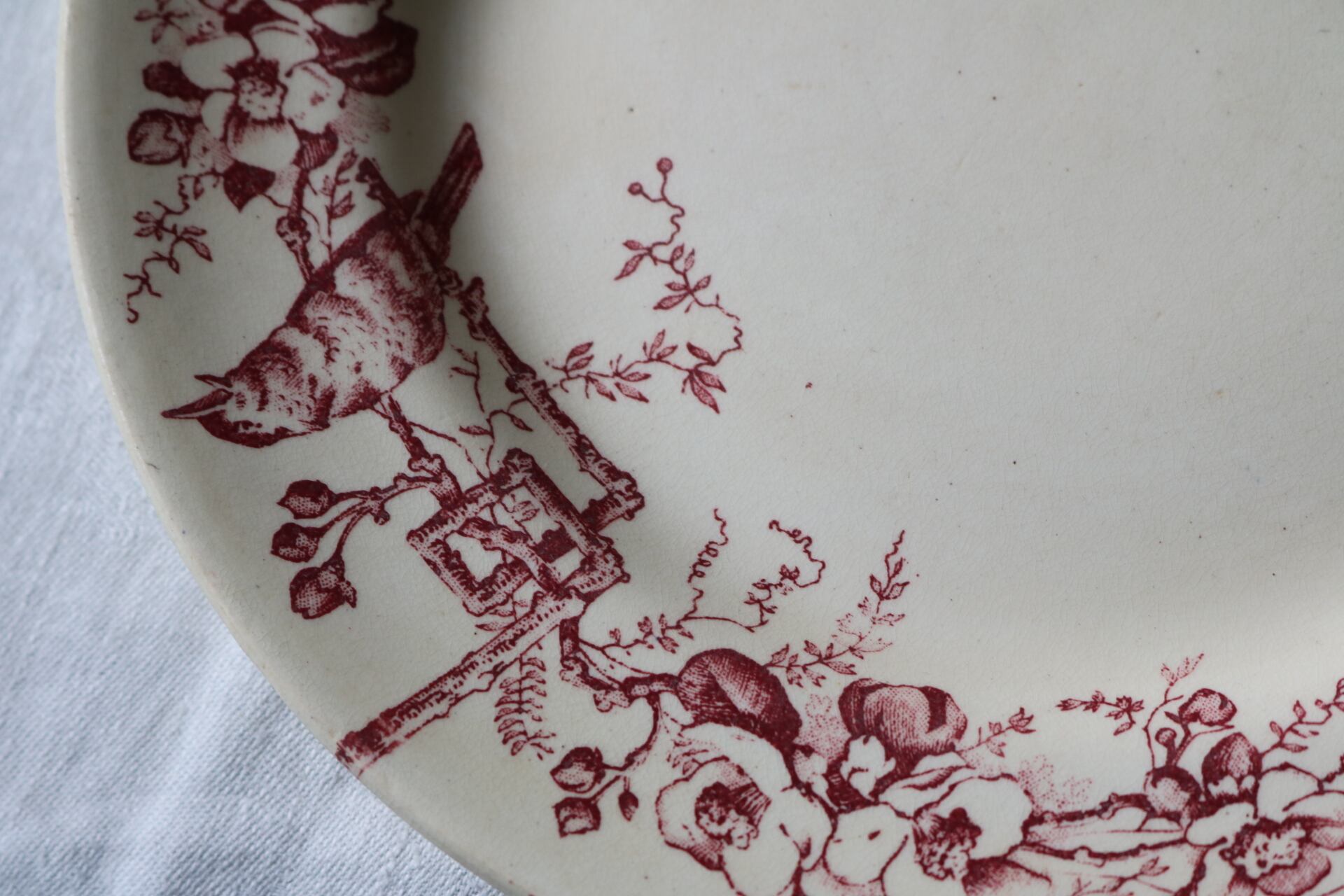 Emile bourgeois フランス アンティーク プレート 鳥 赤 ピンク