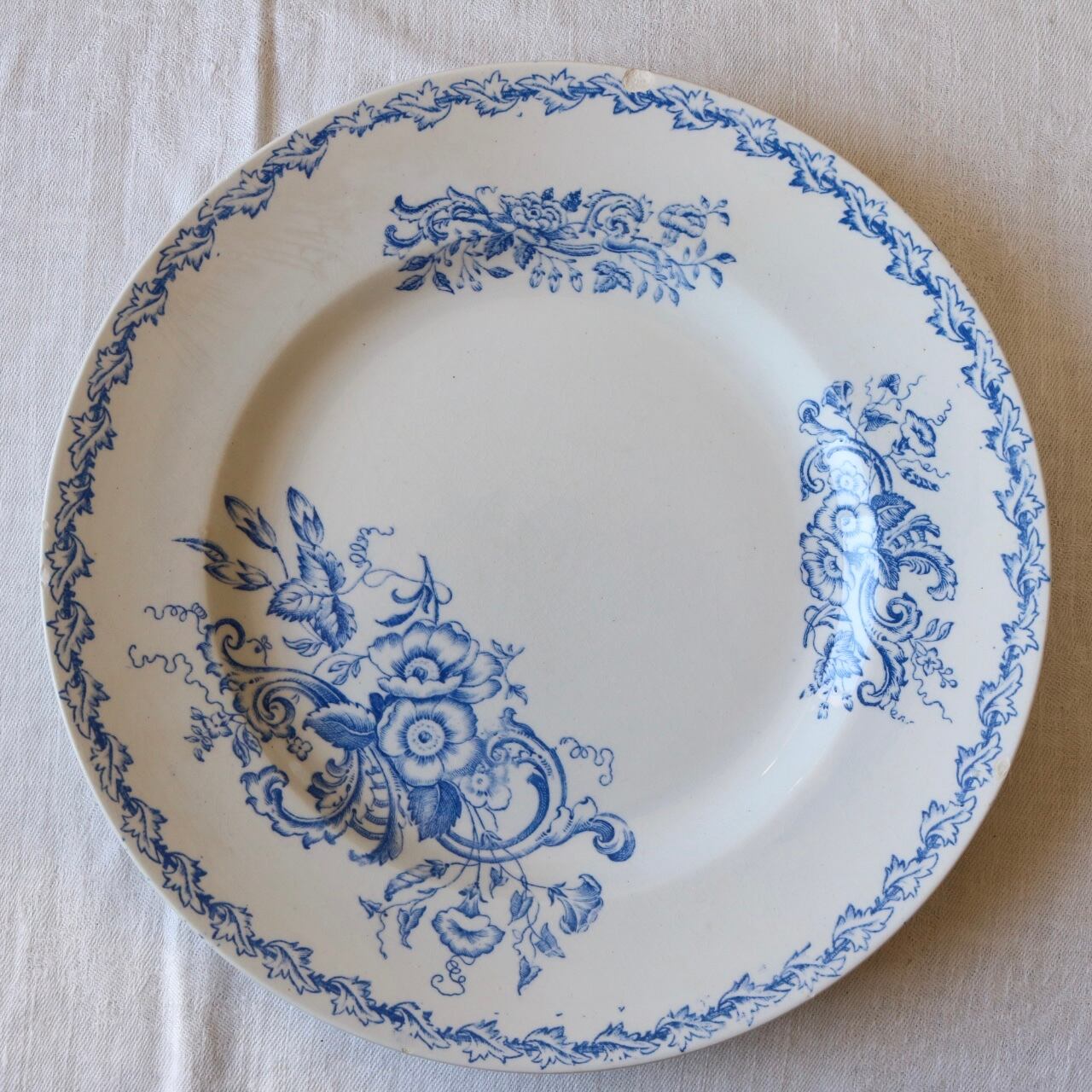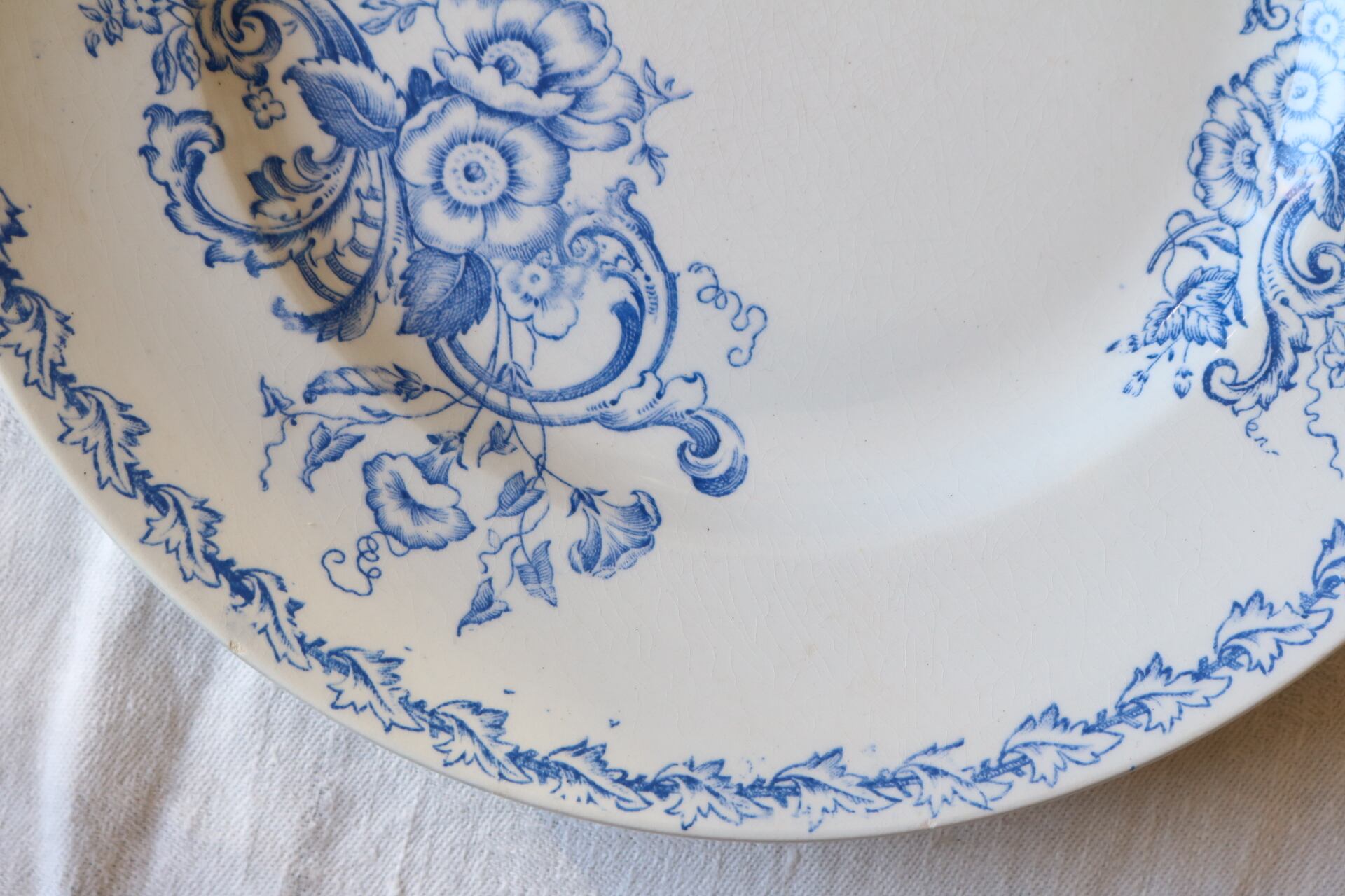 【欠有】フランス アンティーク プレート サンタマン ブルー