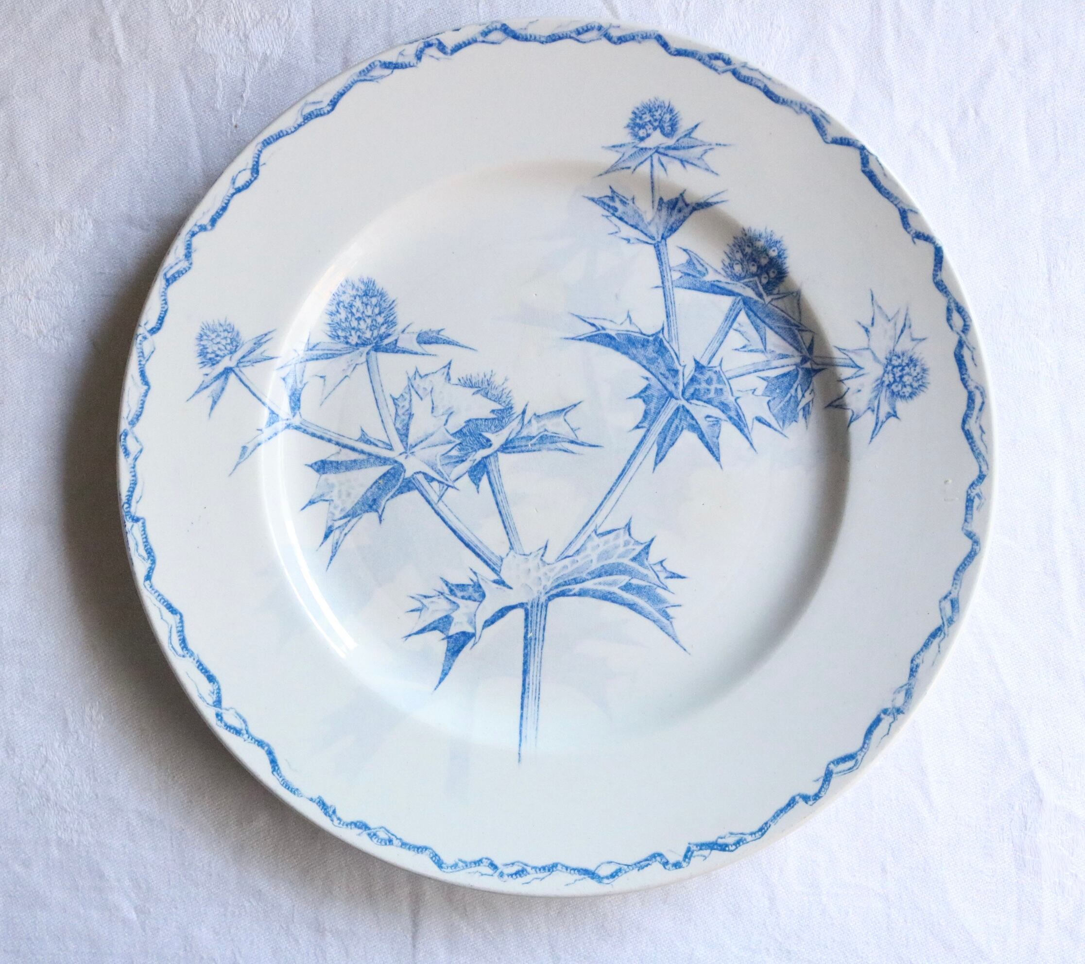 フランス アンティーク プレート クレイユエモントロー ブルー