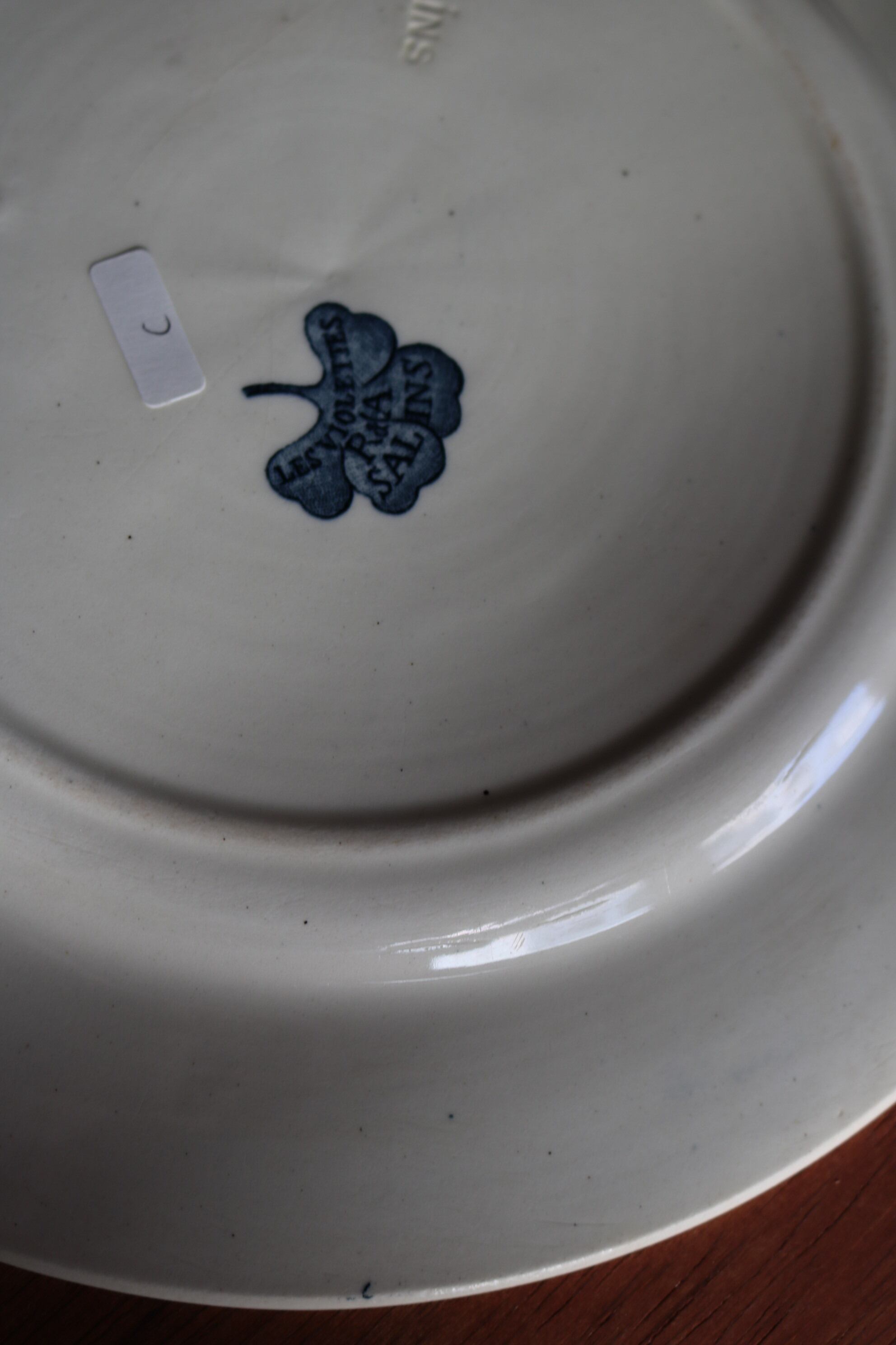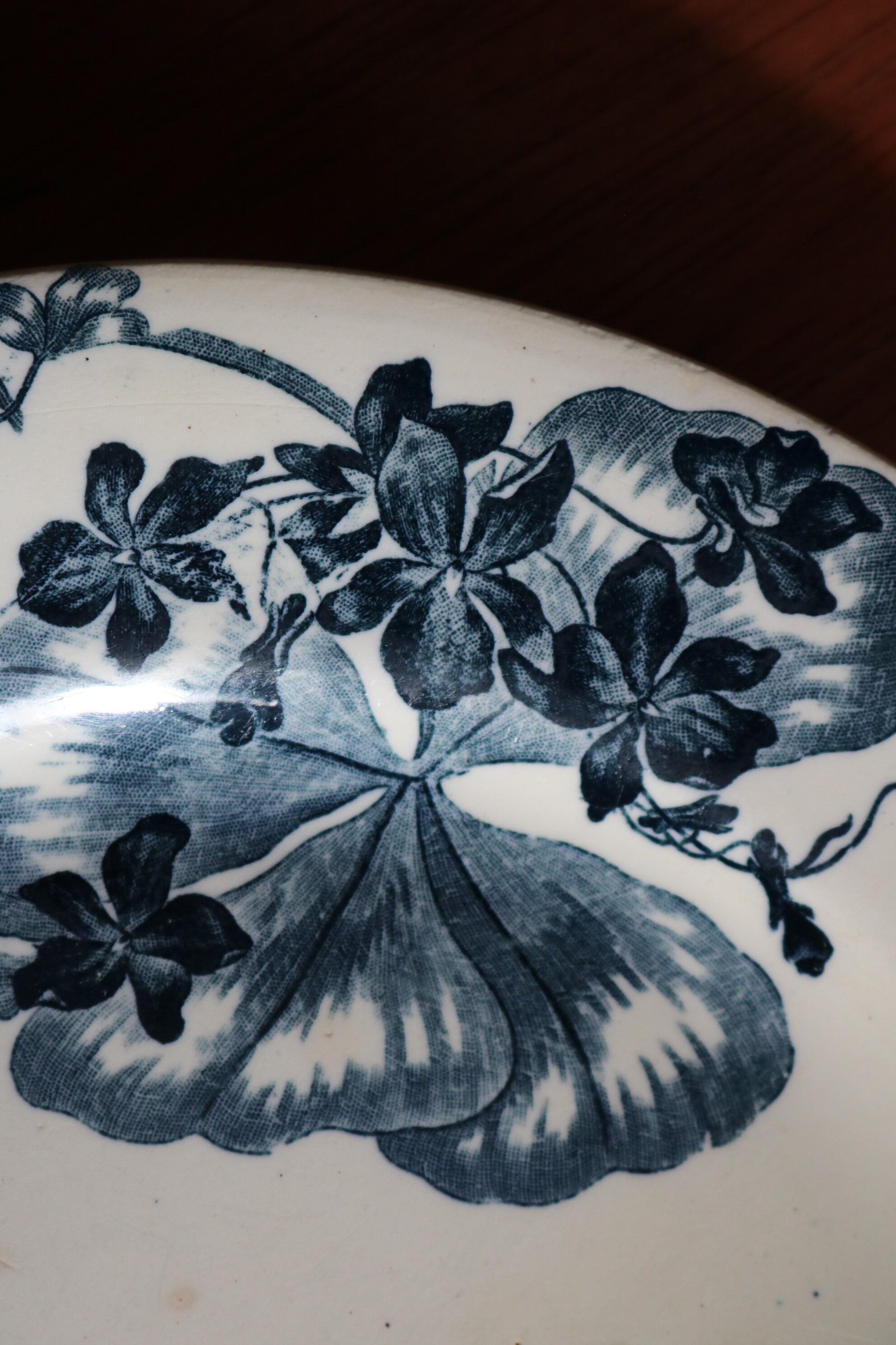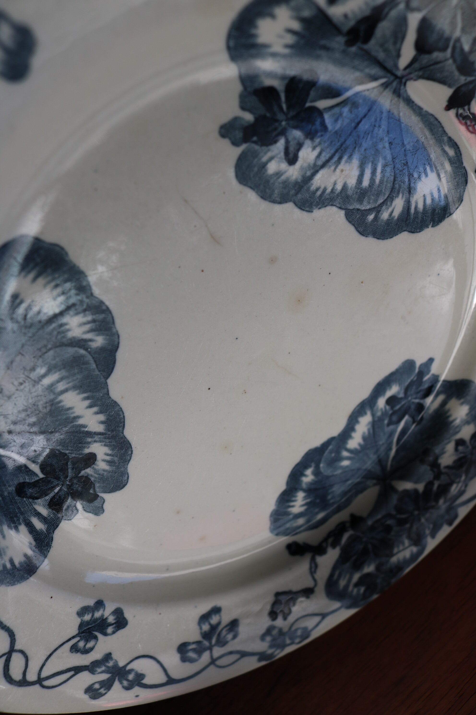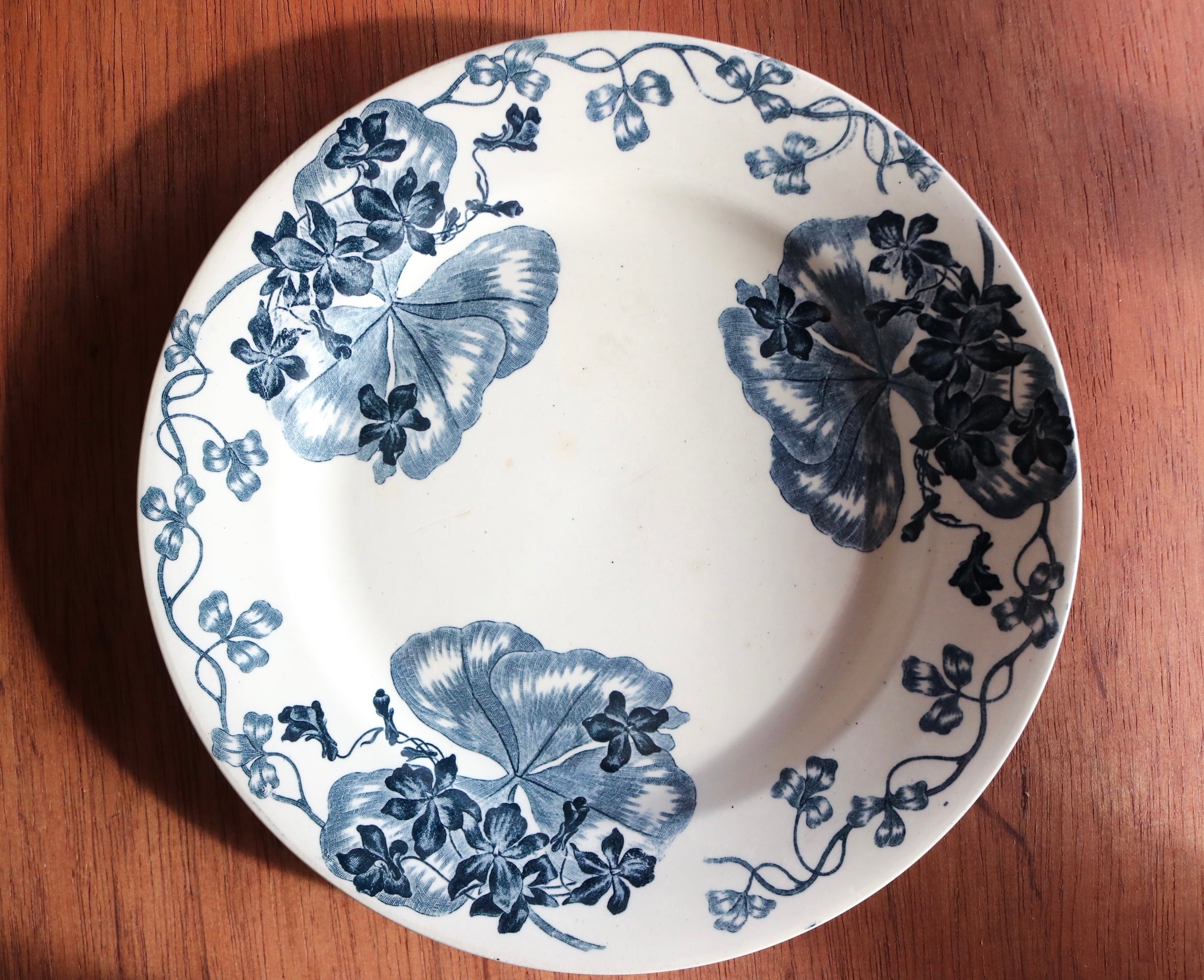 フランス アンティーク プレート C スミレ 四葉のクローバー ブルーグリーン