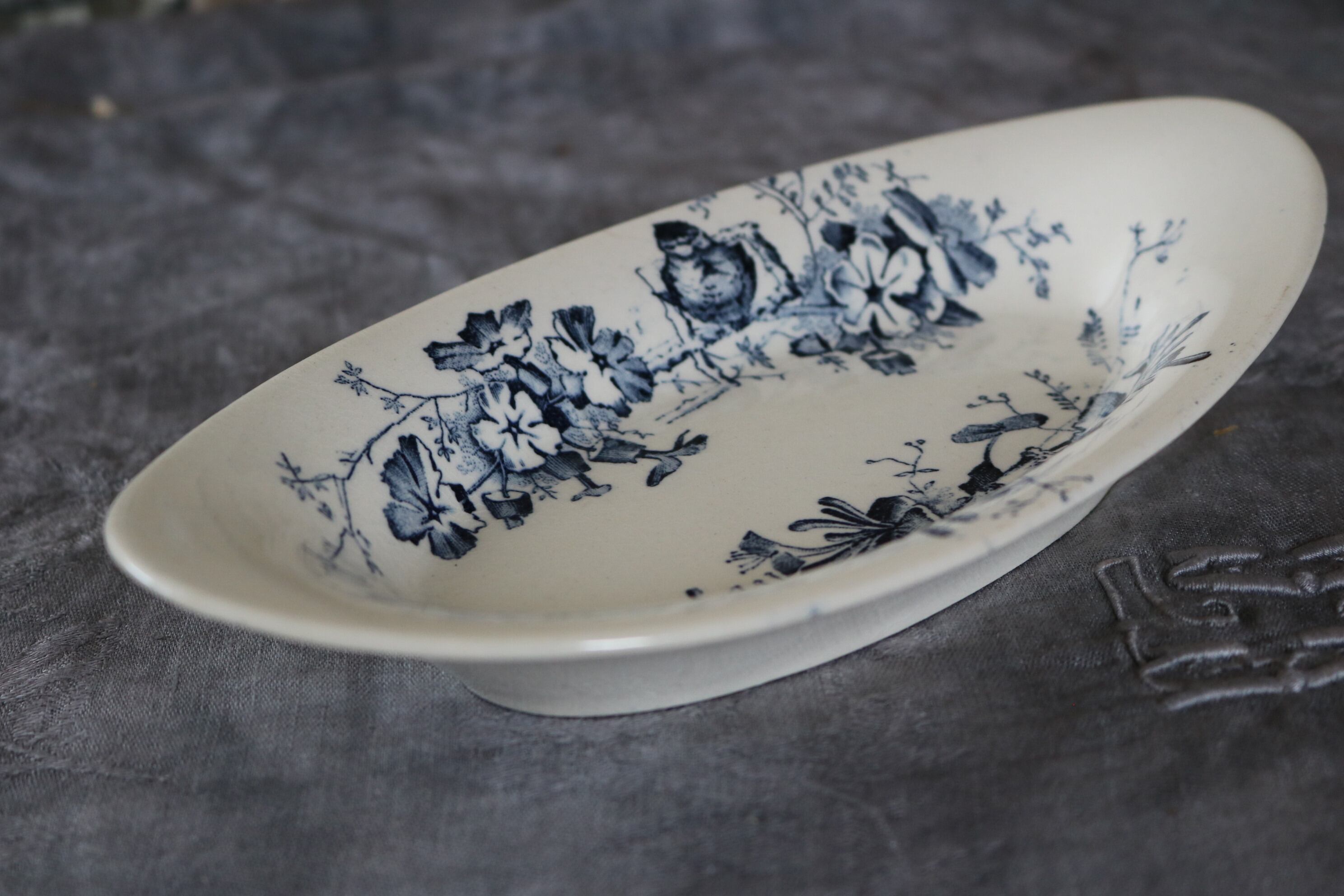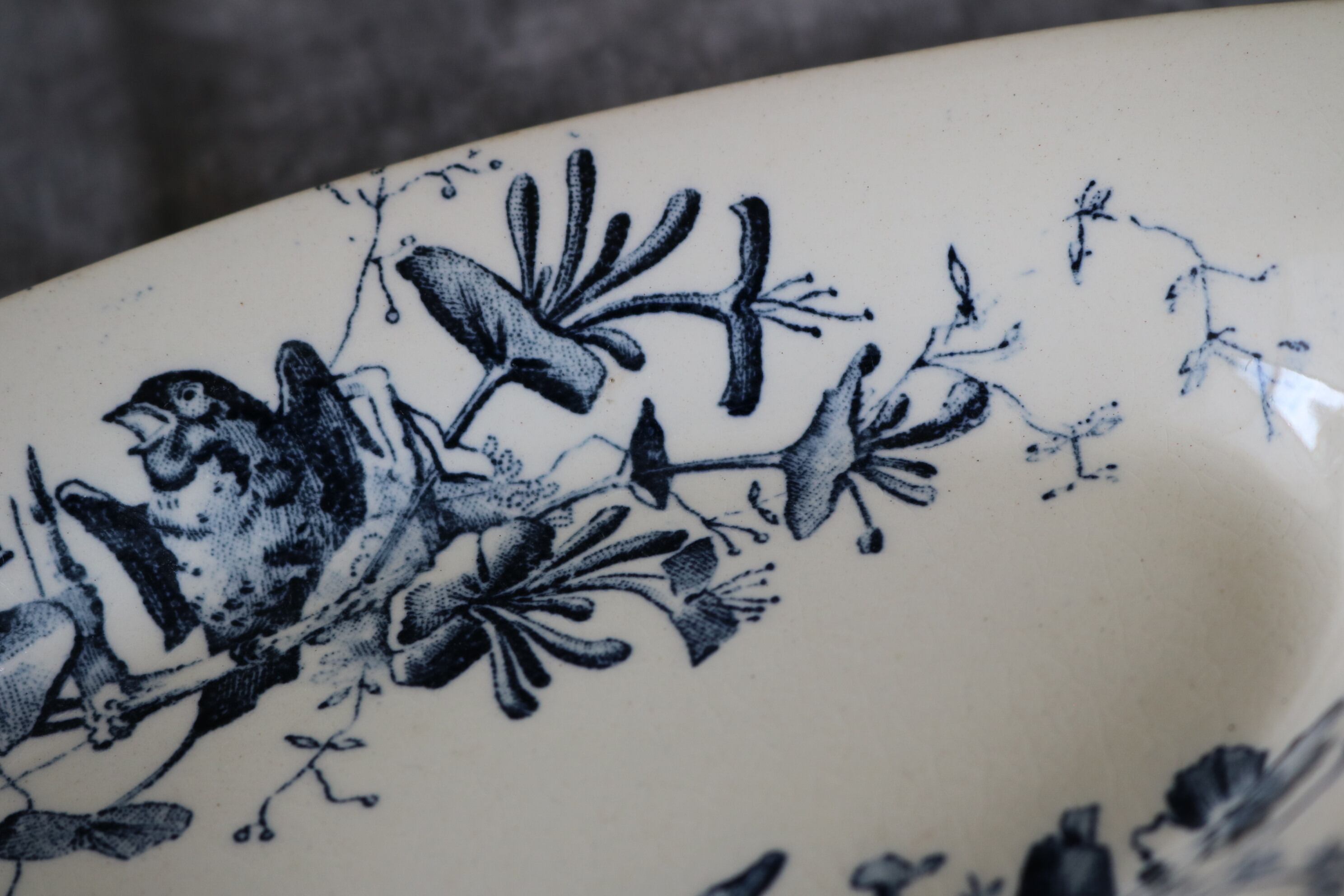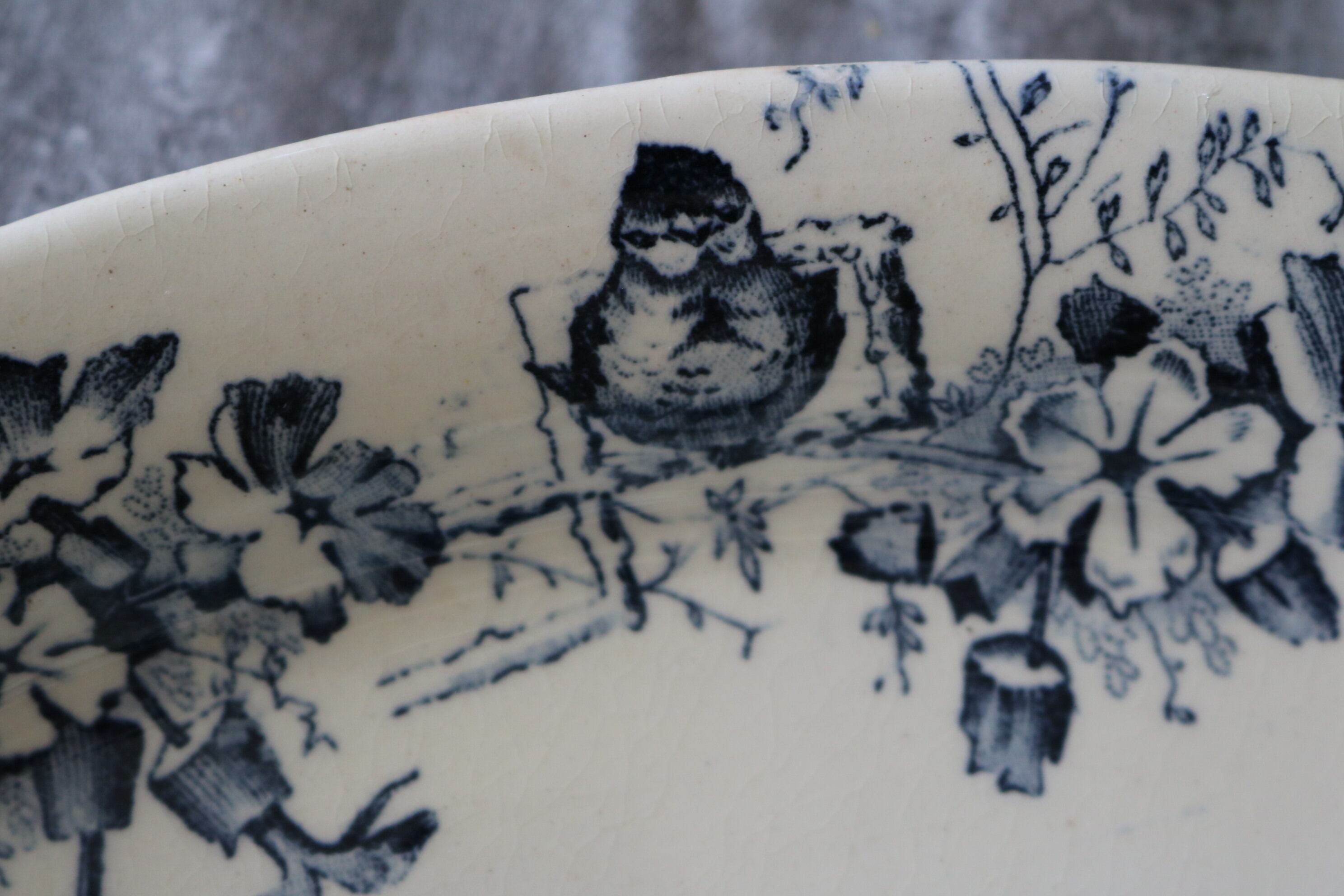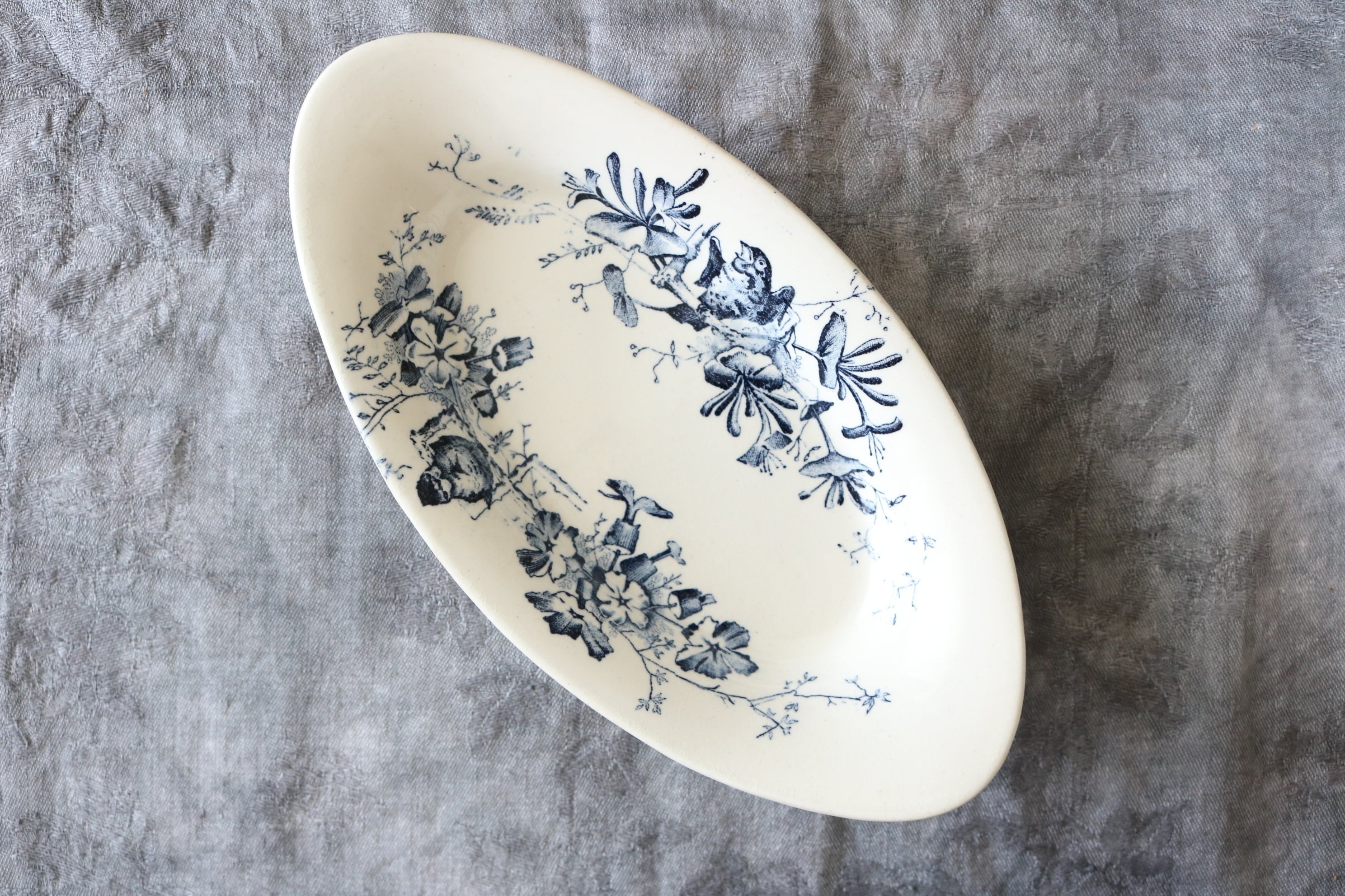 フランス アンティーク ラヴィエ E.bourgeois 鳥柄 藍色