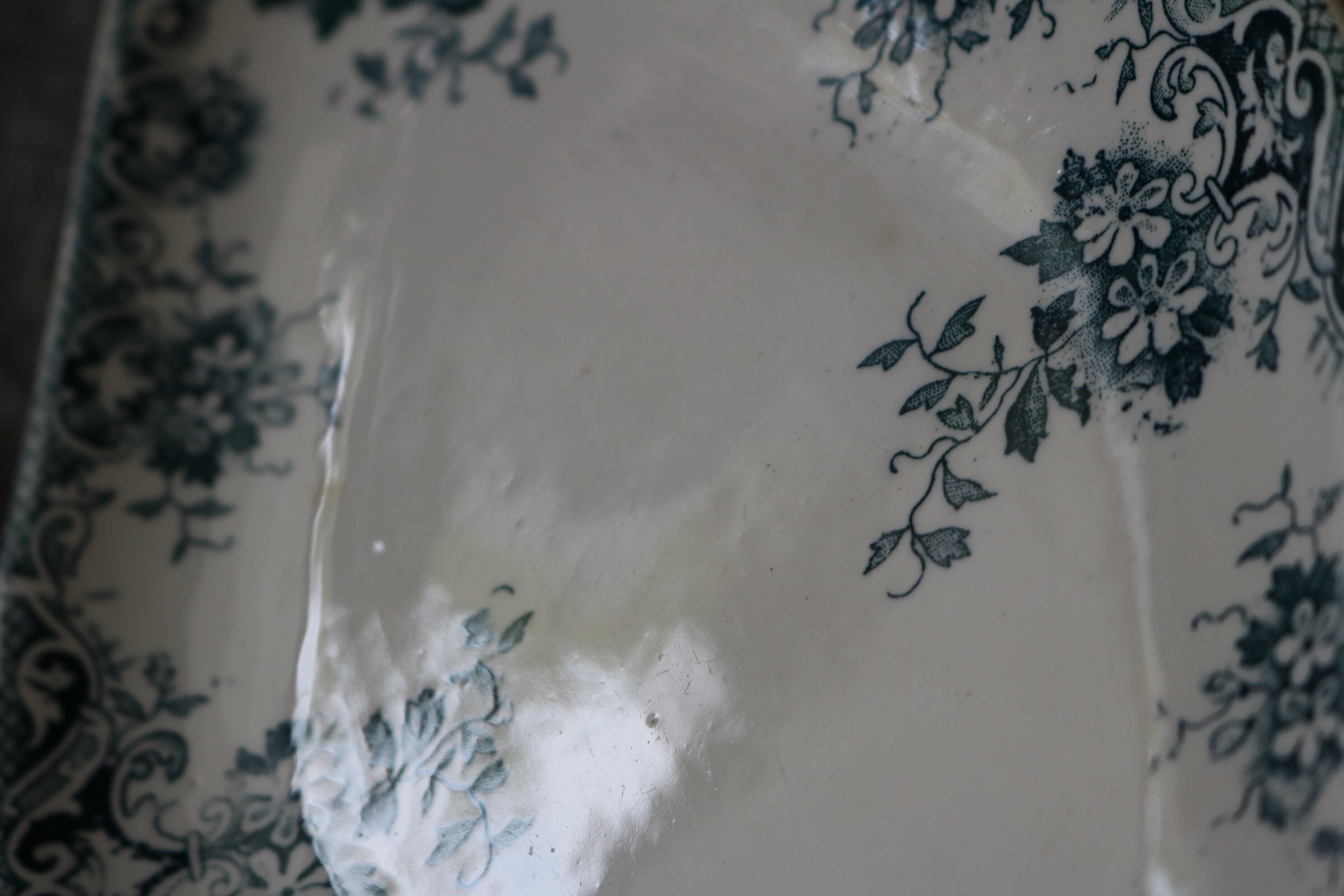 フランス アンティーク ラヴィエ saint Amand ブルーグリーン ボタニカル