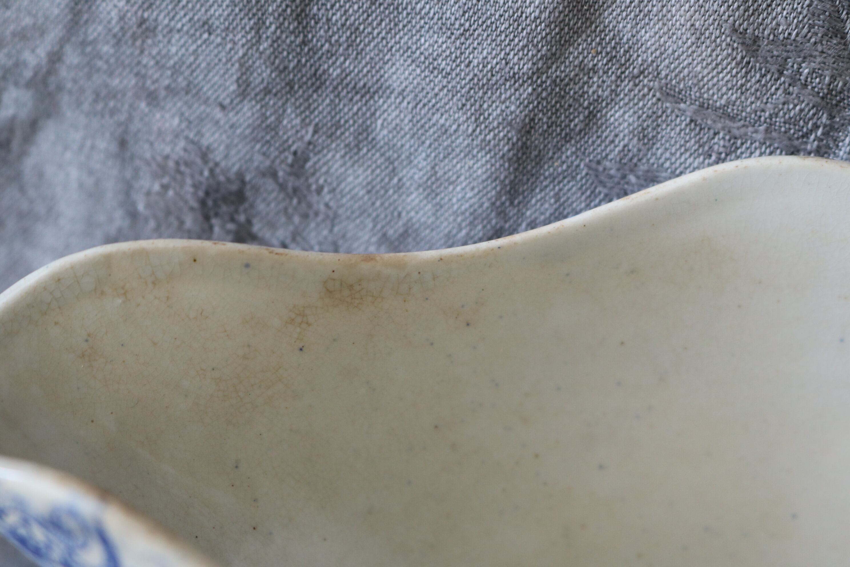 貫入、カトラリー跡、小傷、絵柄の飛びや滲み