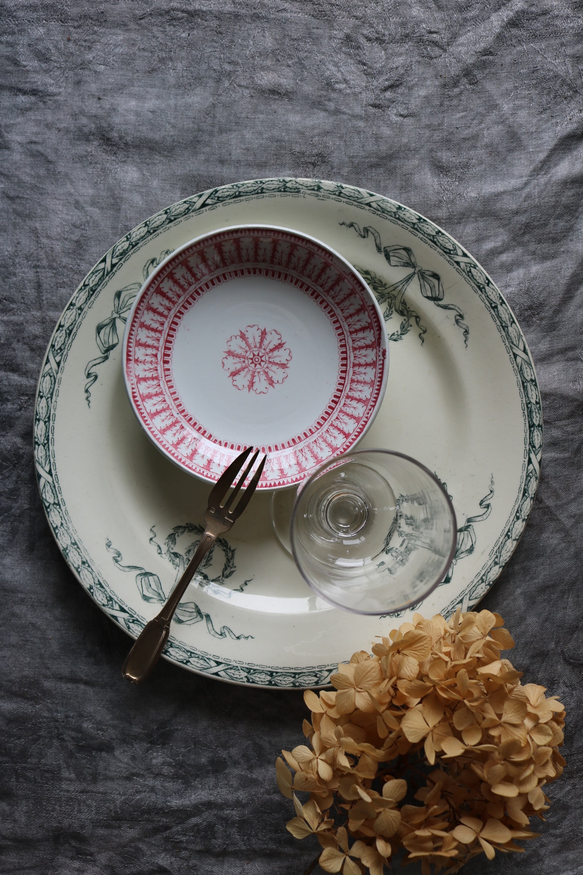 古いものなので、経年による染み、貫入、カトラリー跡、小傷、絵柄の飛び、滲み、焼成時からの傷、釉薬のはげ等ある場合がございます。