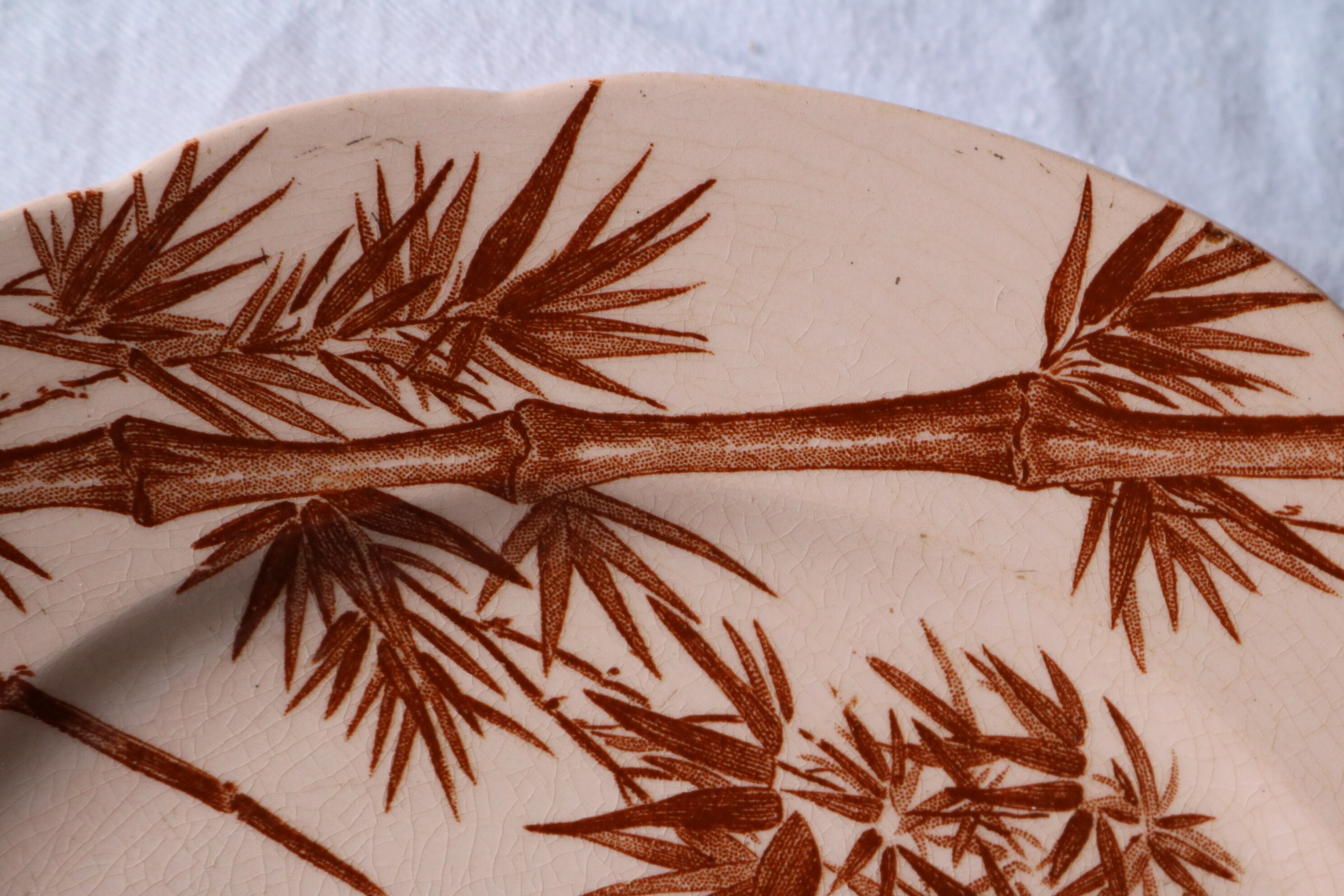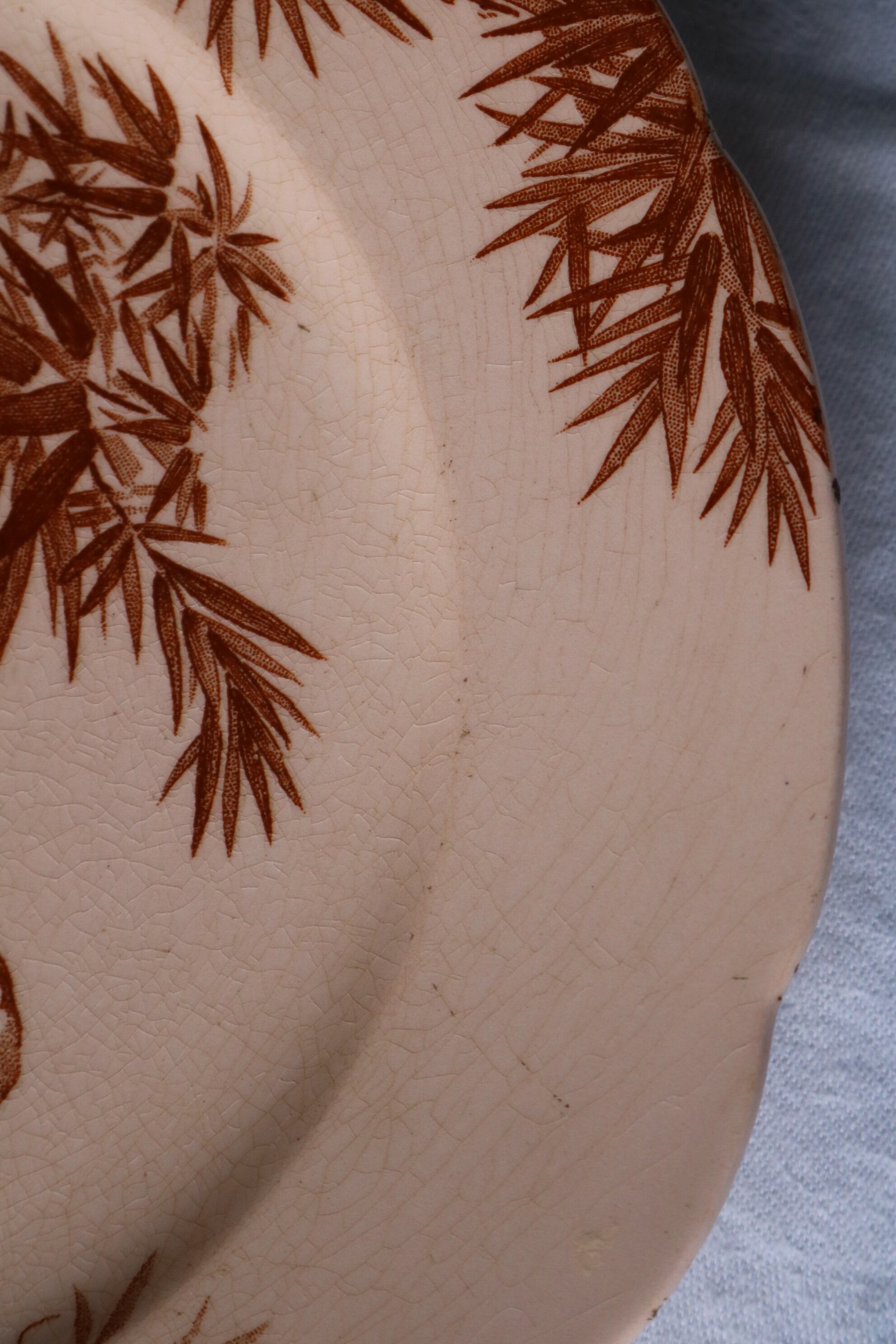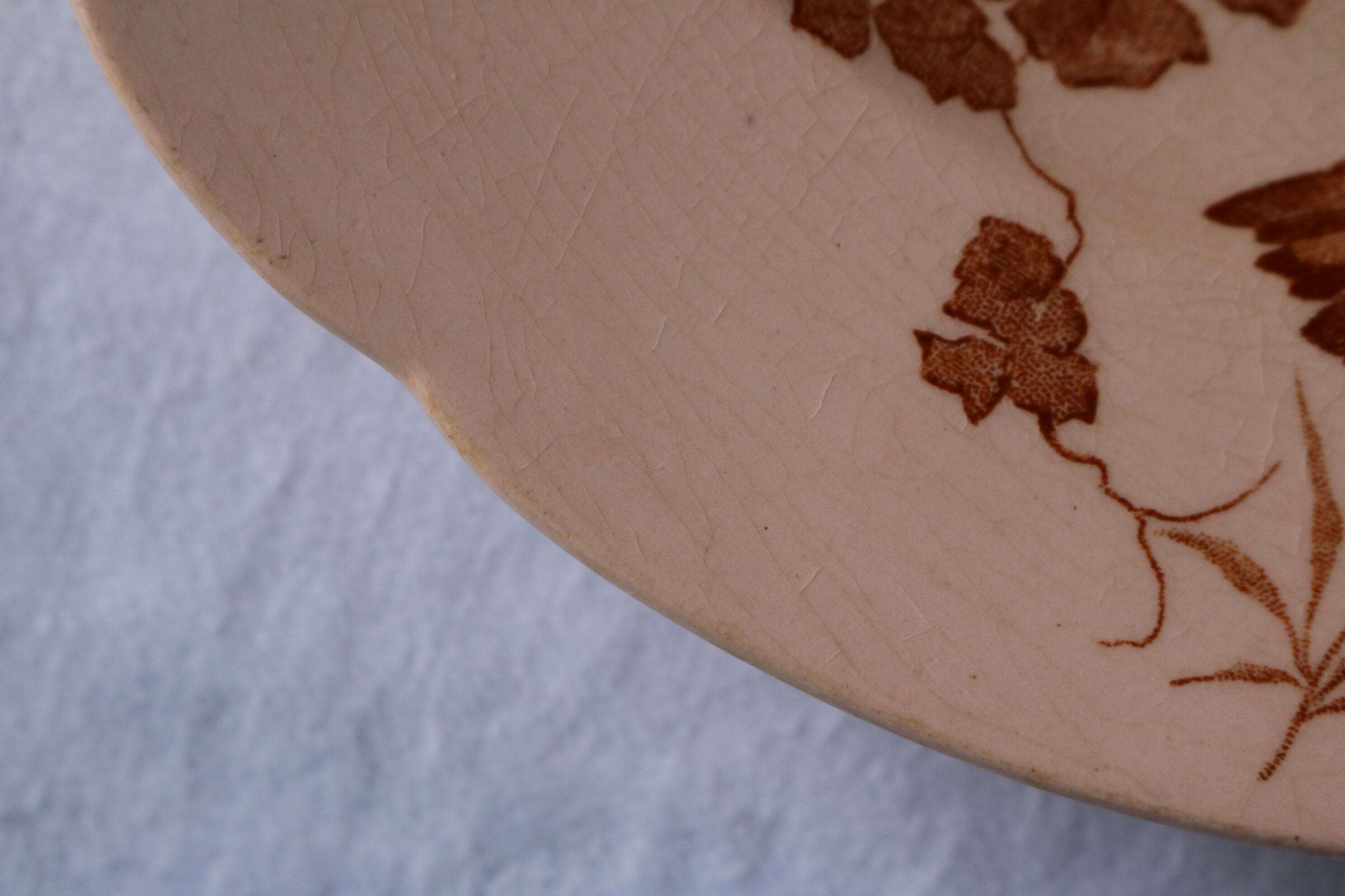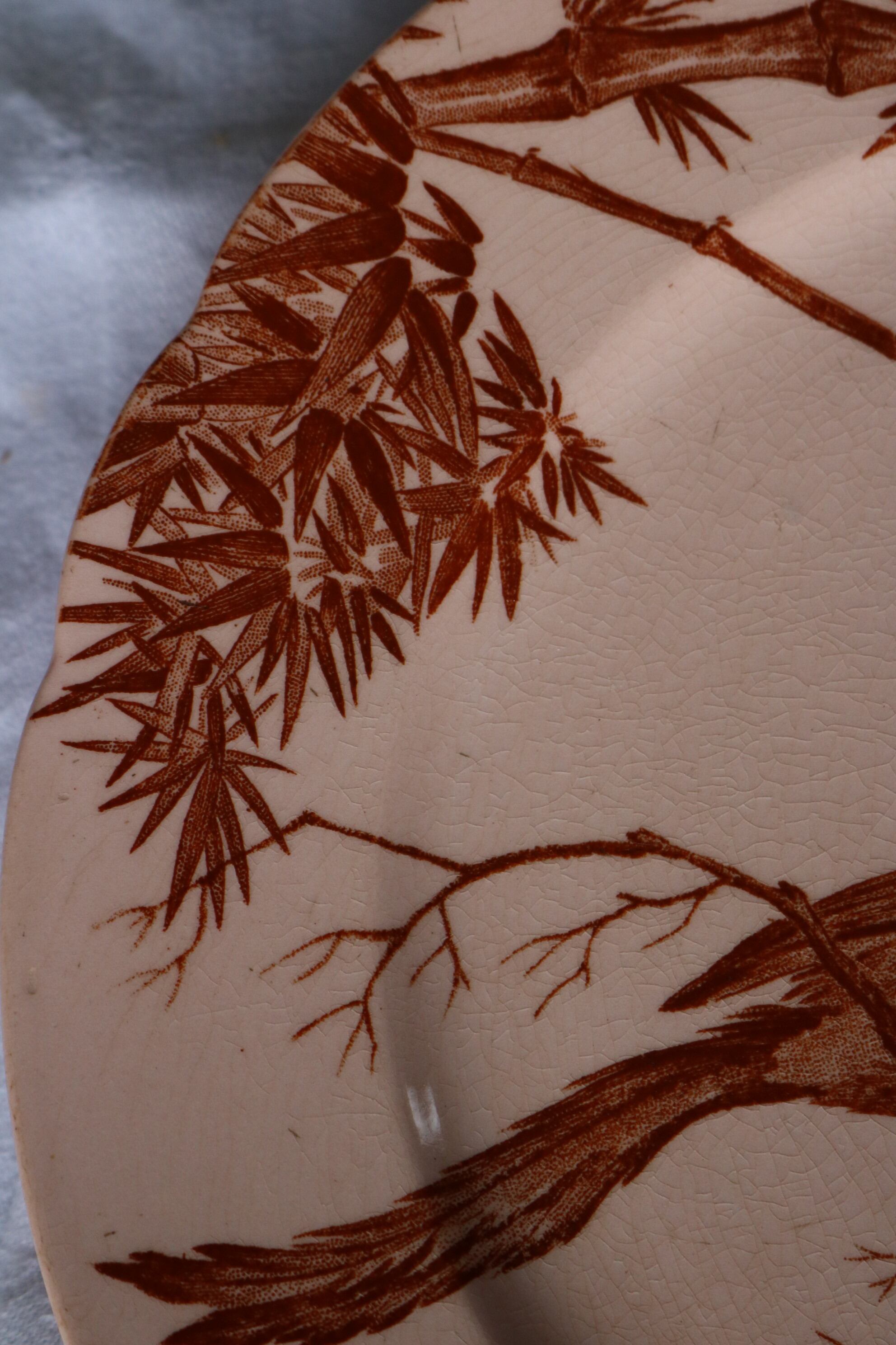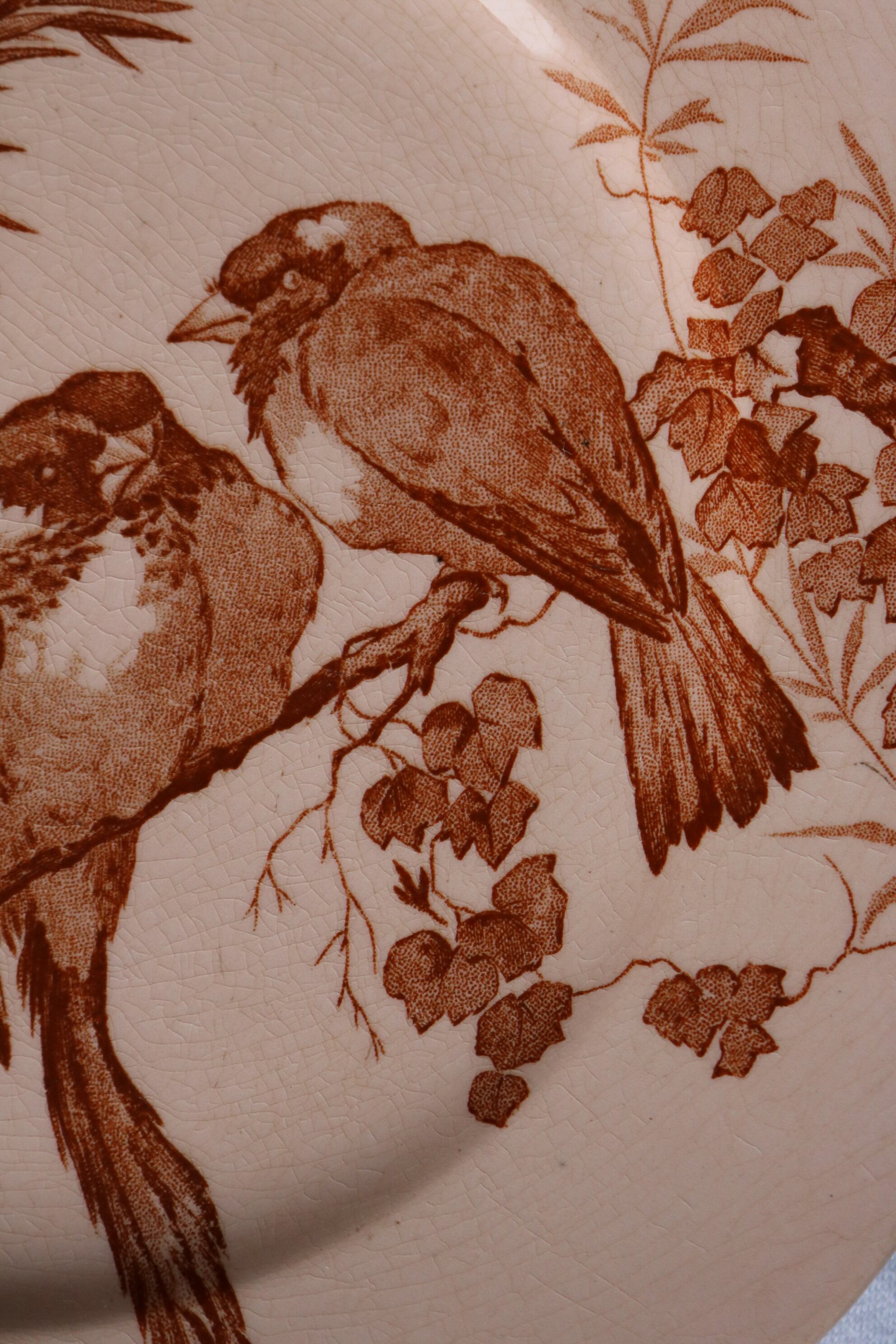 Longwy サーモンピンク 鳥 ジャポニズム 花リム フランス プレートAアンティーク