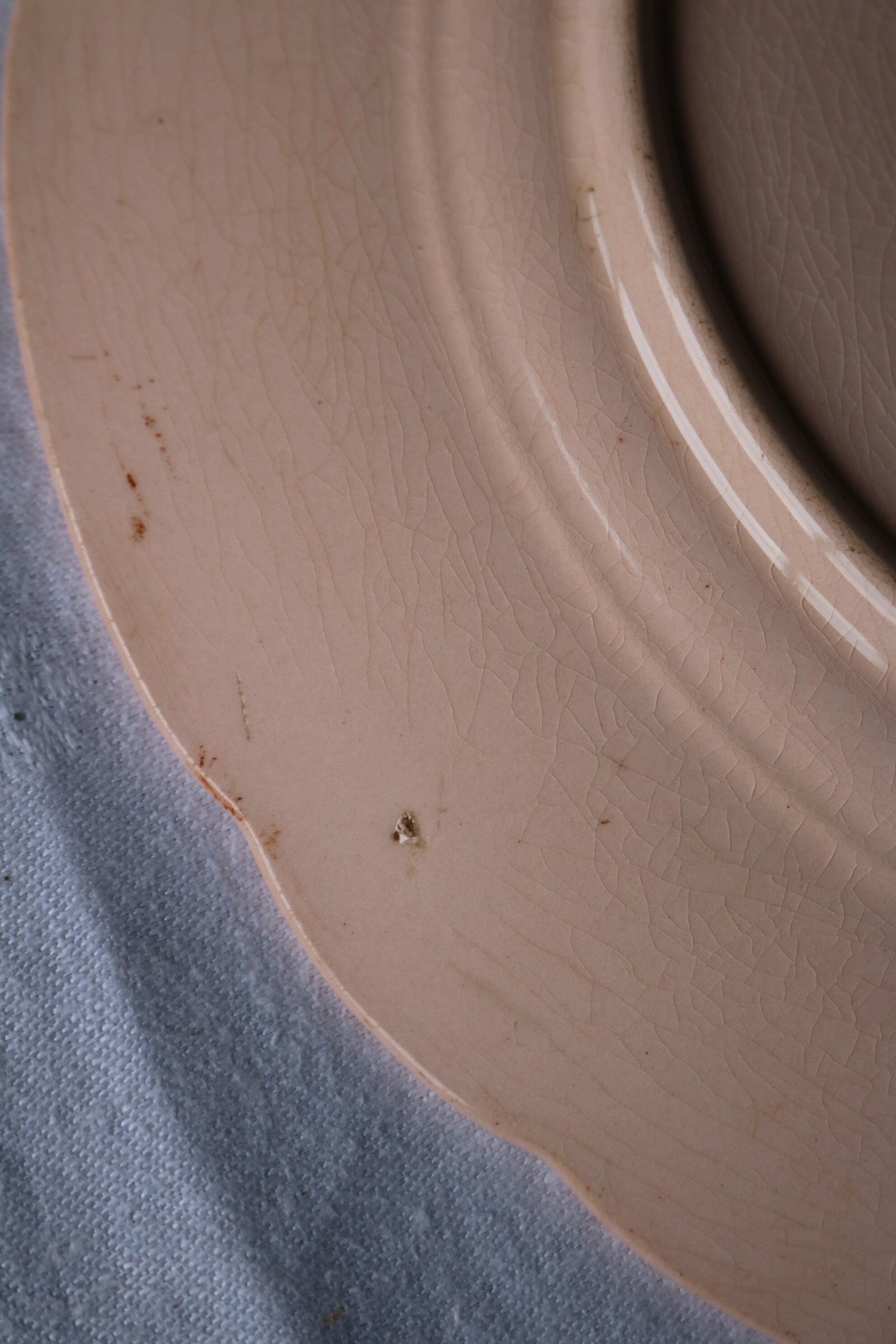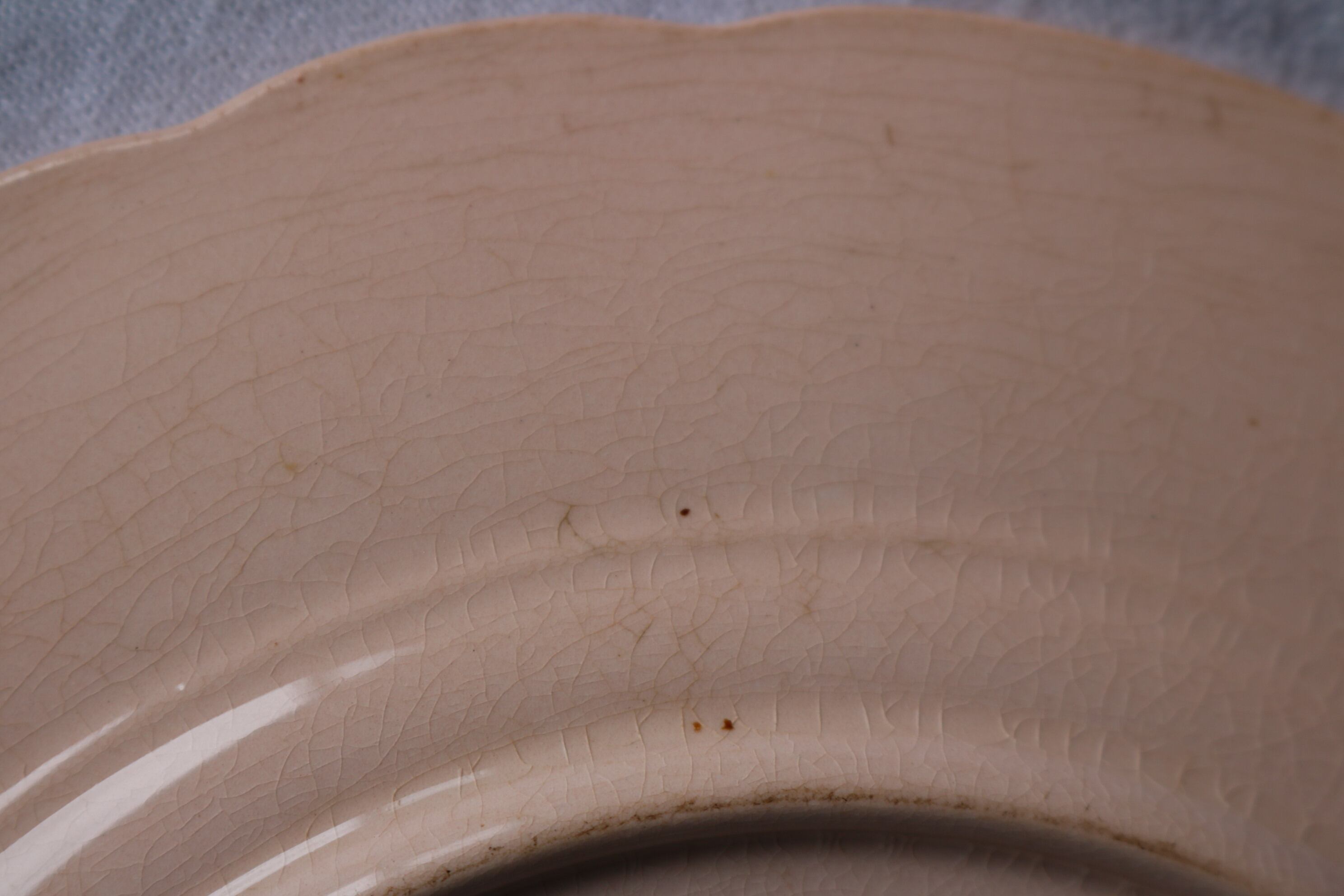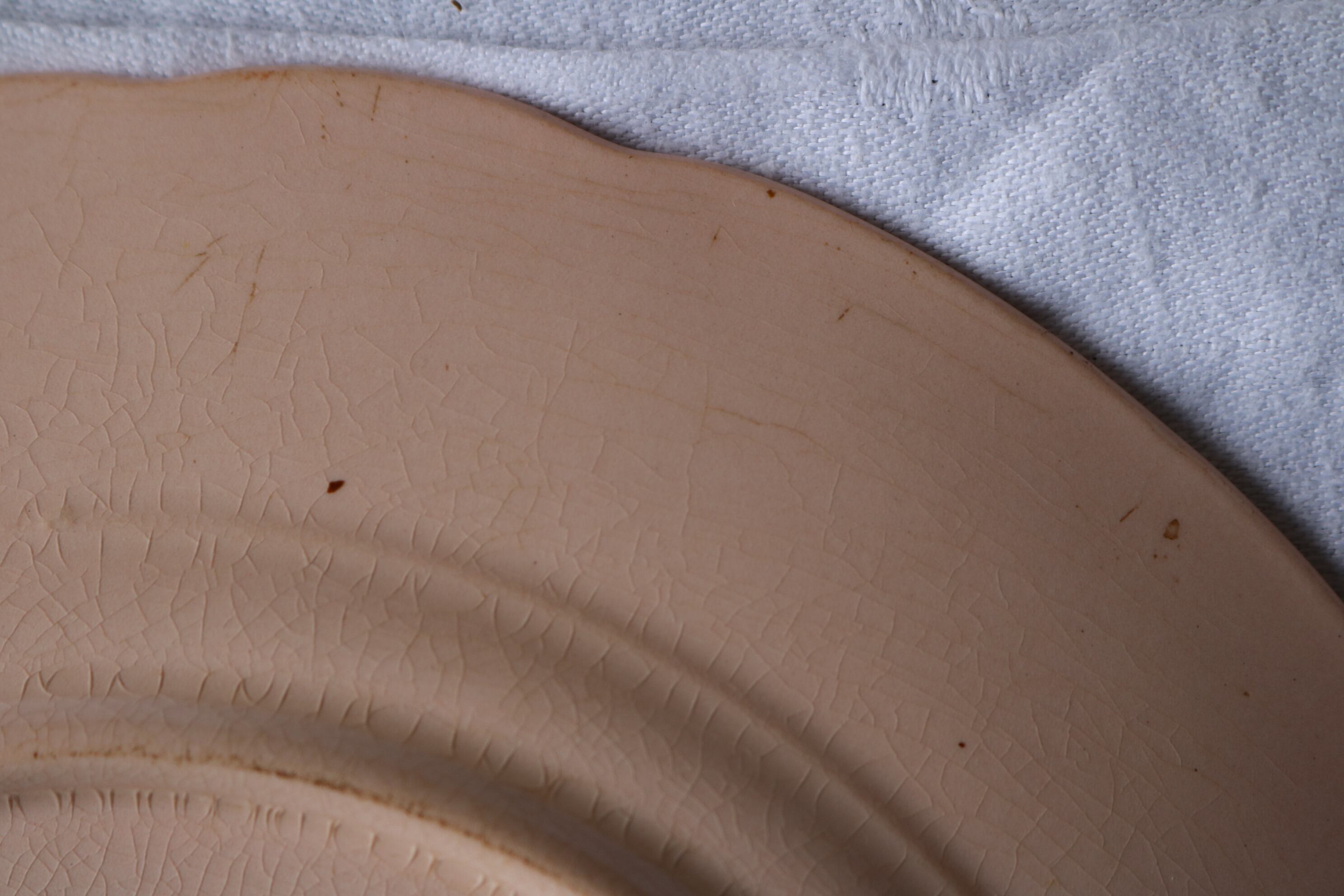 その他古いものなので、見落としや描ききれない経年による染み、貫入、カトラリー跡、小傷、絵柄の飛び、滲み、焼成時からの傷、釉薬のはげ等ある場合がございます。
