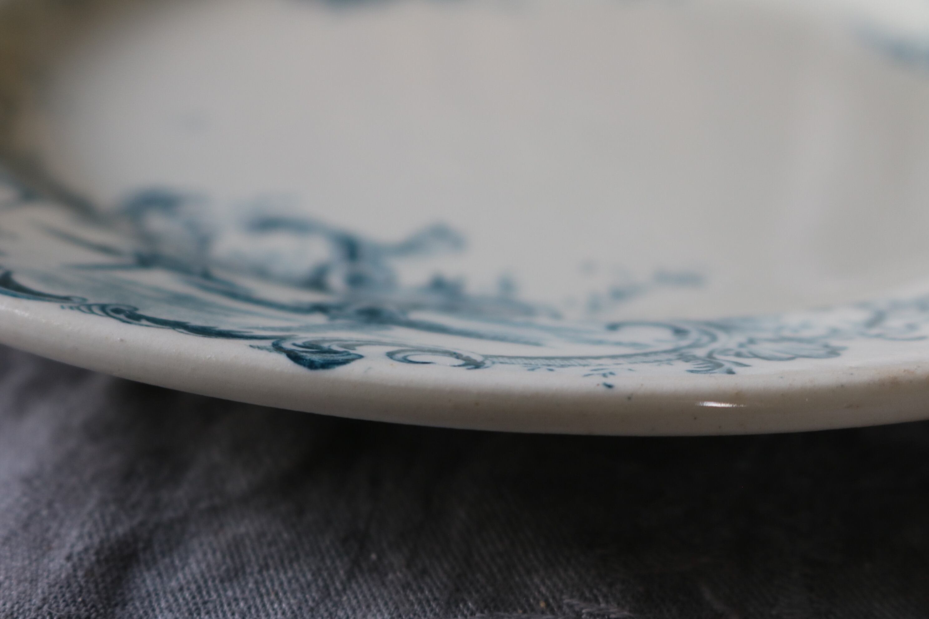 その他古いものなので、見落としや描ききれない経年による染み、貫入、カトラリー跡、小傷、絵柄の飛び、滲み、焼成時からの傷、釉薬のはげ等ある場合がございます。