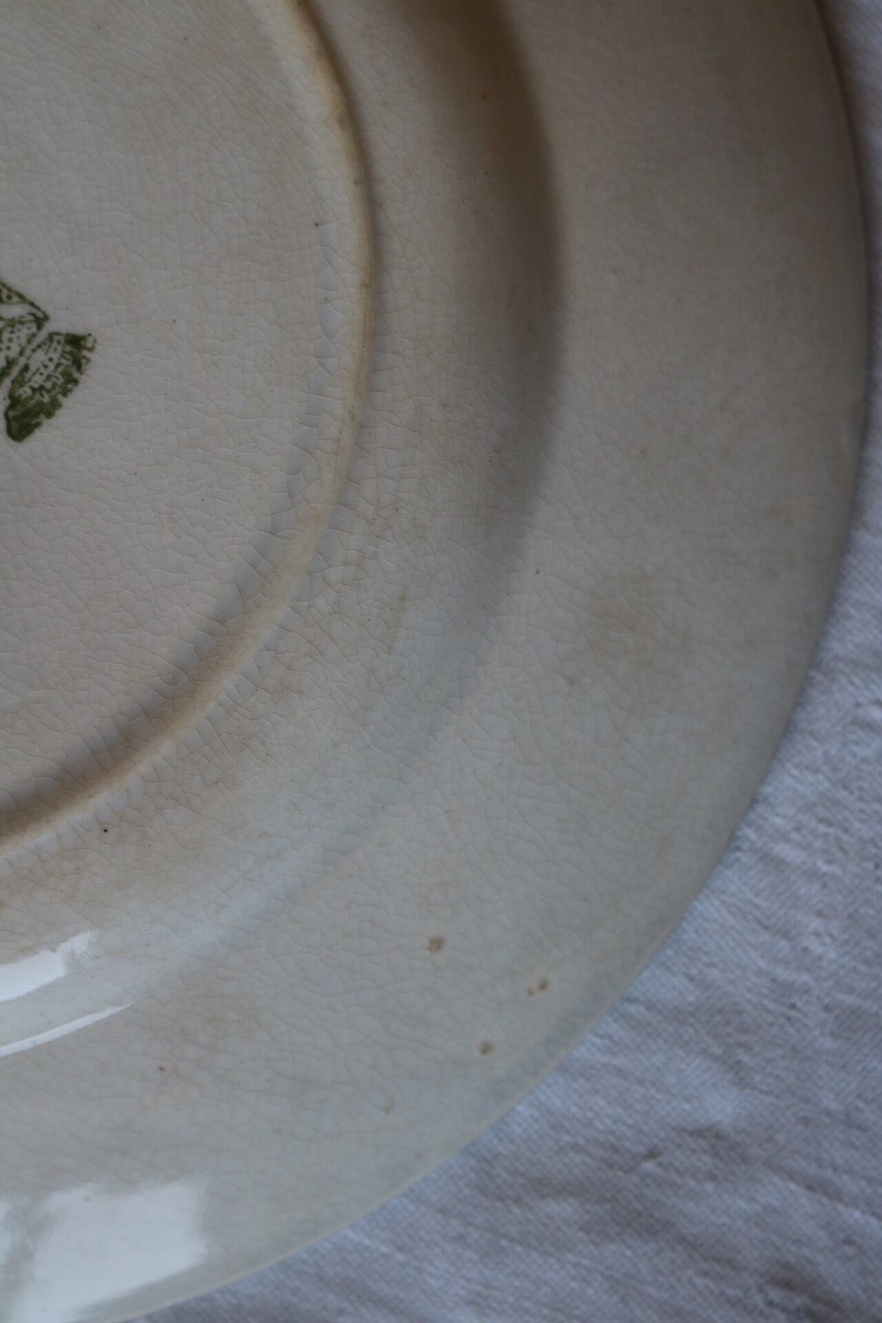 その他古いものなので、見落としや描ききれない経年による染み、貫入、カトラリー跡、小傷、絵柄の飛び、滲み、焼成時からの傷、釉薬のはげ等ある場合がございます。