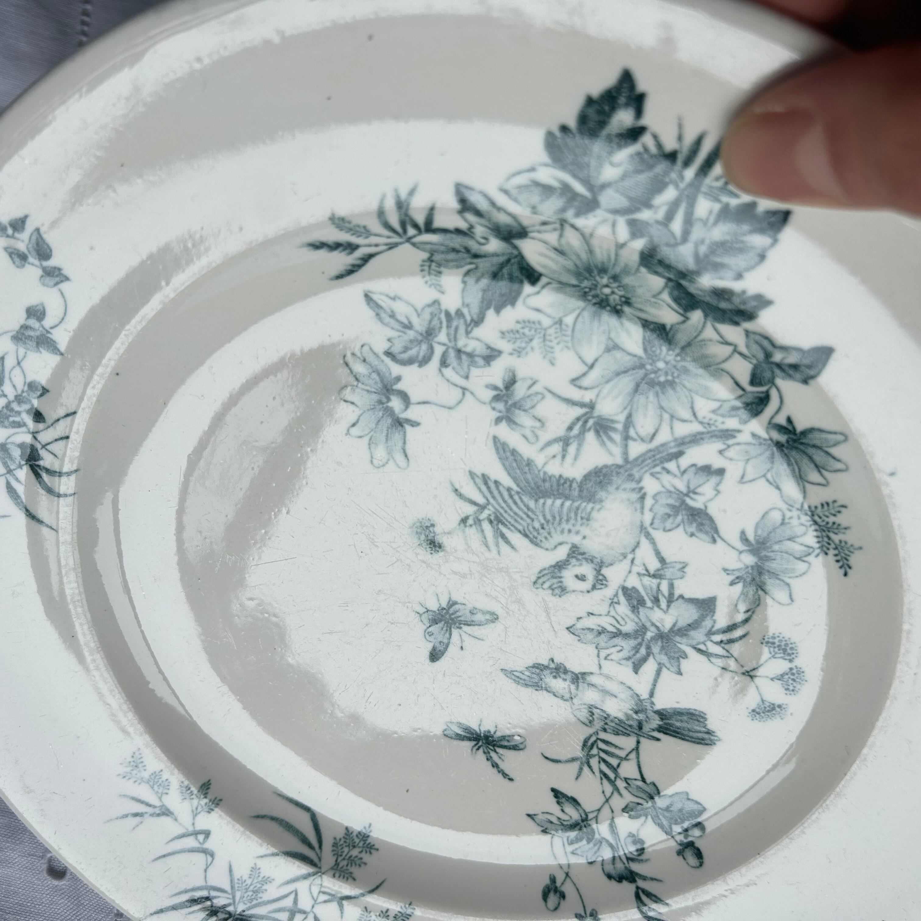 Longwy mignon デザート プレート インコ 鳥柄 フランス アンティーク