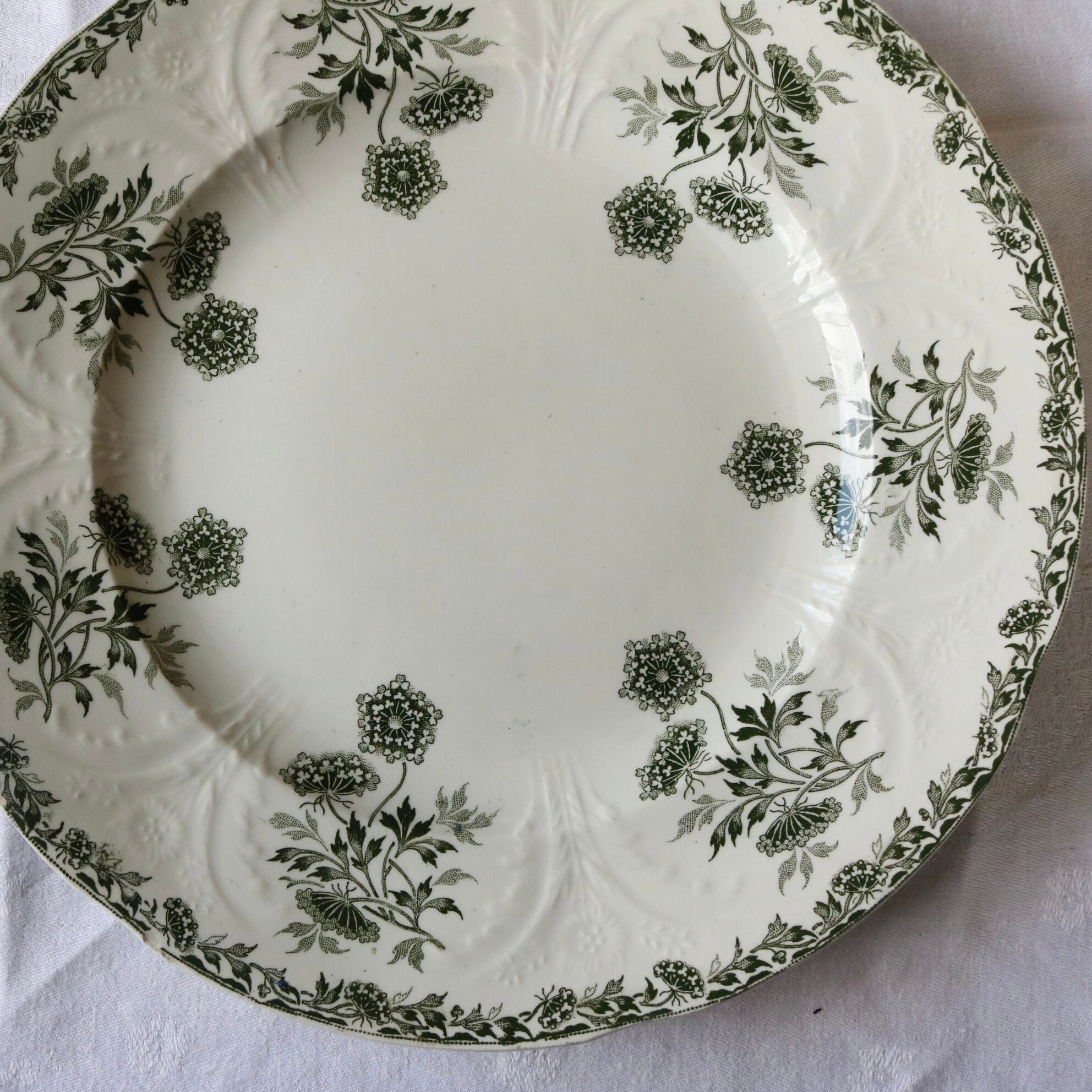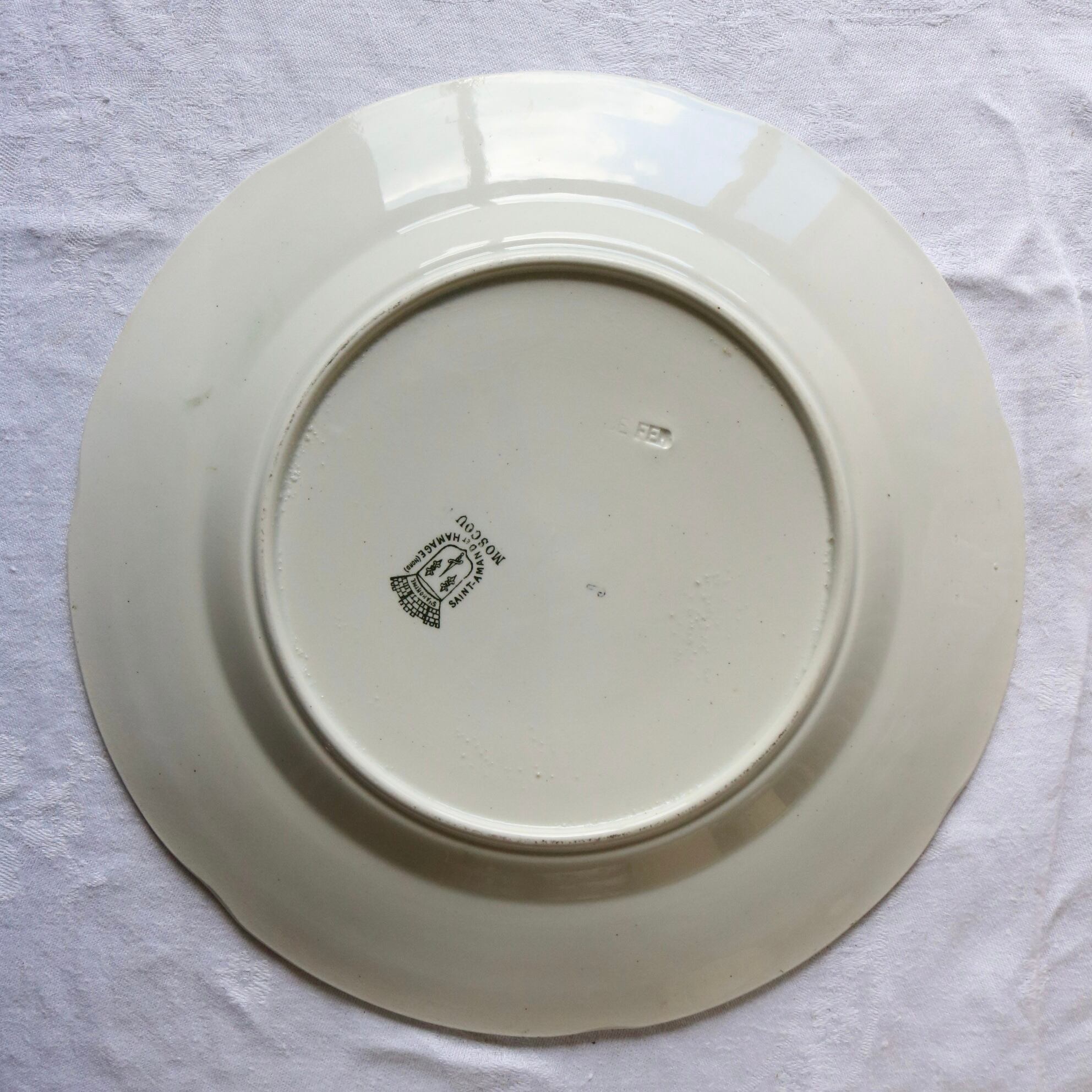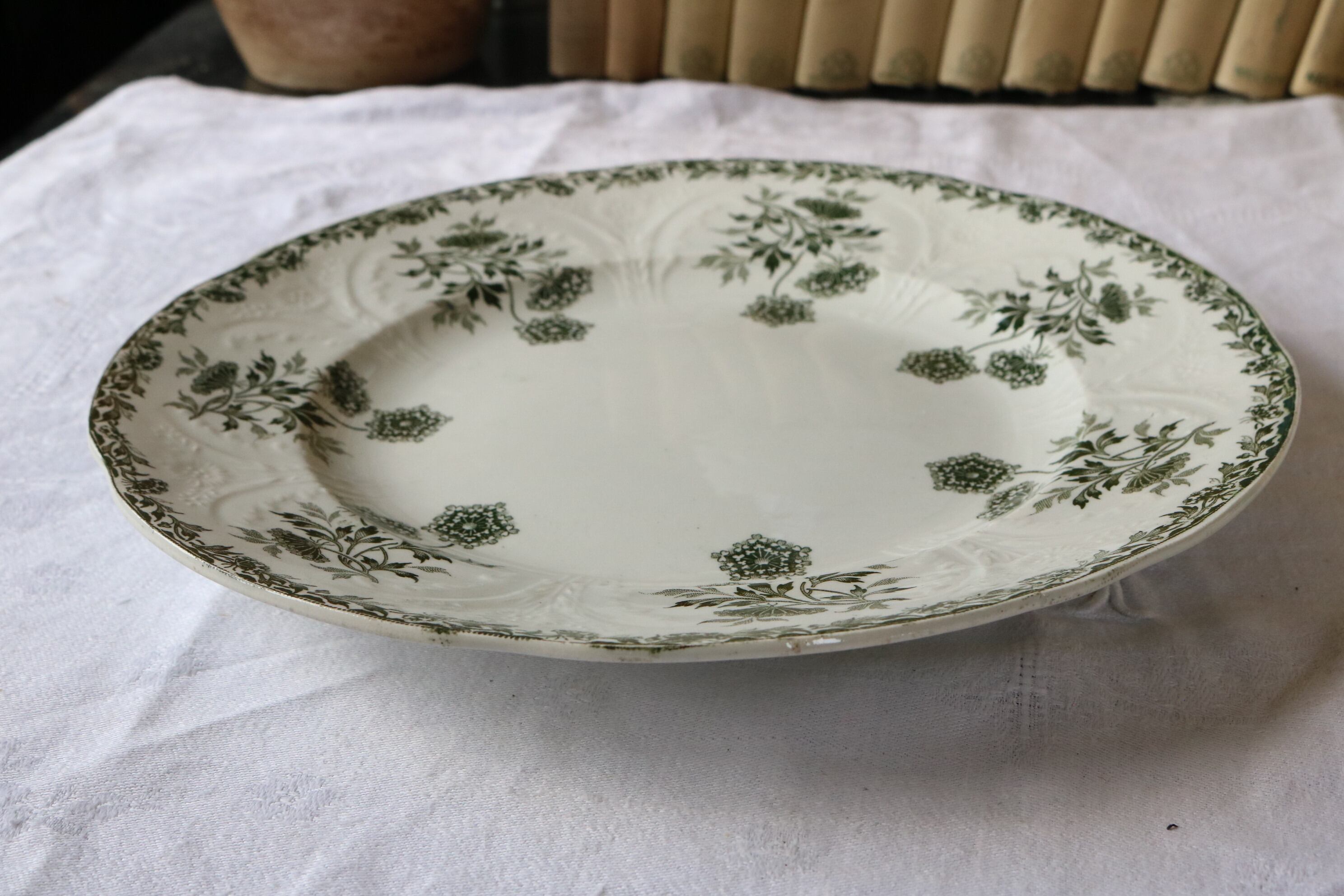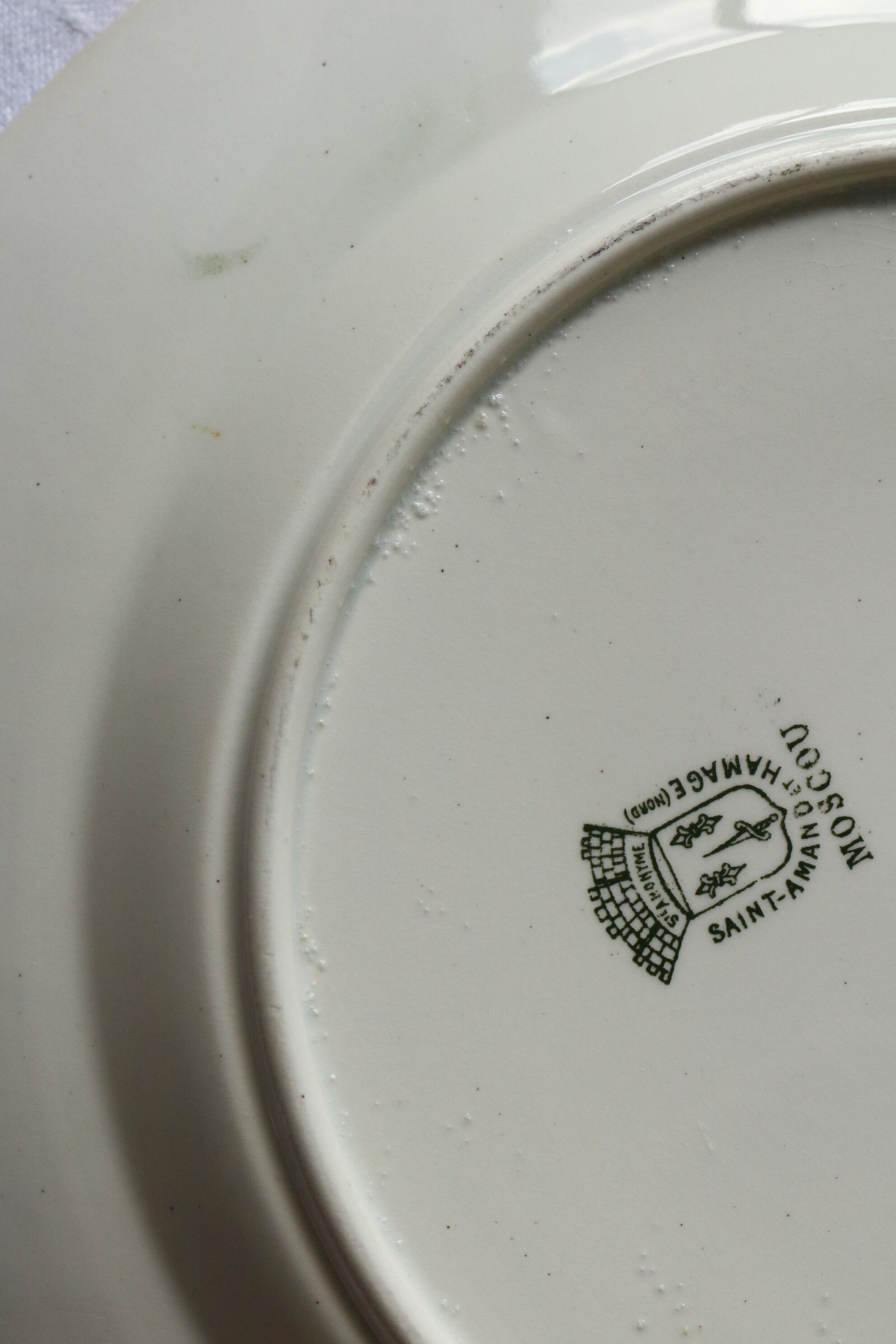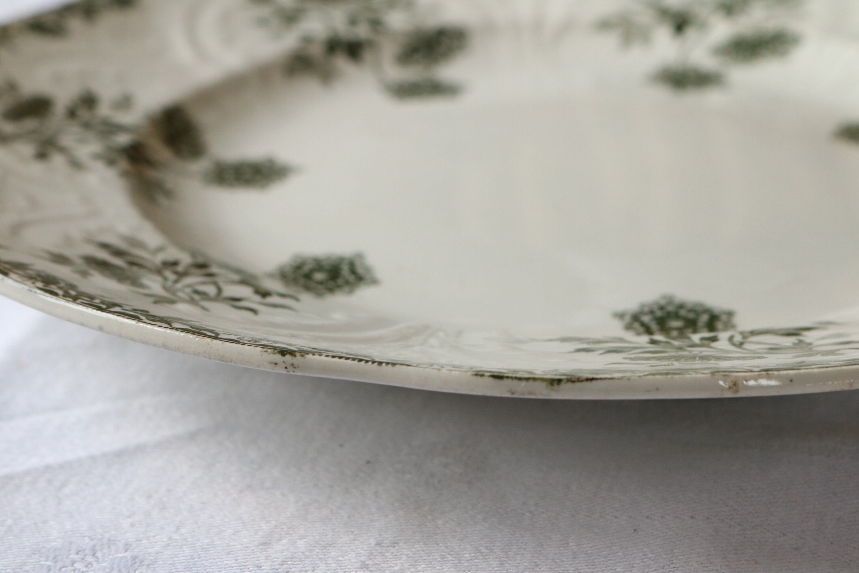 Saint amand レリーフ 大きめ モスグリーン プレート フランス アンティーク