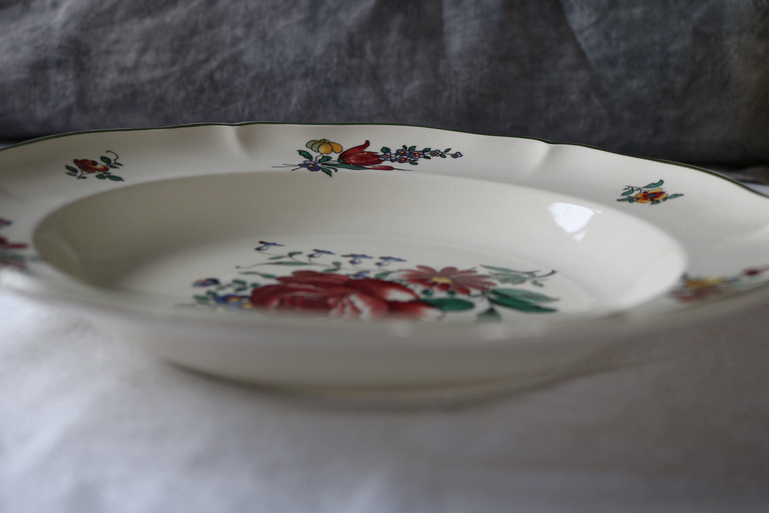 フランスブロカント、アンティーク、ブロカントプレート、食器、お皿、インテリア、ファイアンス、蚤の市、南仏、ディゴワン、深皿、平皿、サルグミンヌ、サンタマン、st amand、longwy