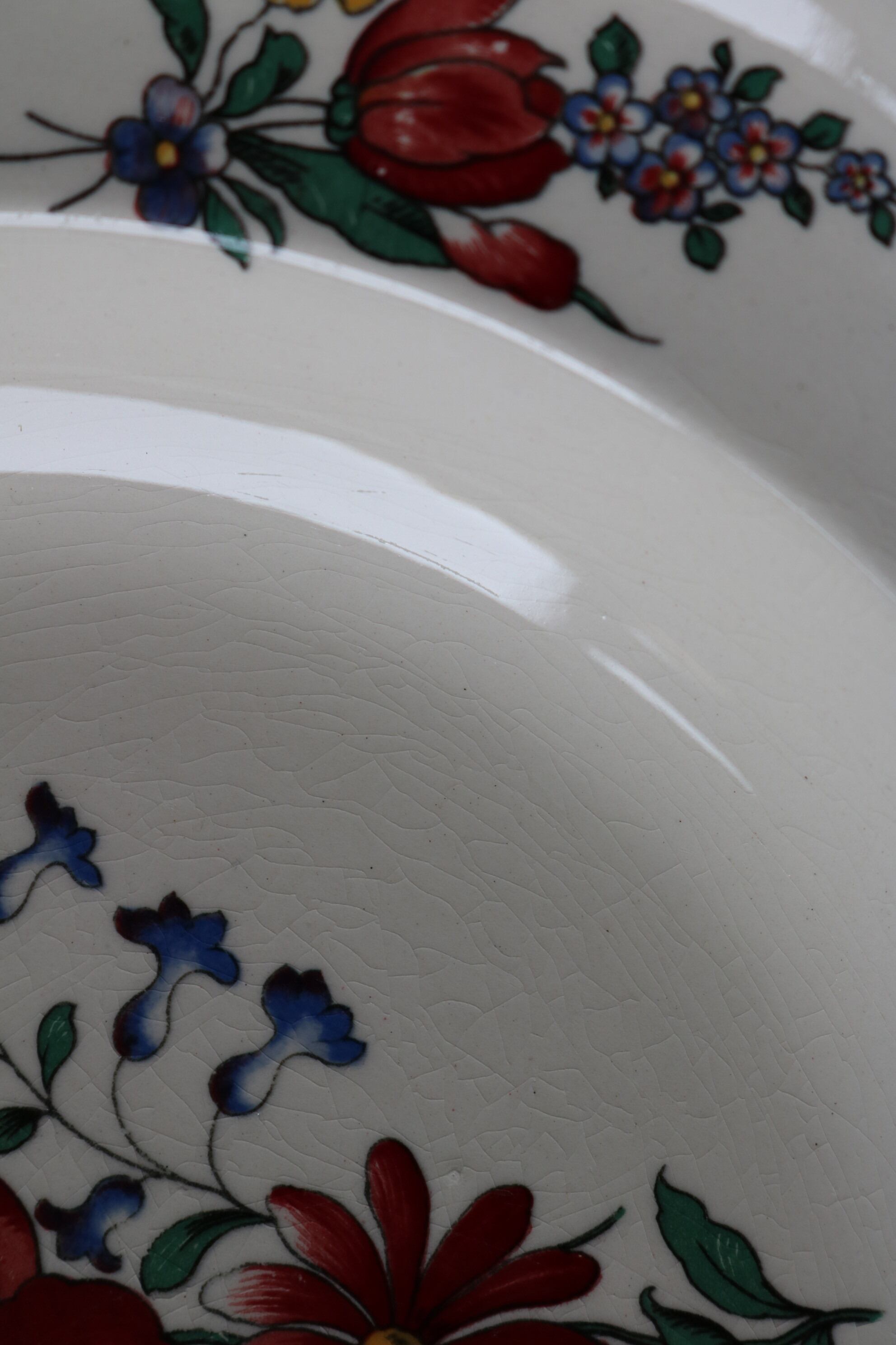 貫入、カトラリー跡、小傷、絵柄の飛びや滲み