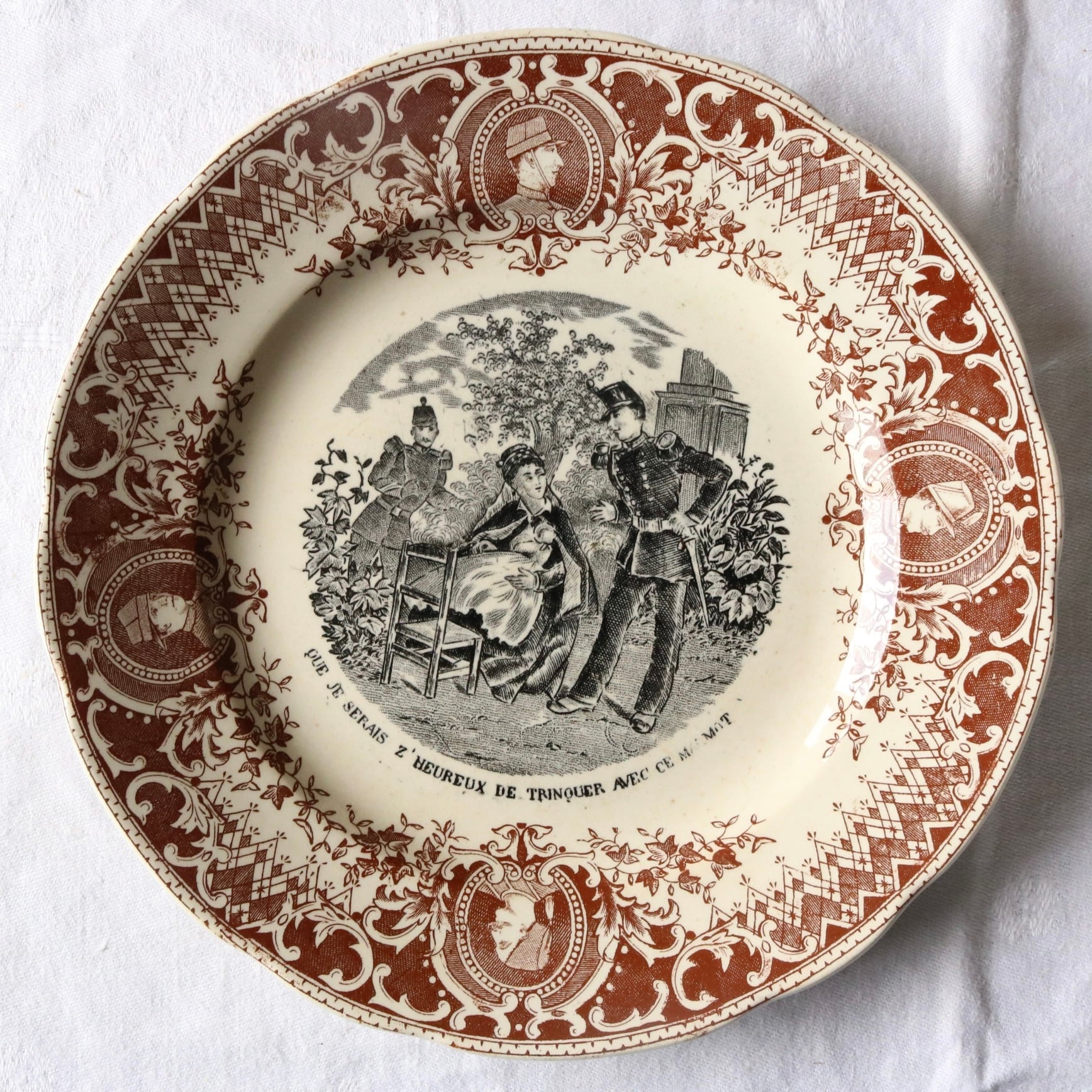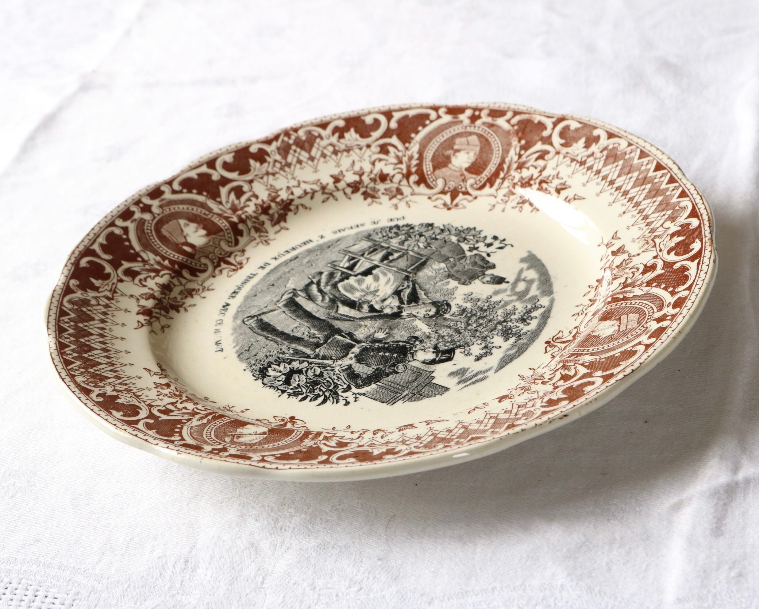 Pexonne トーキングプレート セピア 花リム フランス プレート