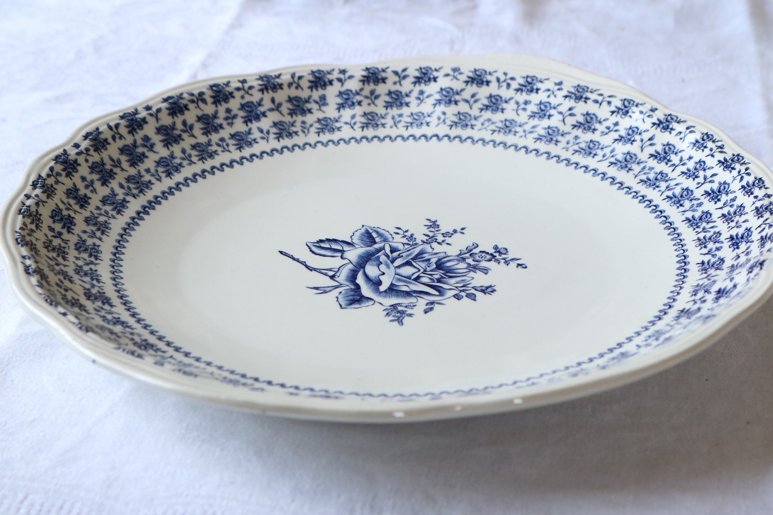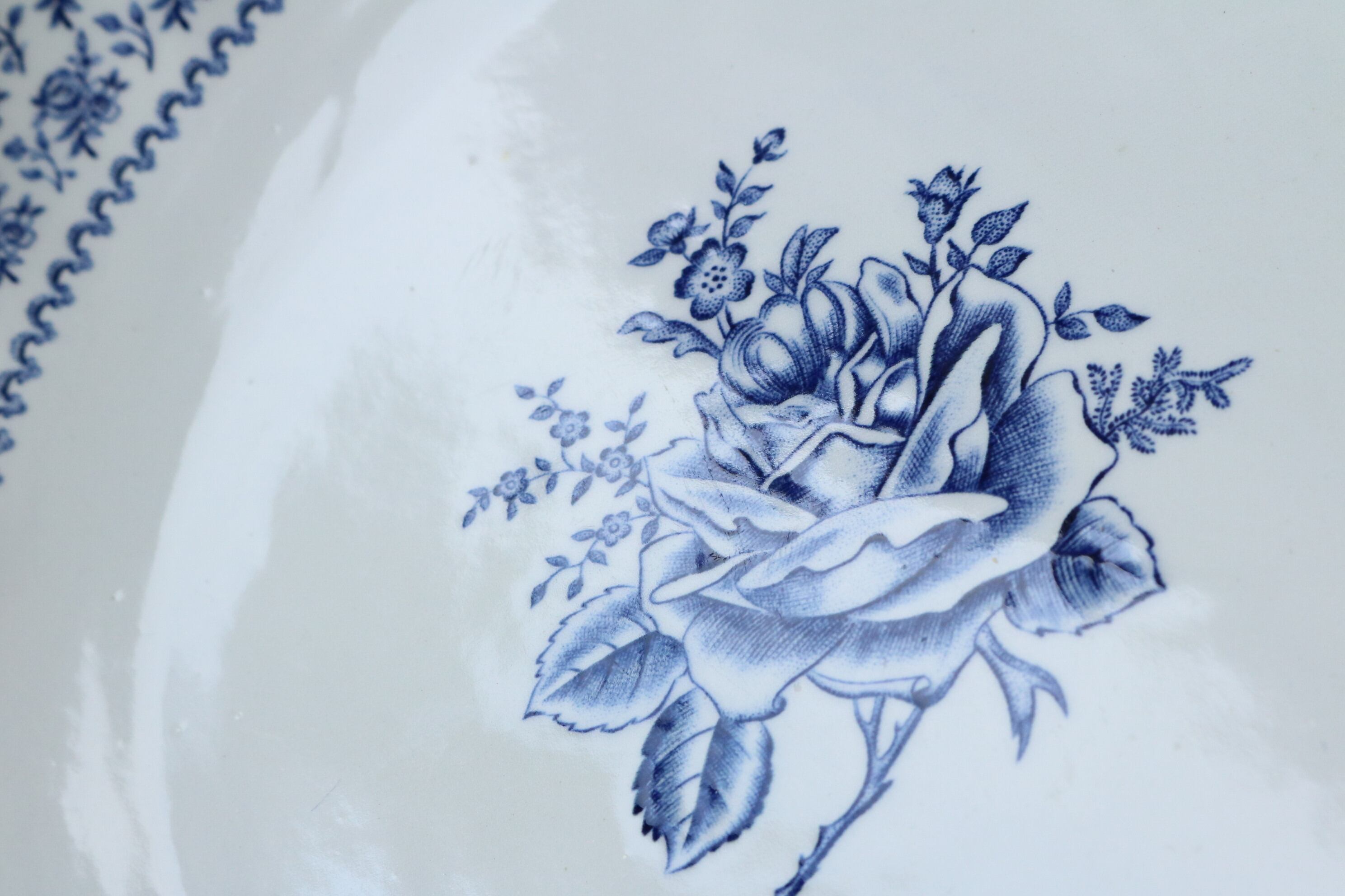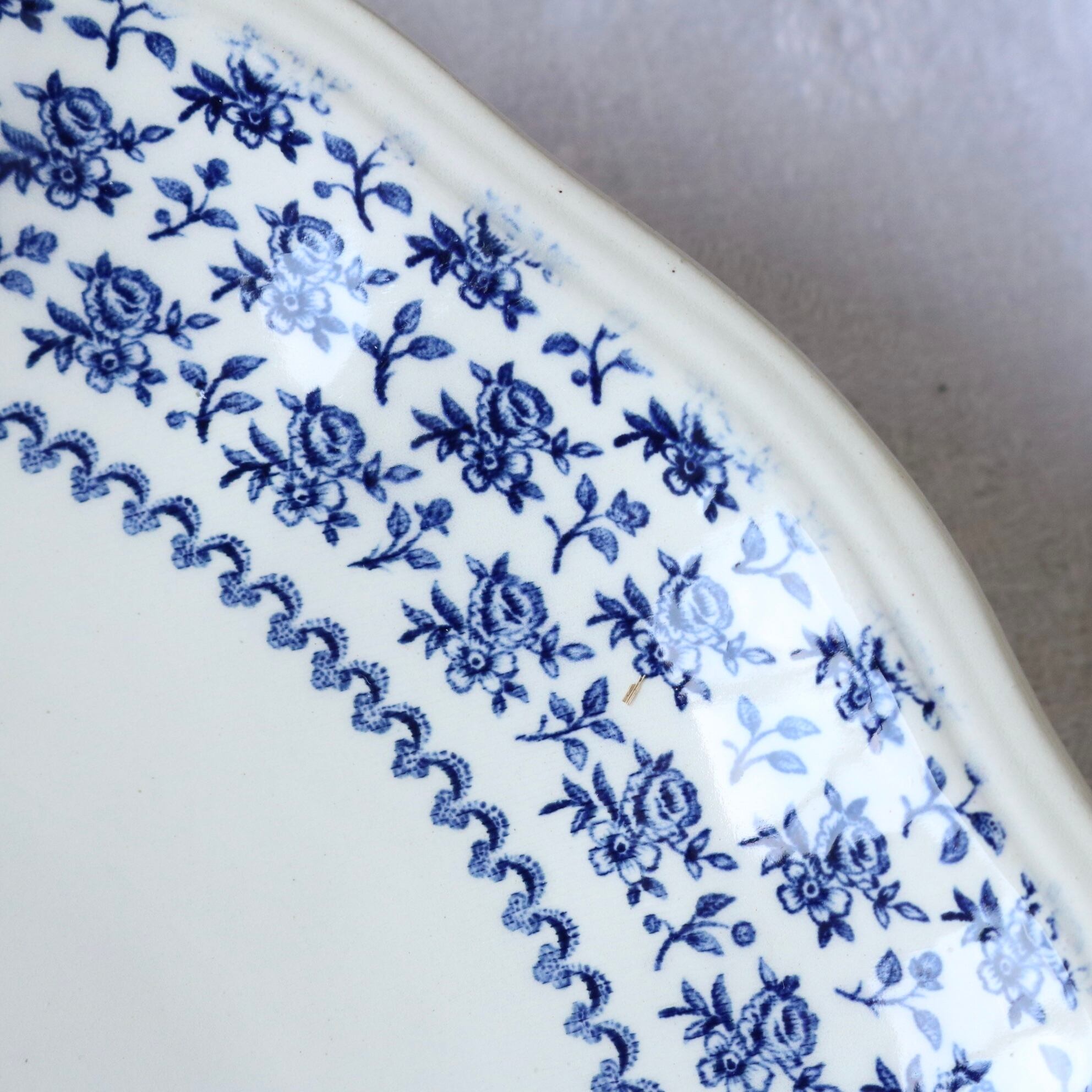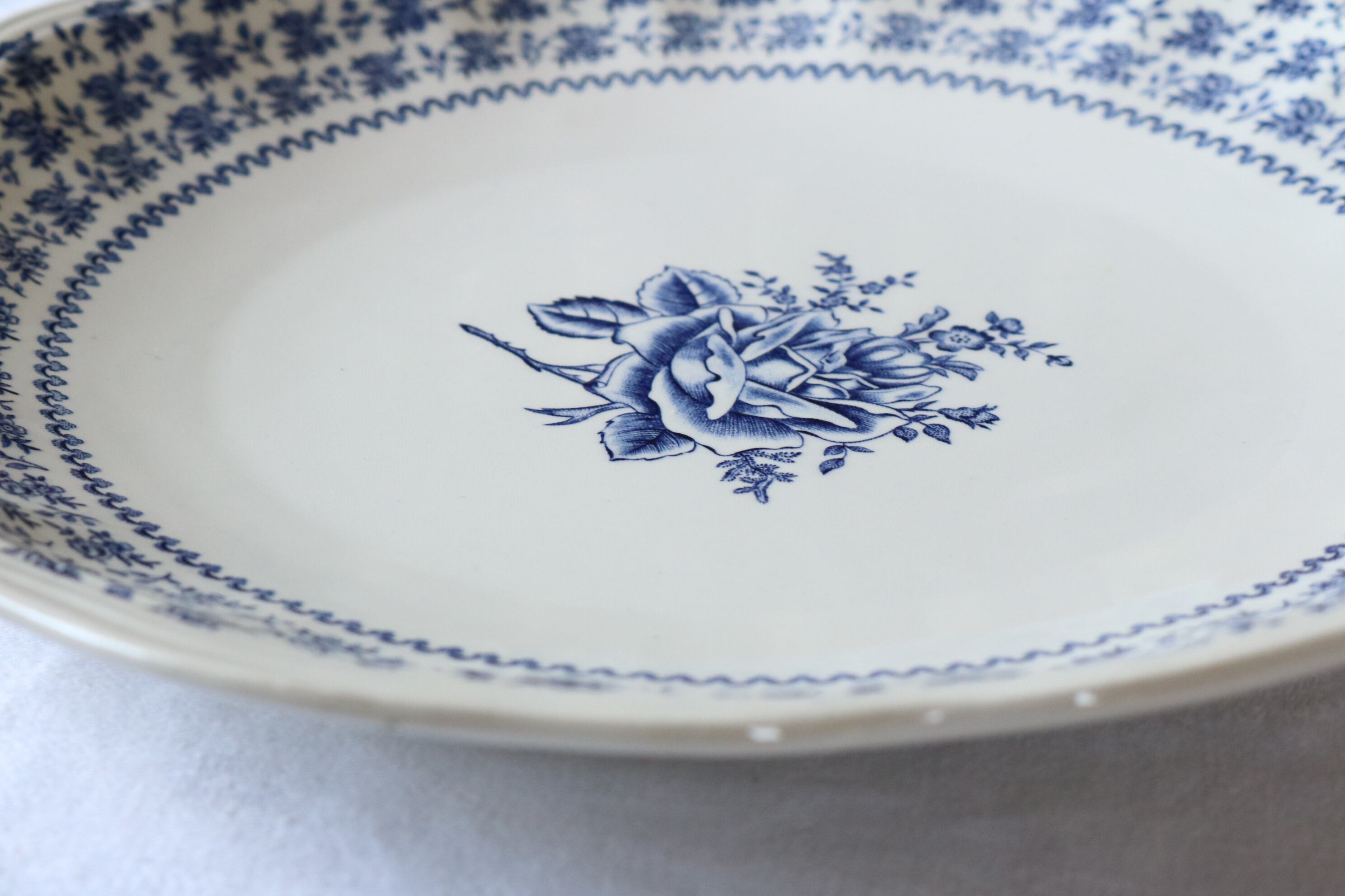 【大皿】29cm ケーキプレート Luneville English style 薔薇 藍色 フランス アンティーク デザート プレート A