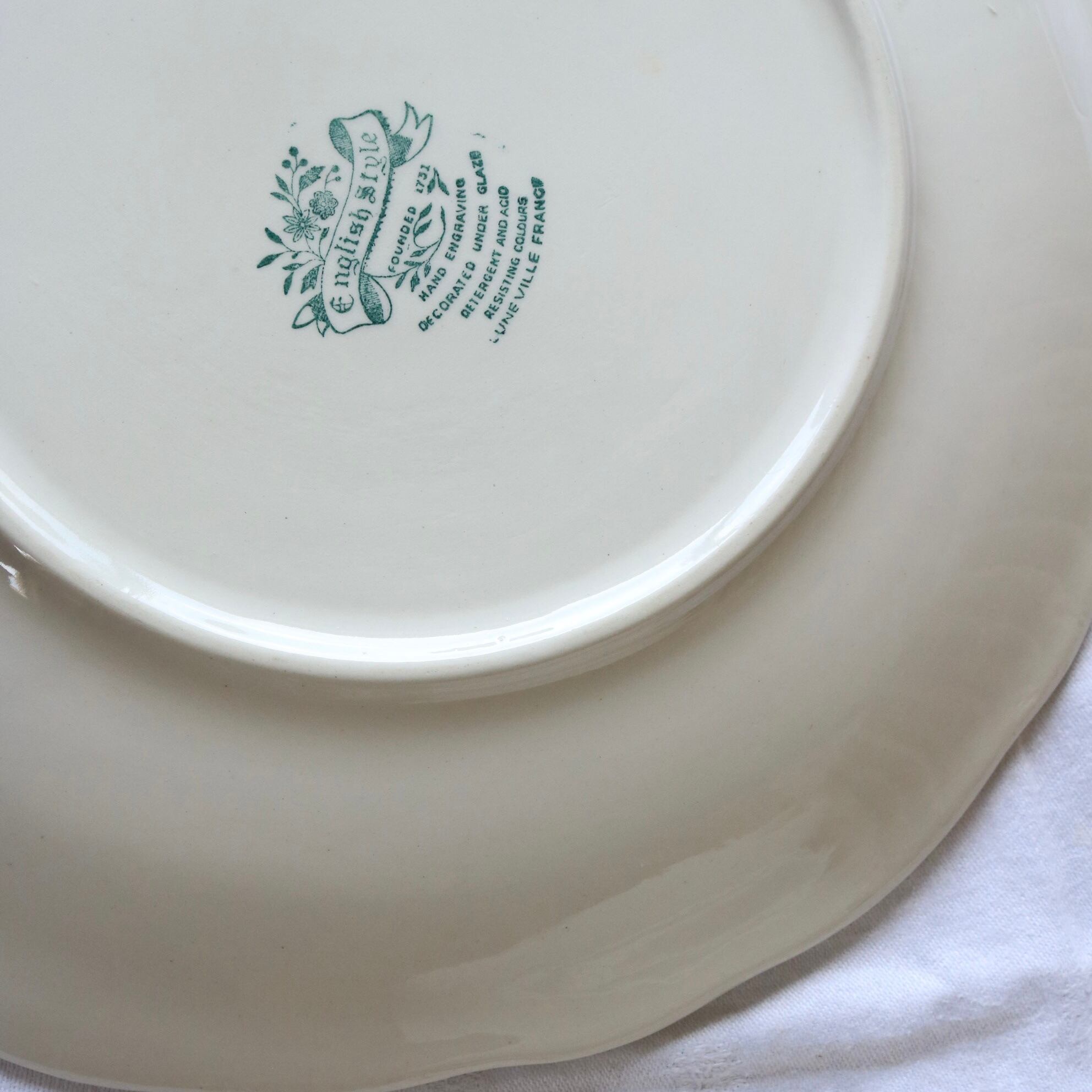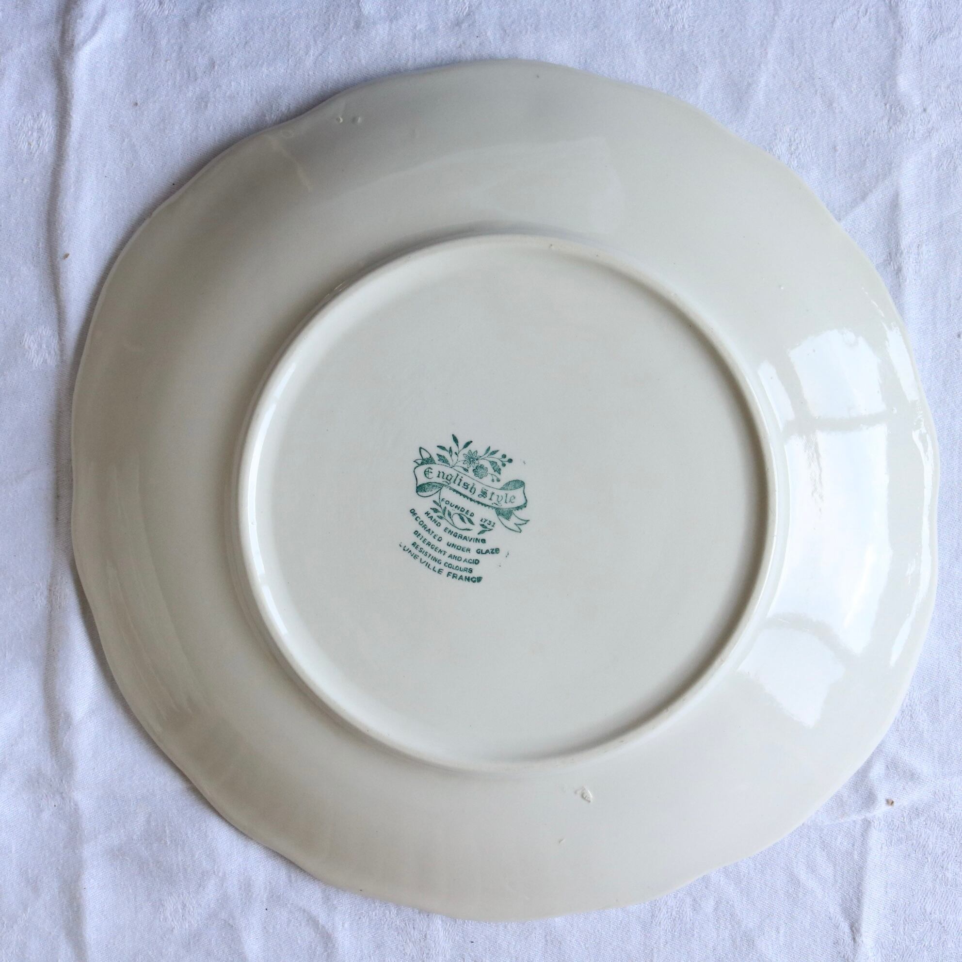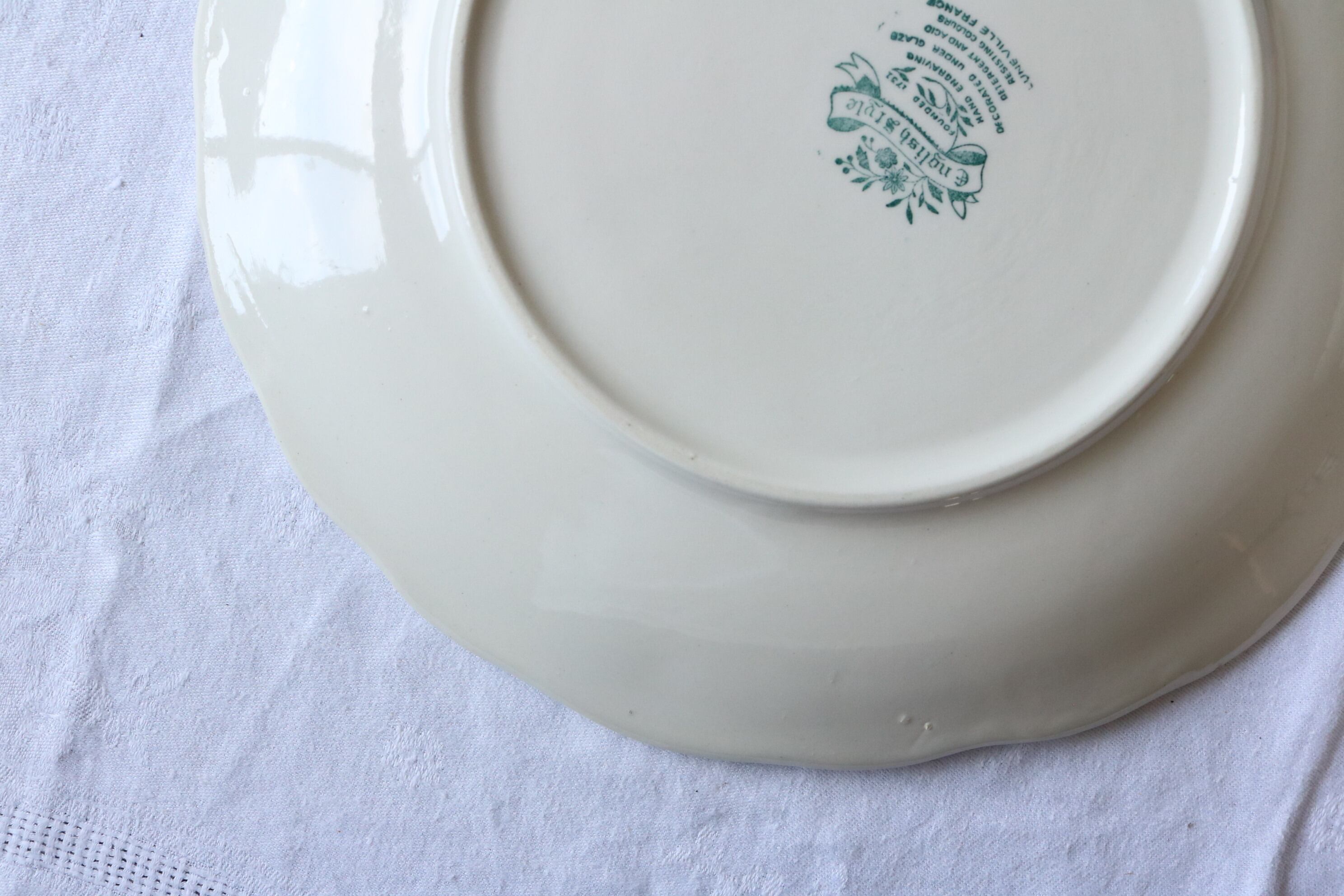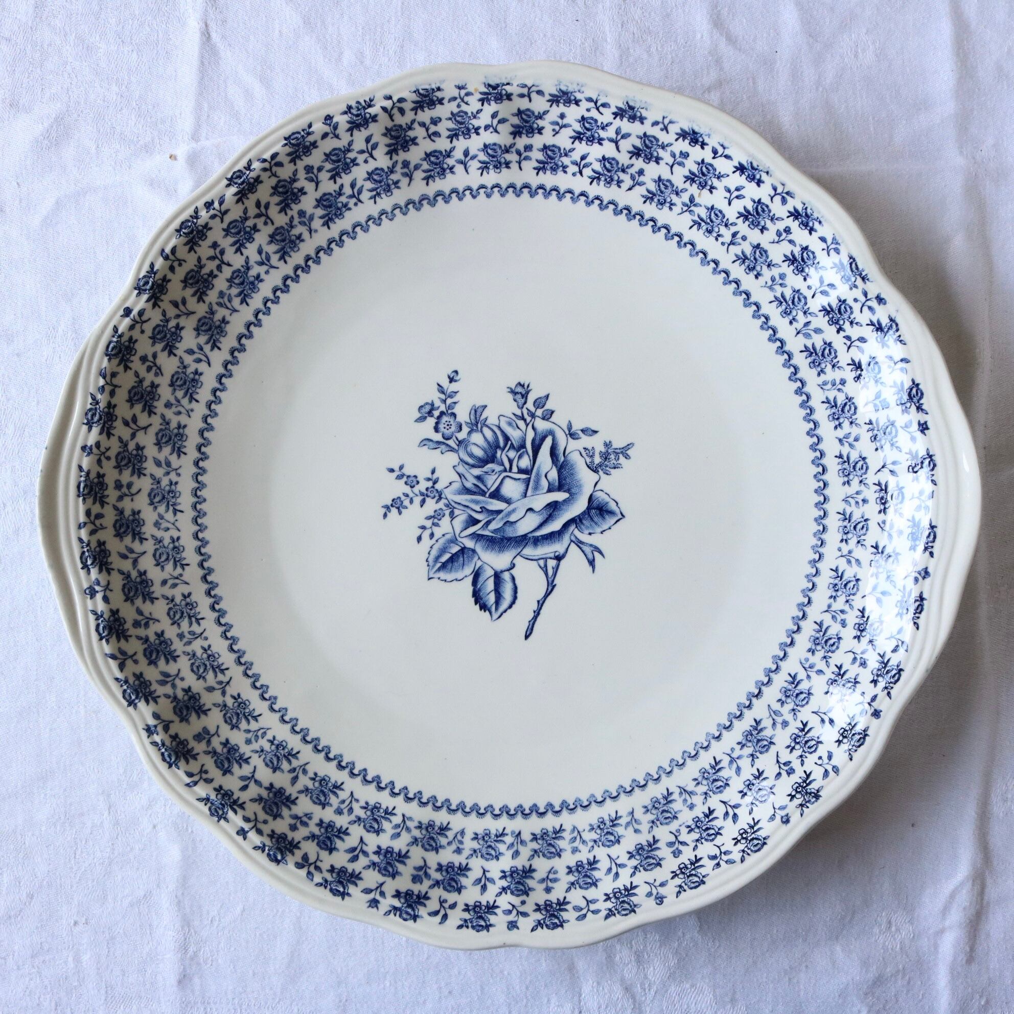 【大皿】29cm ケーキプレート Luneville English style 薔薇 藍色 フランス アンティーク デザート プレート A