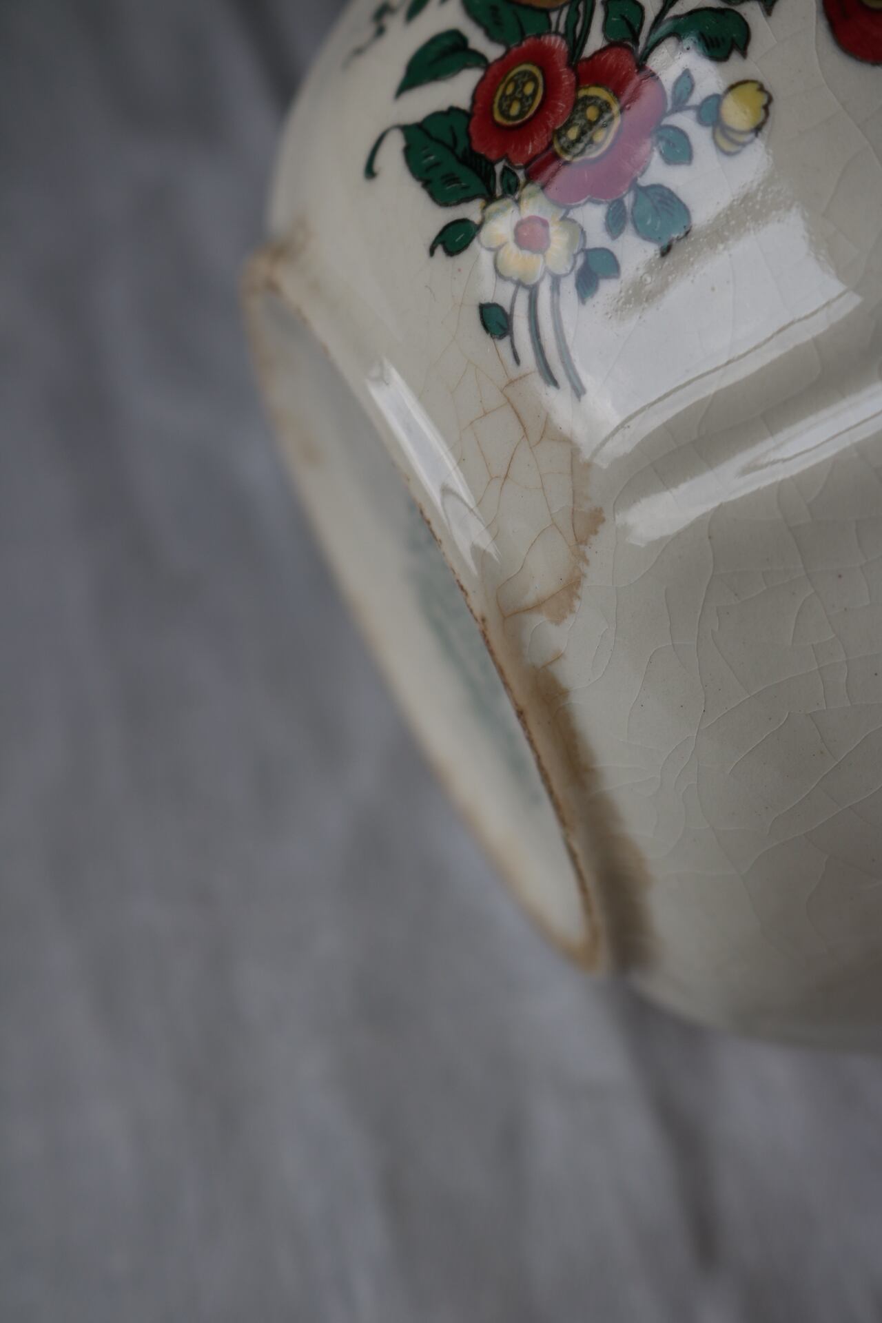 貫入、カトラリー跡、小傷、絵柄の飛びや滲み