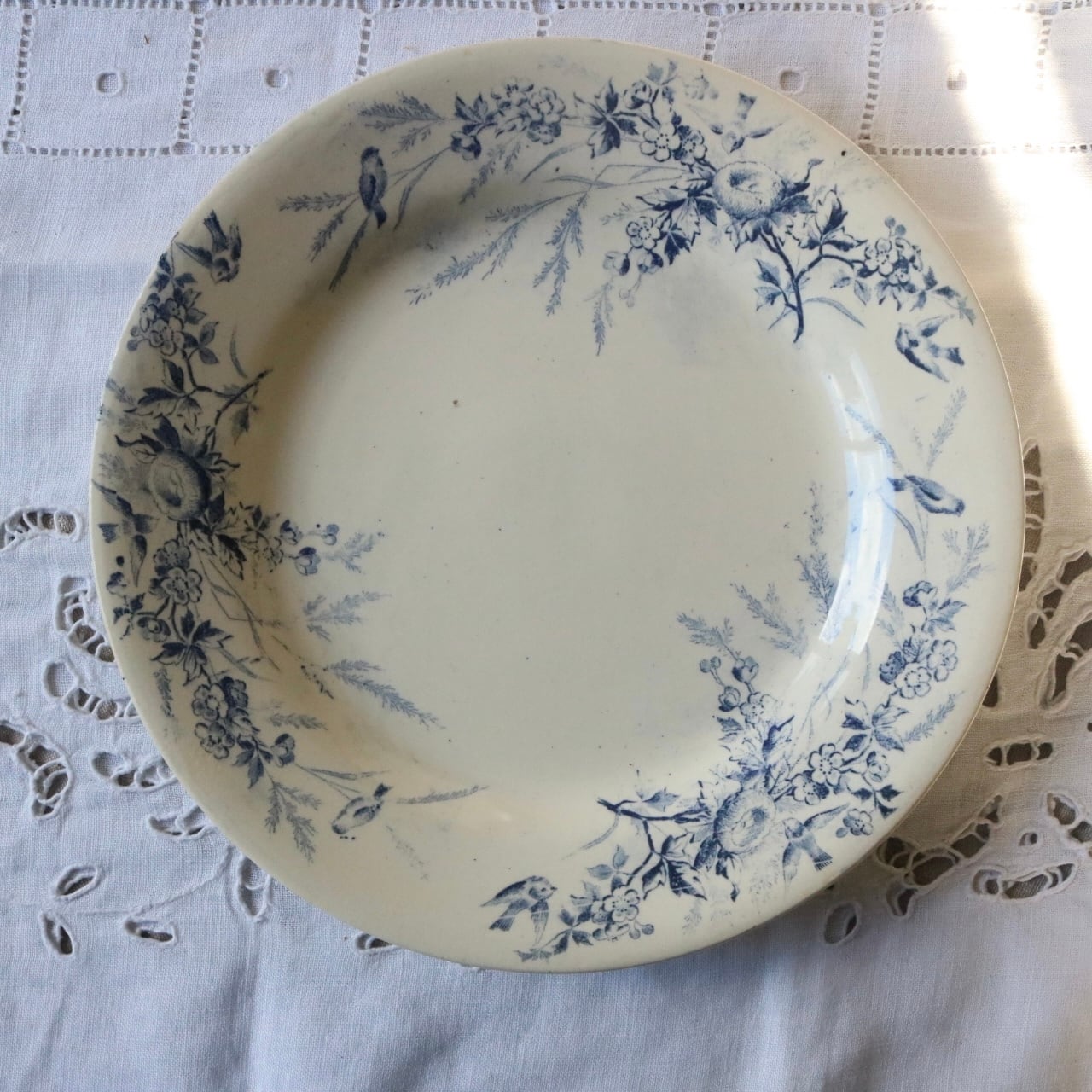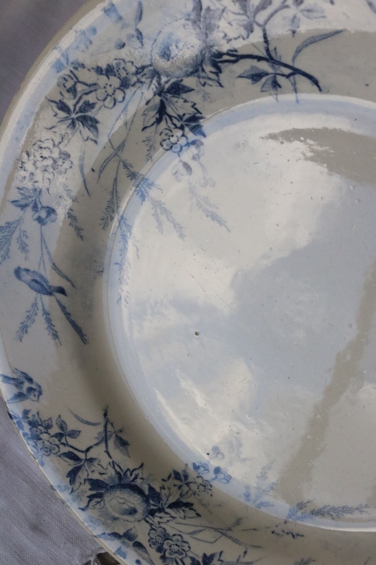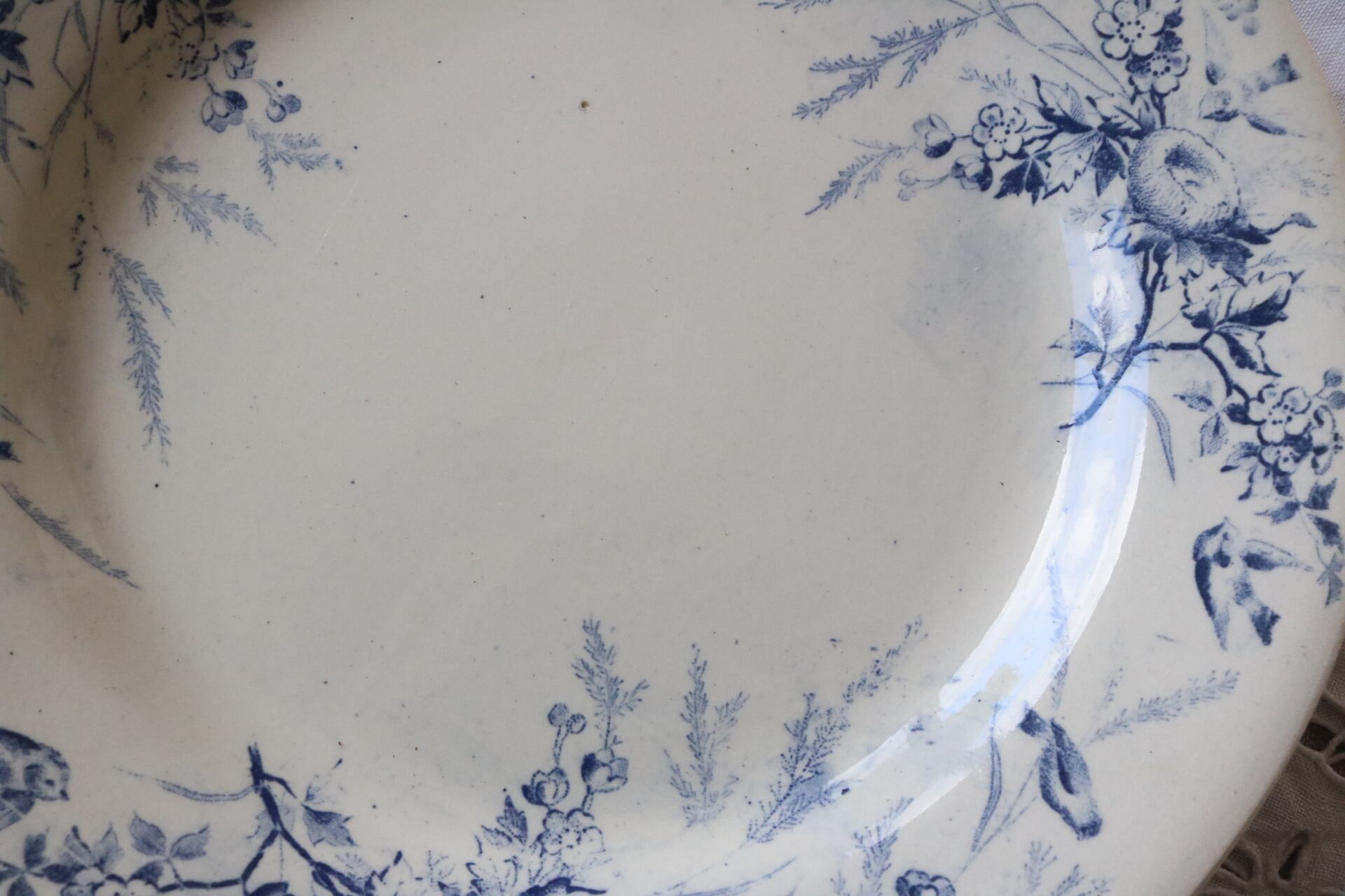 Creil et montereau プレート linotte ヒワ ブルー グレーがかった