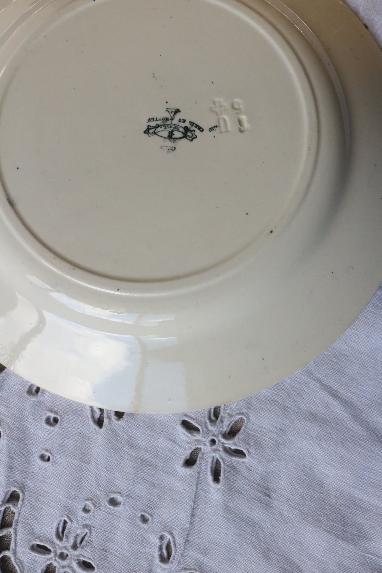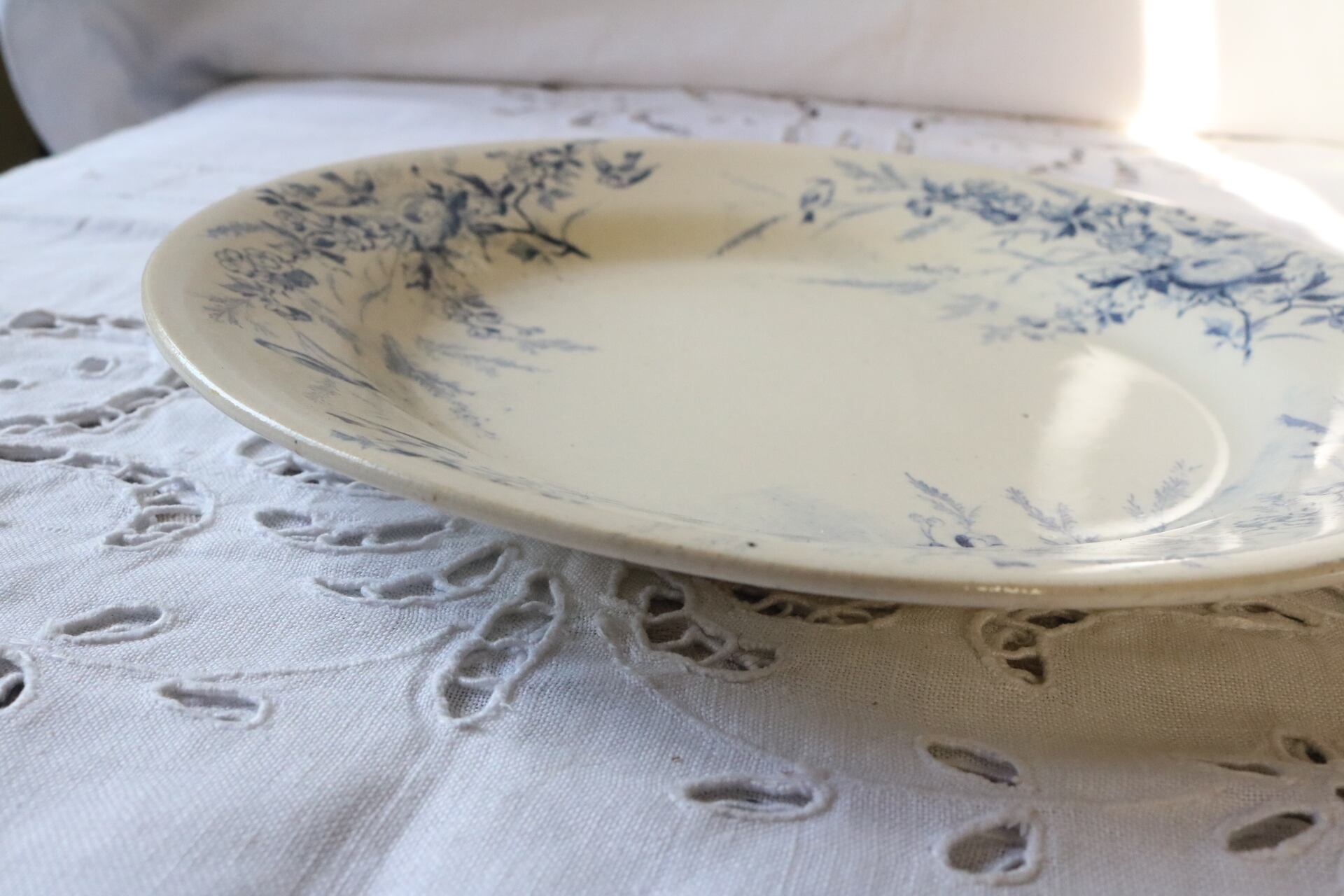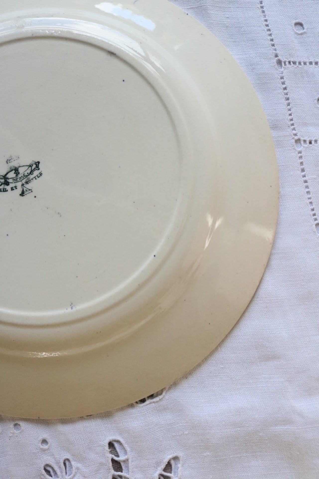 Creil et montereau プレート linotte ヒワ ブルー グレーがかった