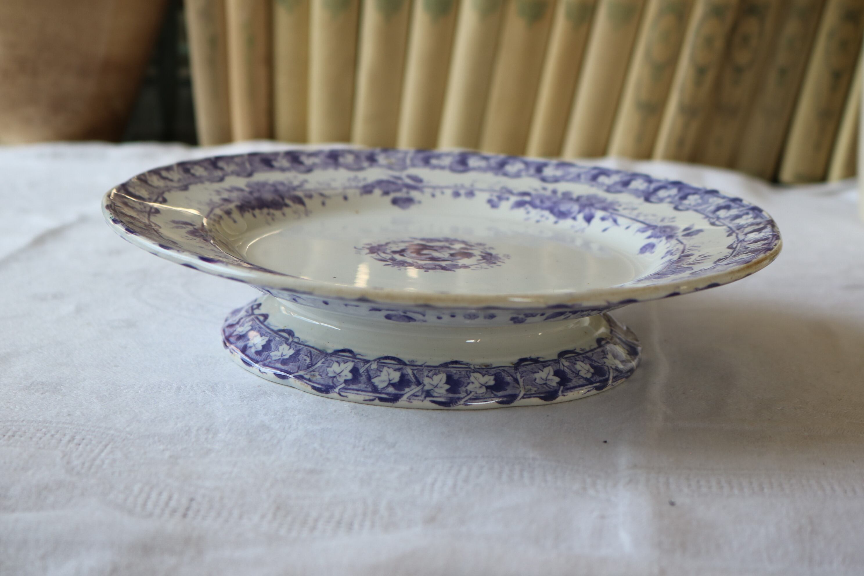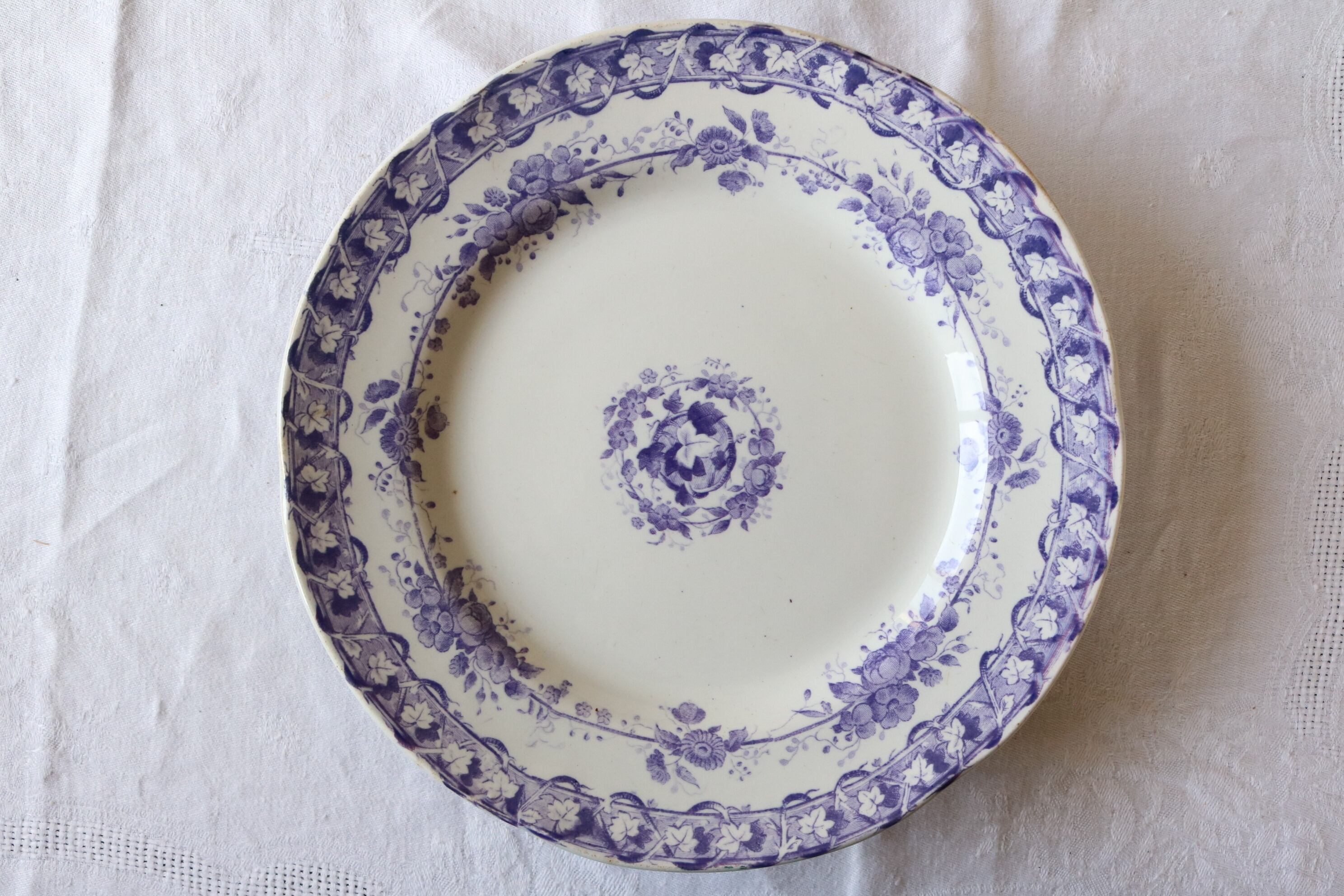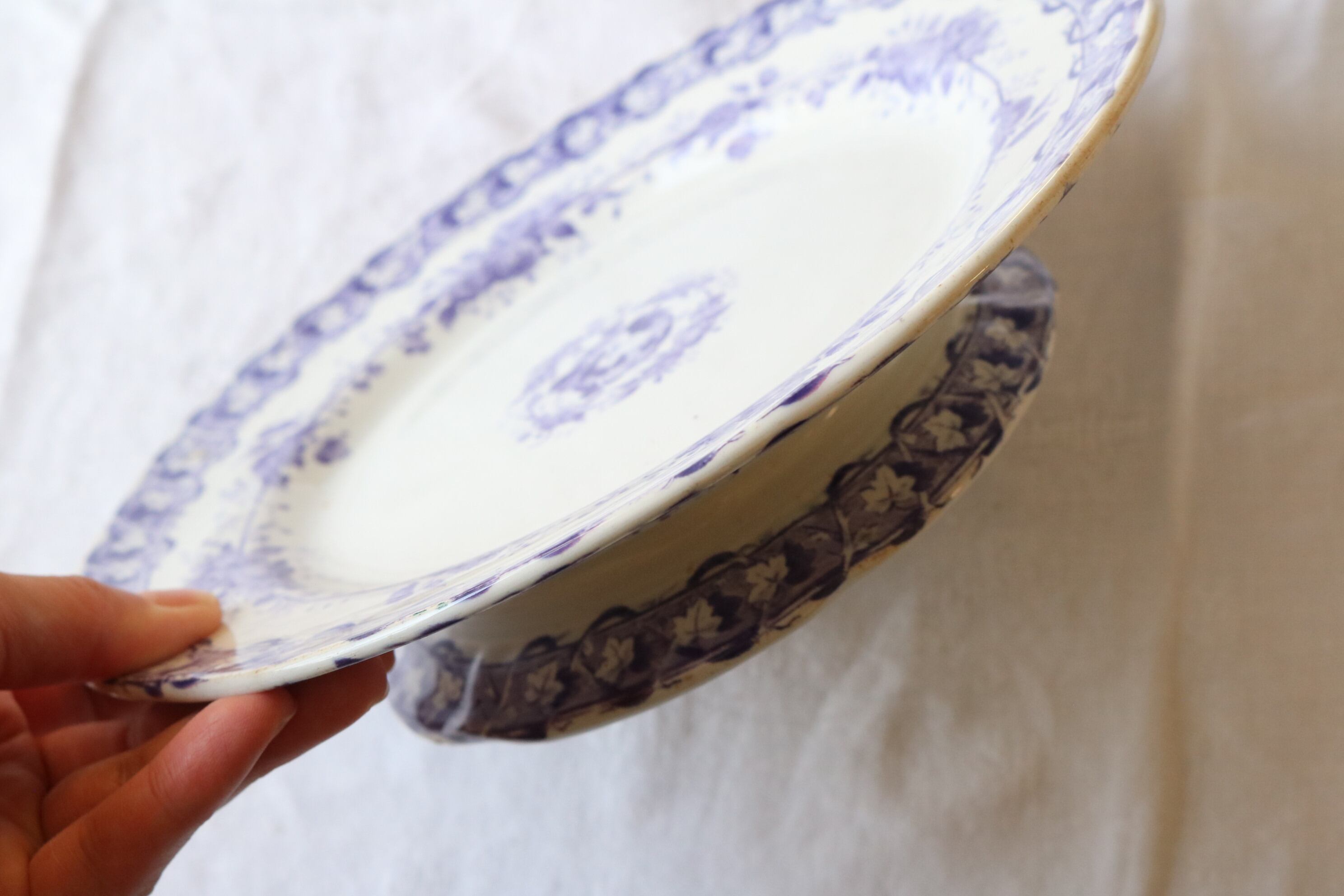Creil montereau ラベンダーカラー ボタニカル ケーキプレート フランス アンティーク