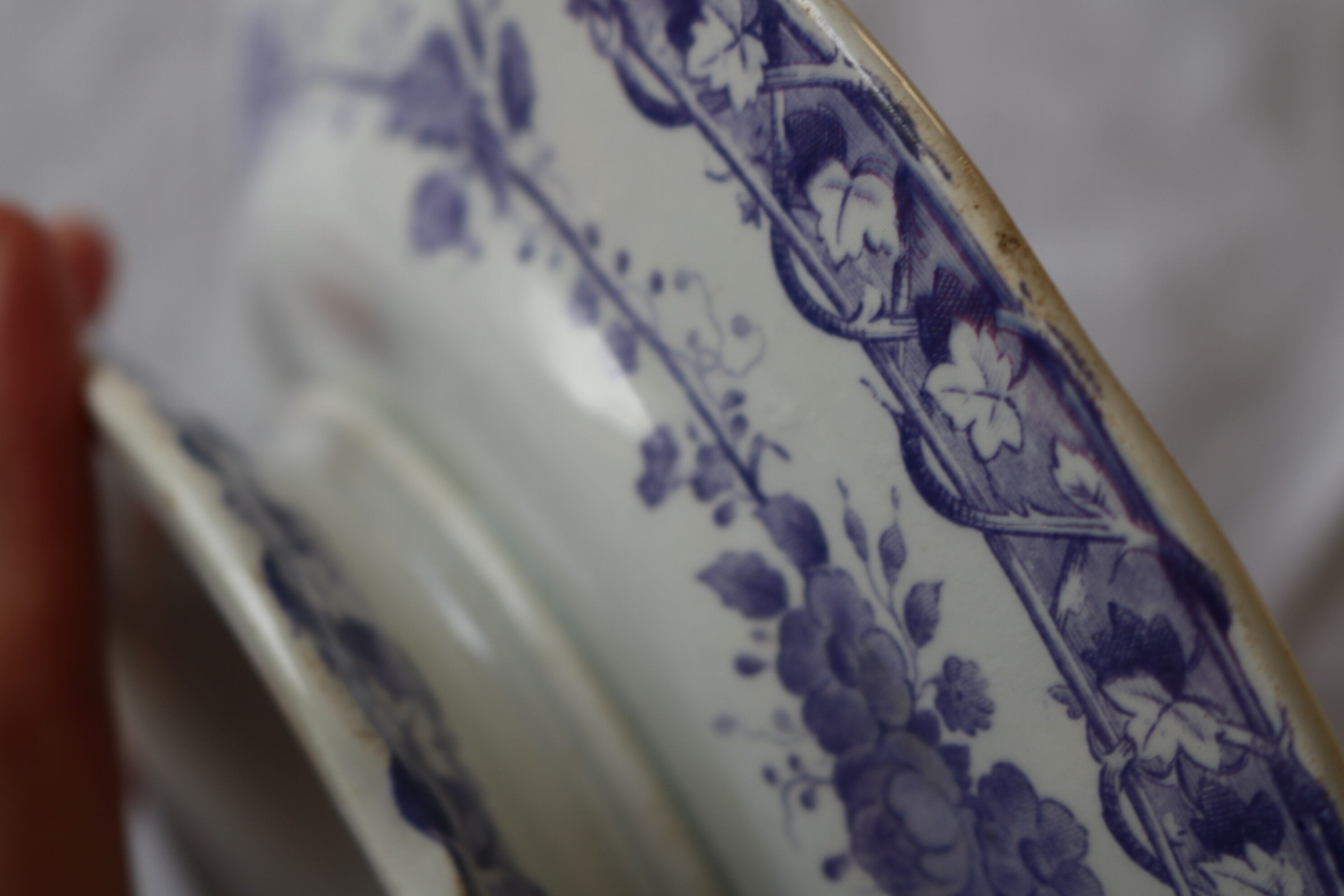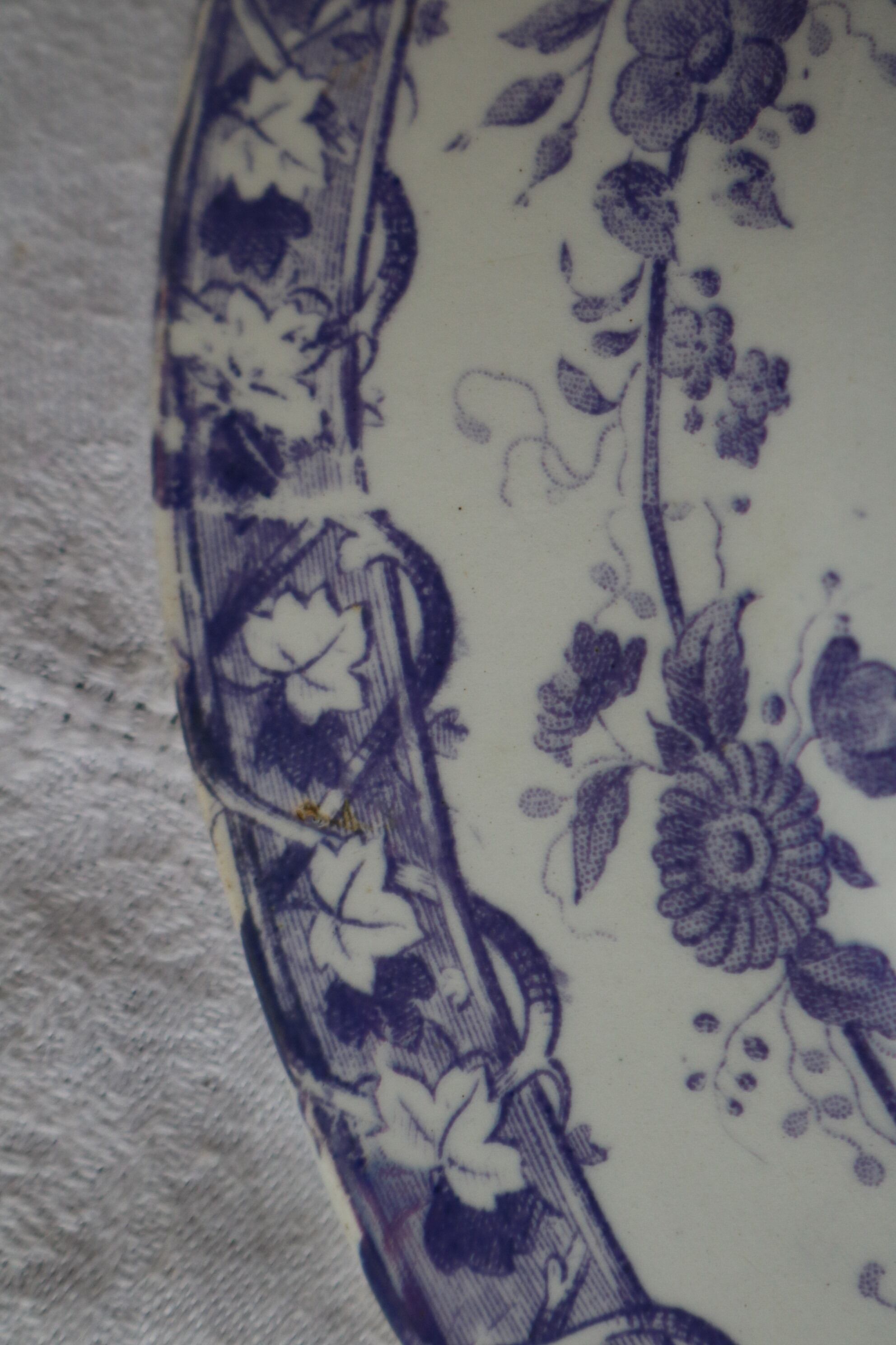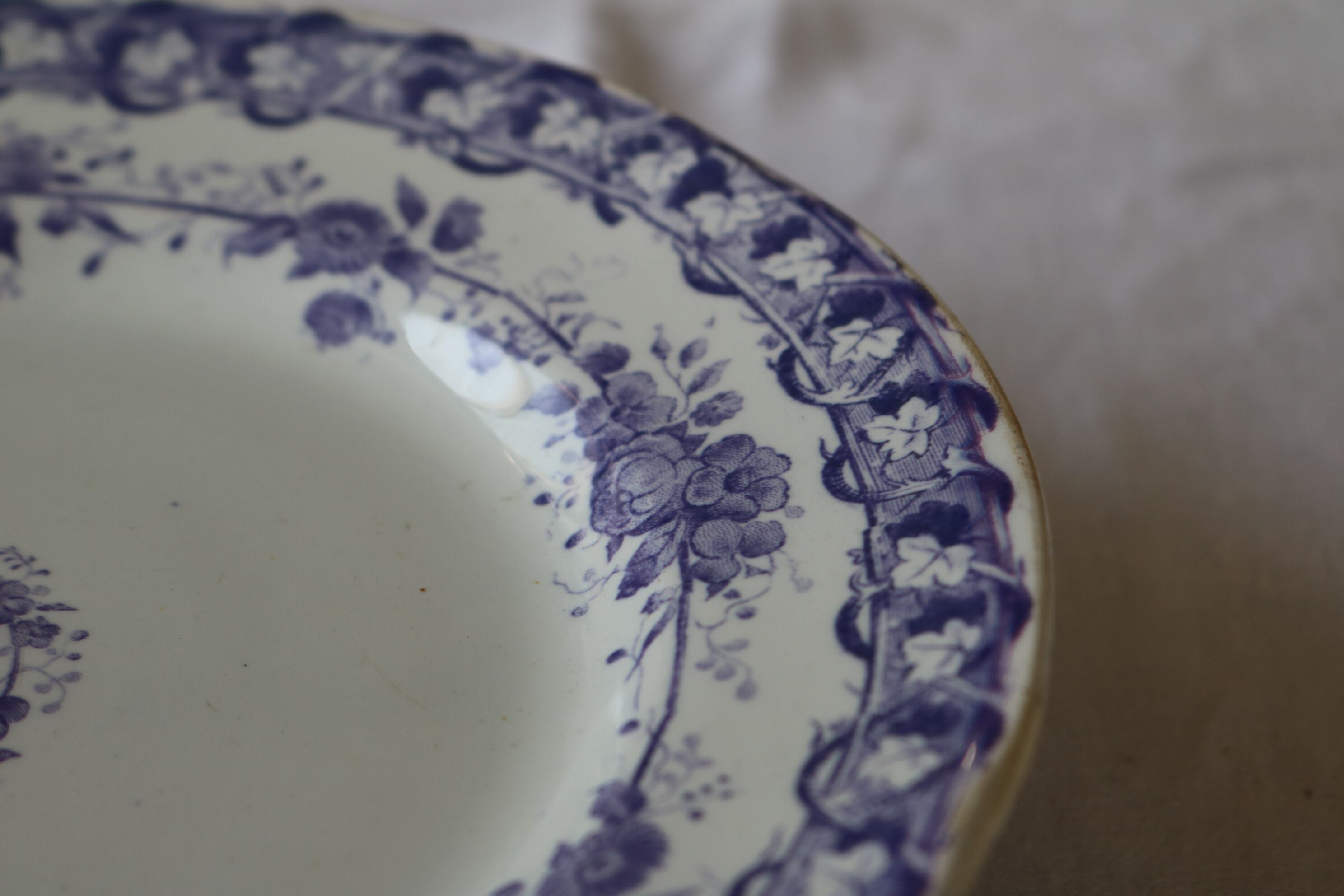 Creil montereau ラベンダーカラー ボタニカル ケーキプレート フランス アンティーク