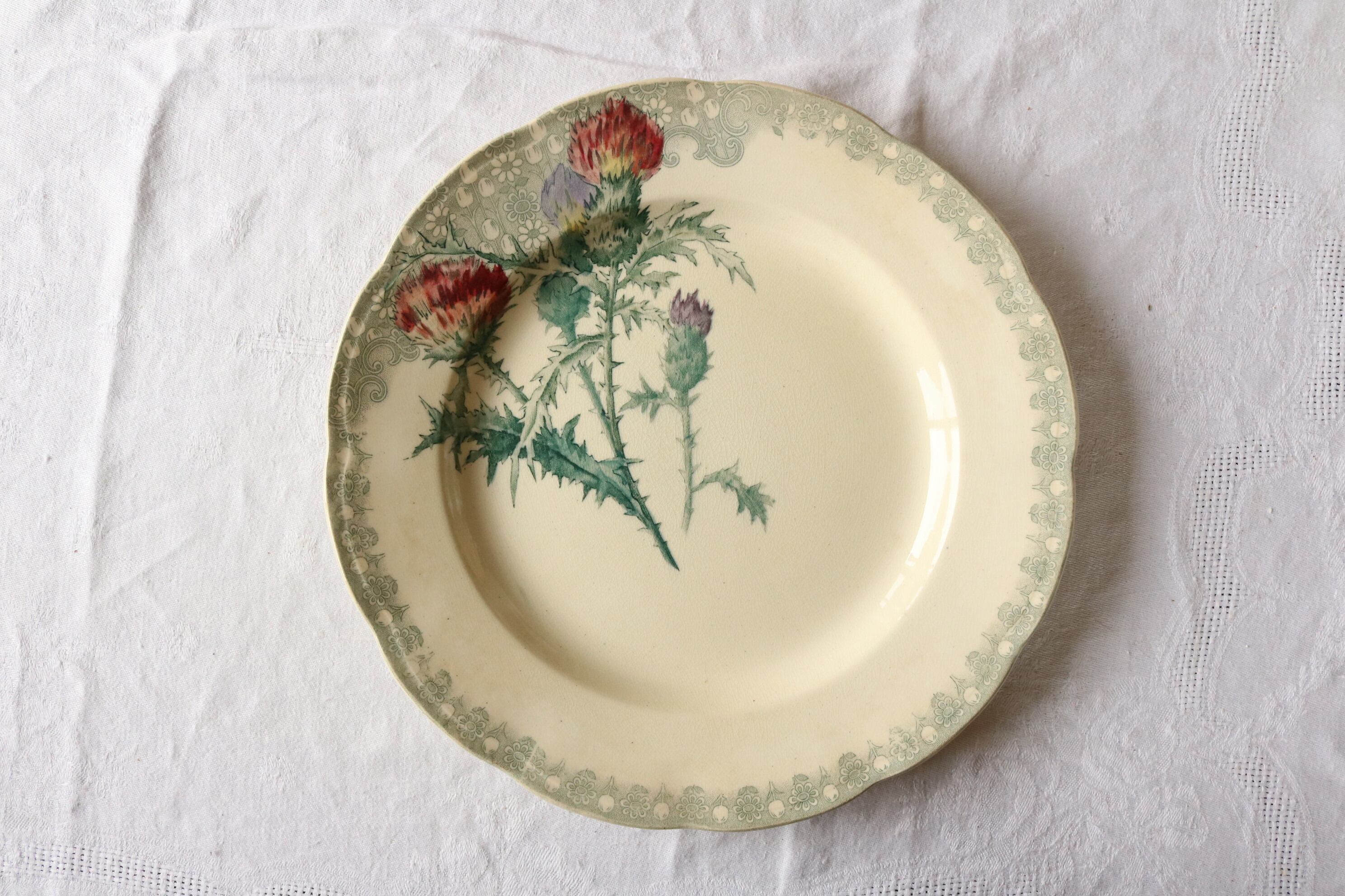 Émile bourgeois あざみ 多彩刷り プレート フランス アンティーク ボタニカル