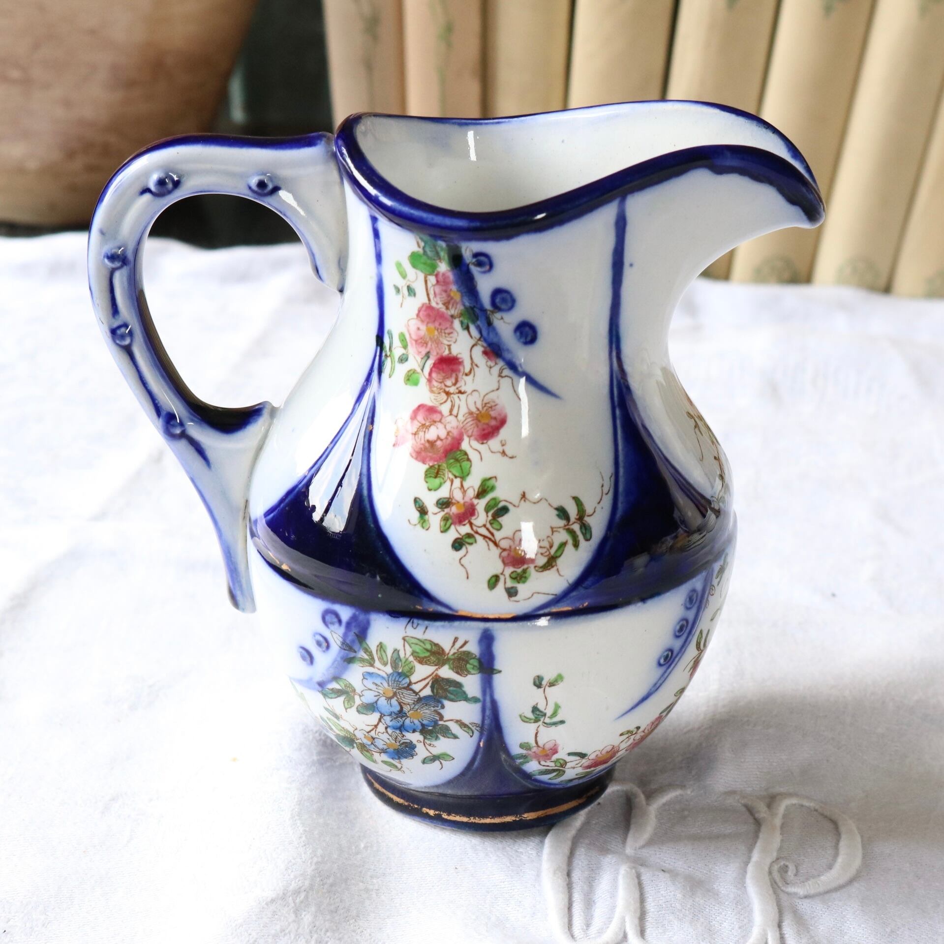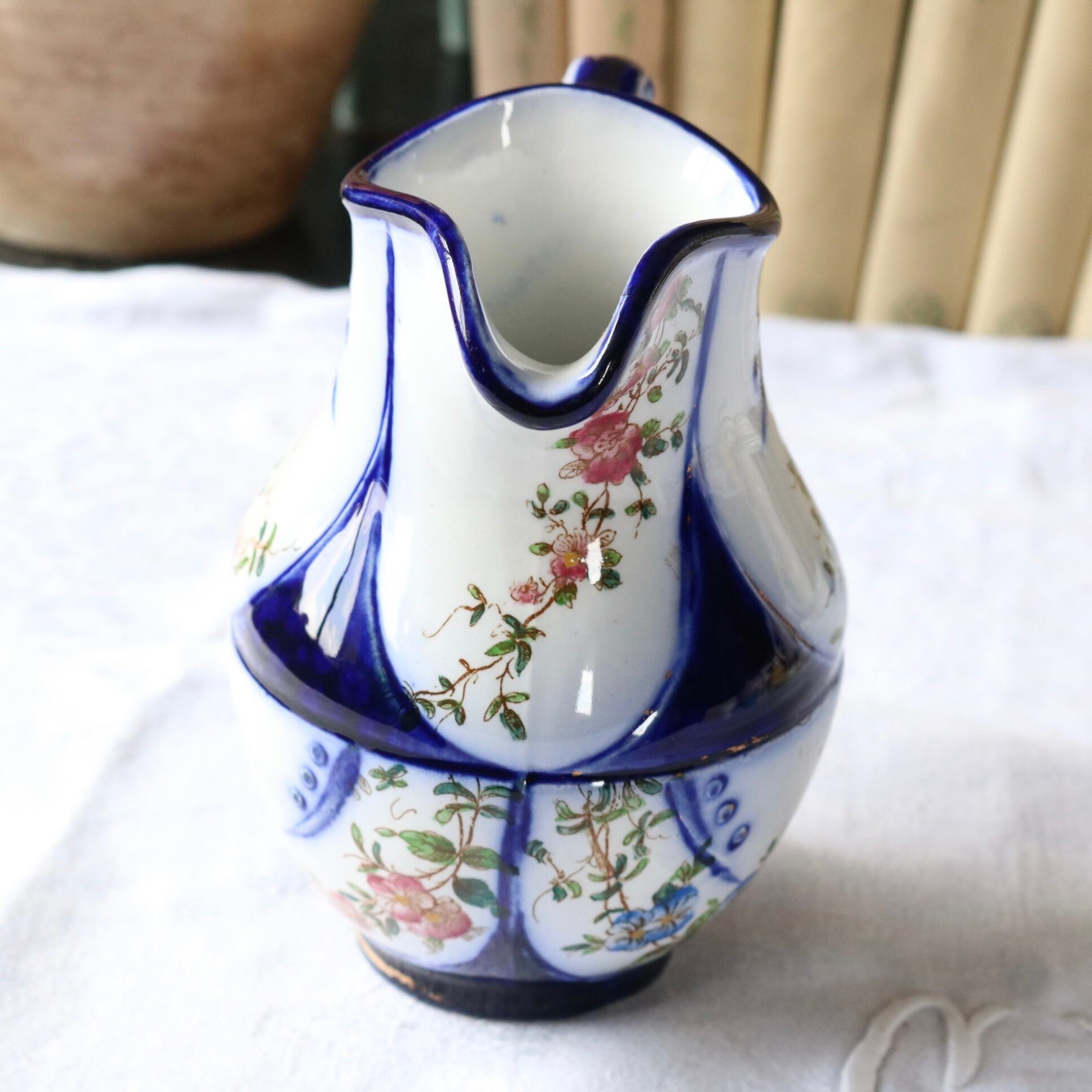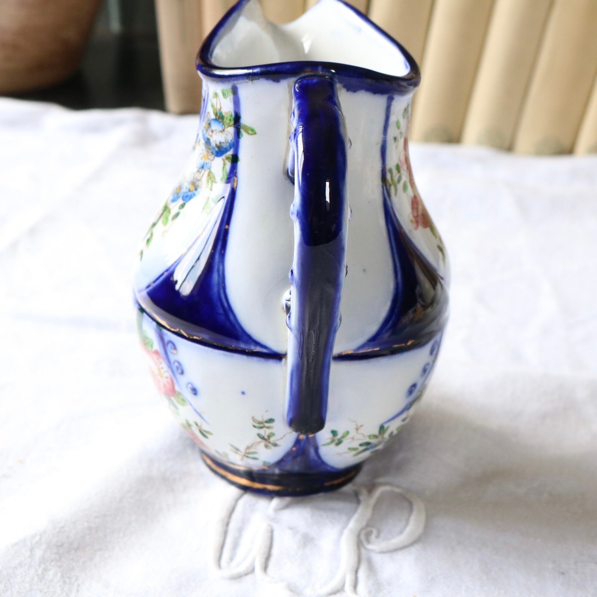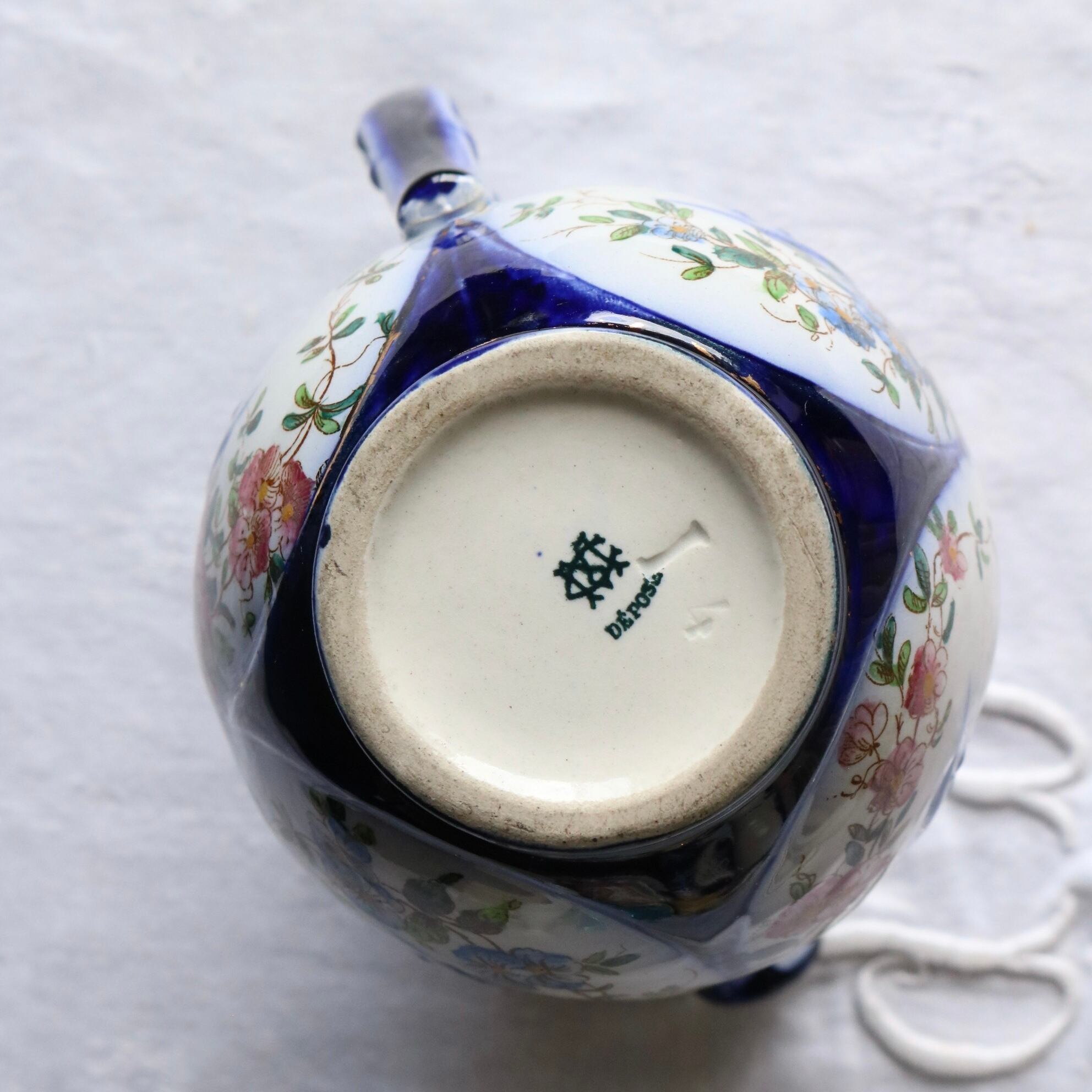Creil montereau ミルクピッチャー 多彩刷り レリーフ フランス アンティーク ボタニカル