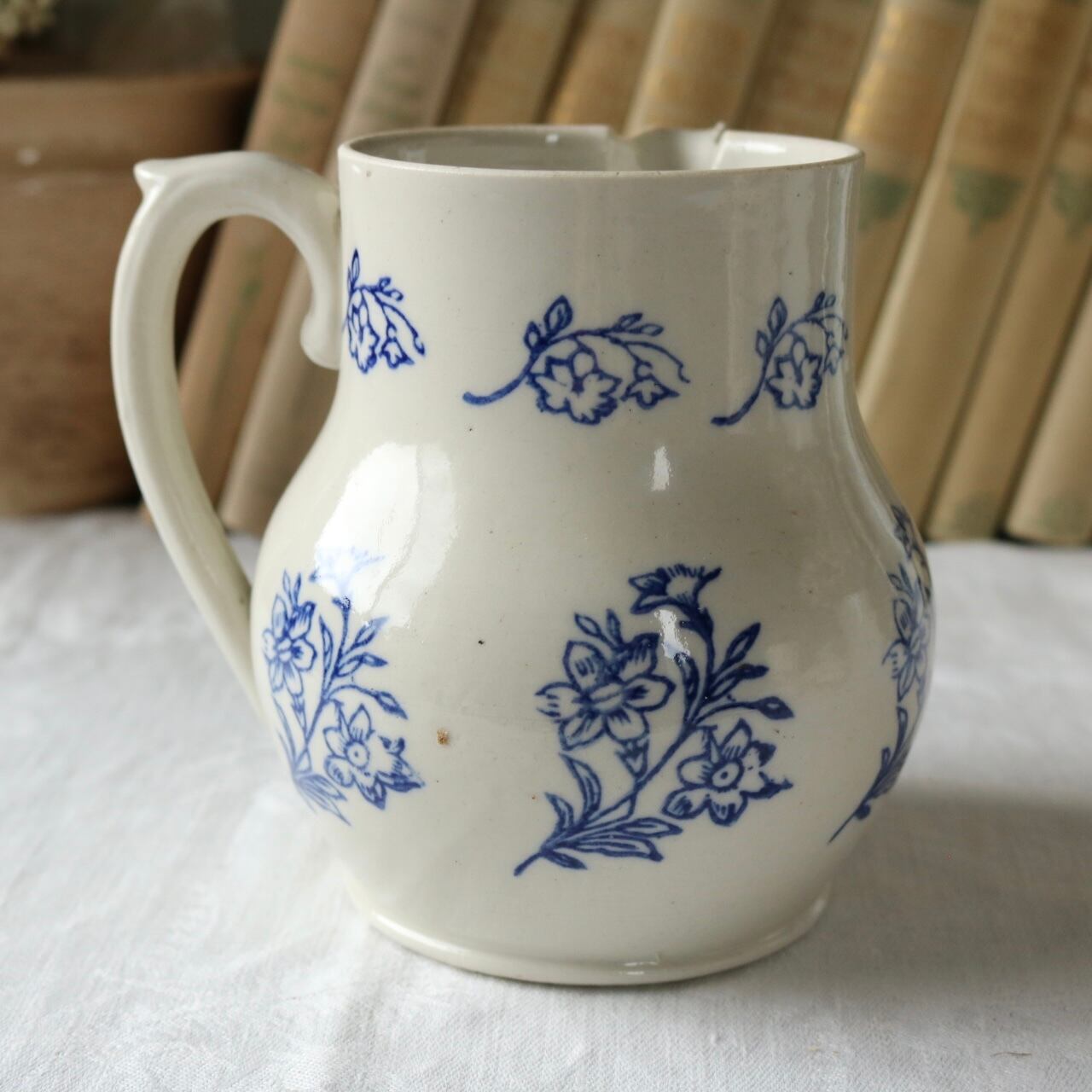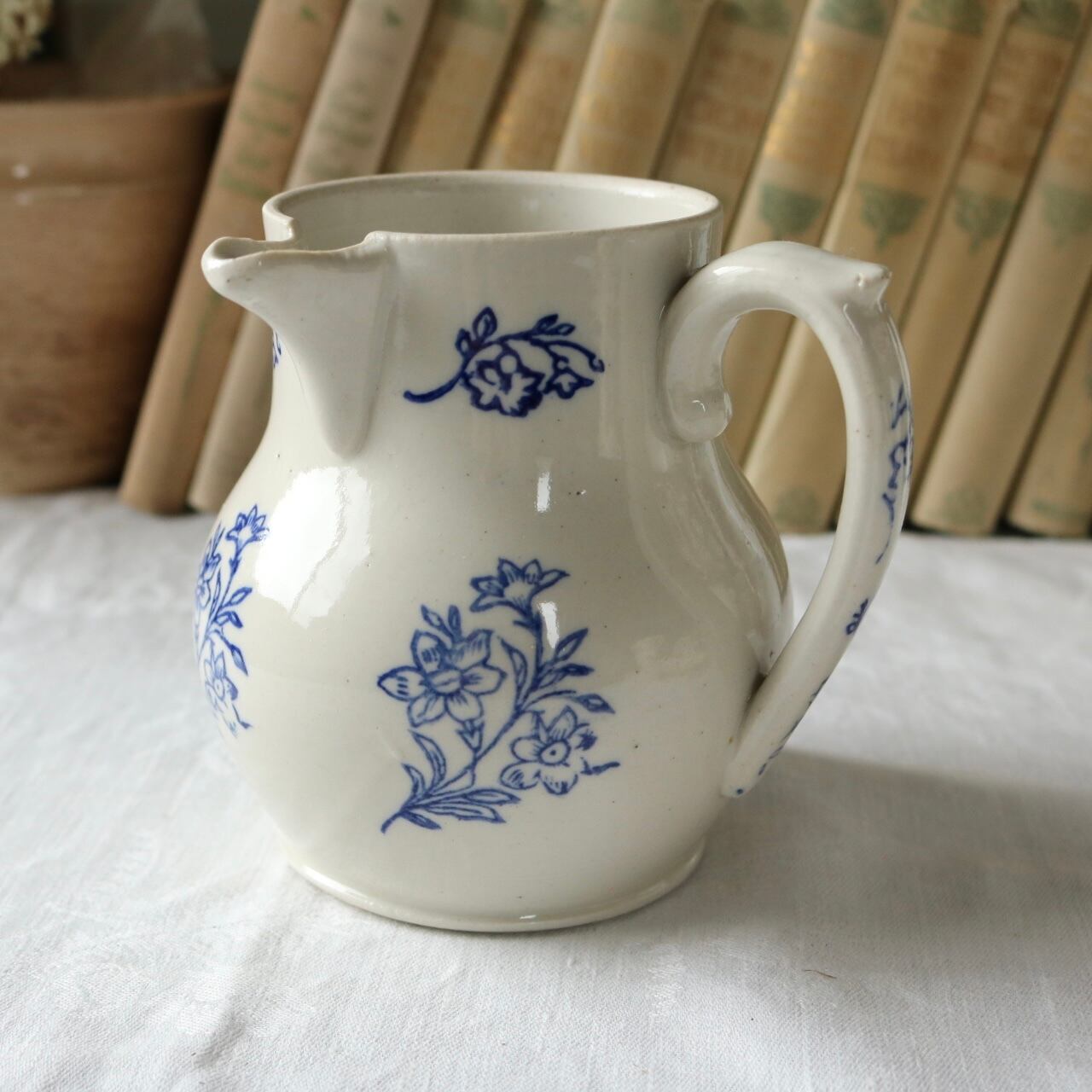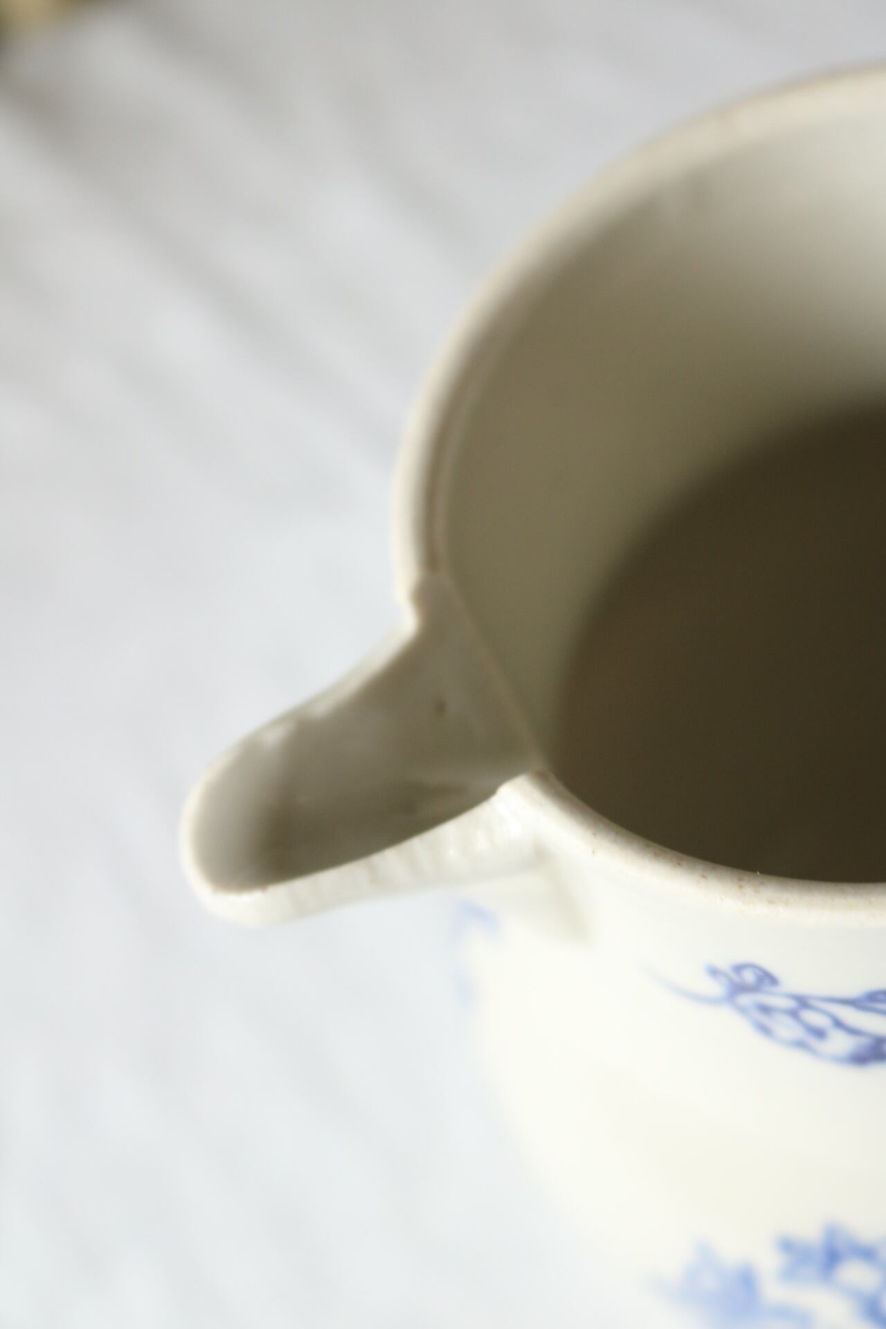 グレーがかった陶肌にブルーのボタニカルな柄