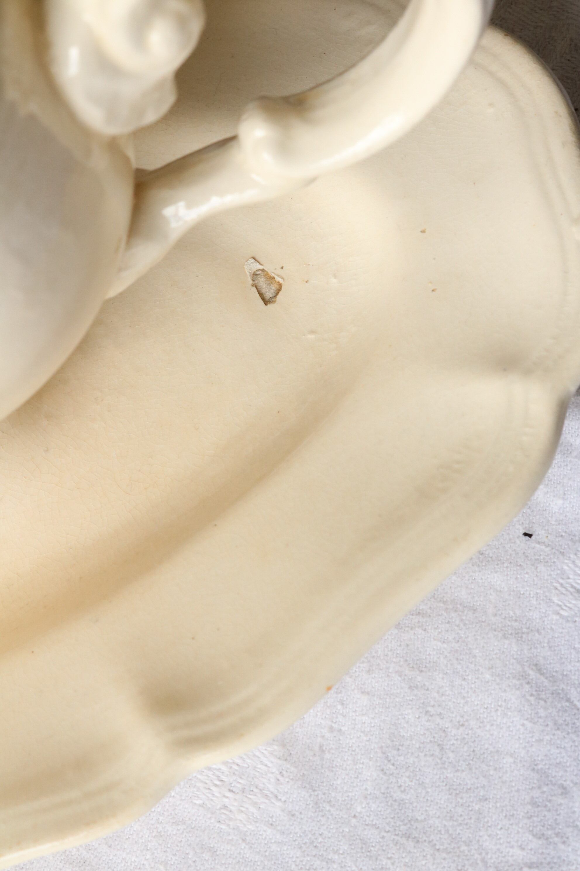 お皿部分焼成時に剥がれたのであろう凹みがございます(写真8枚目)