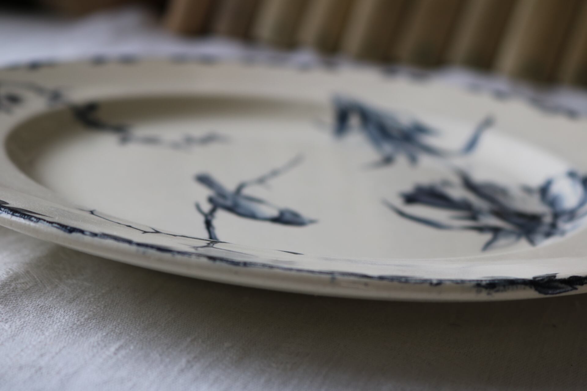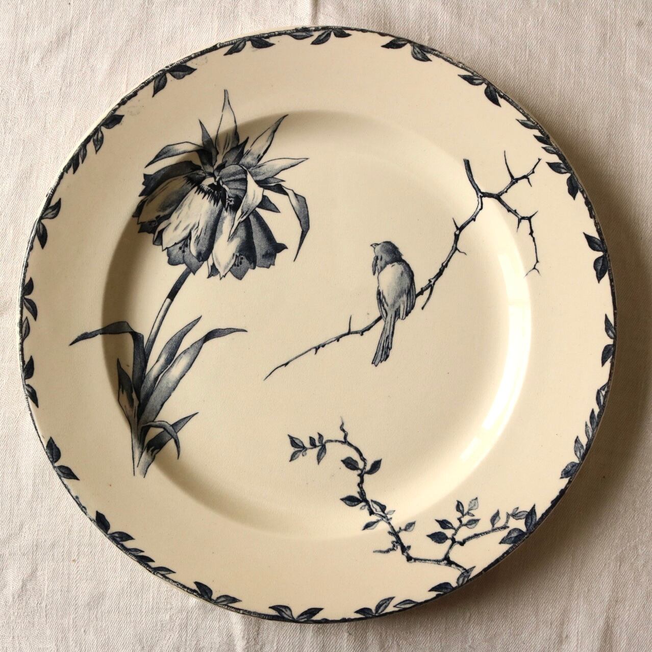 Choisy le roi 平皿 フランス アンティーク プレート 小鳥 藍色