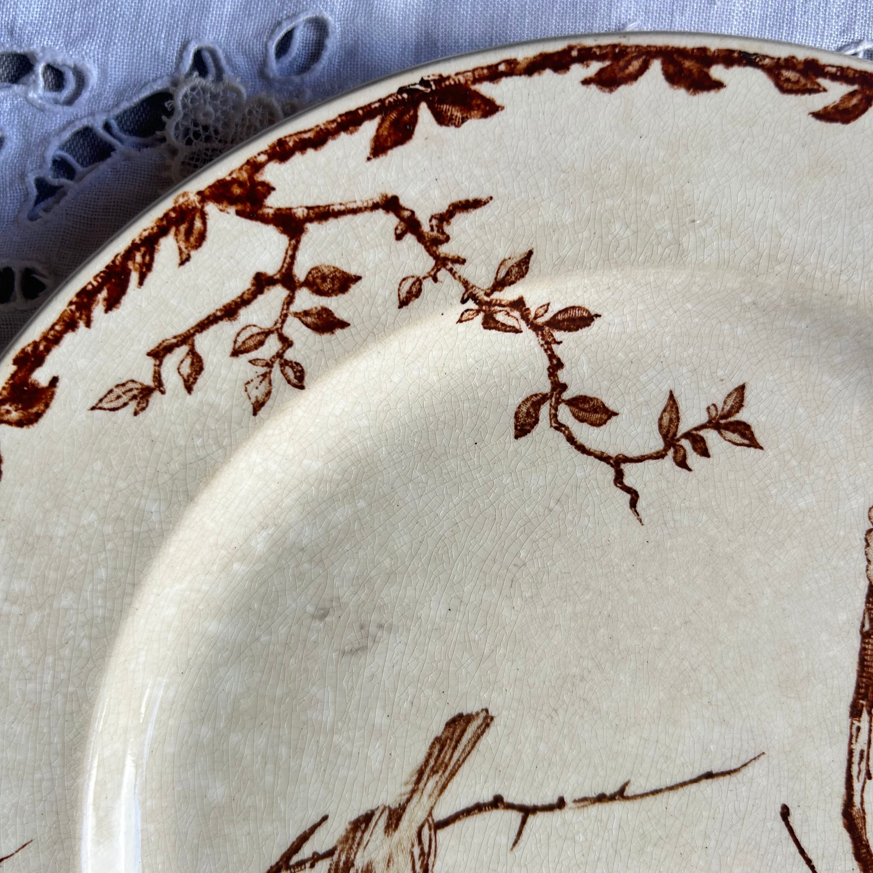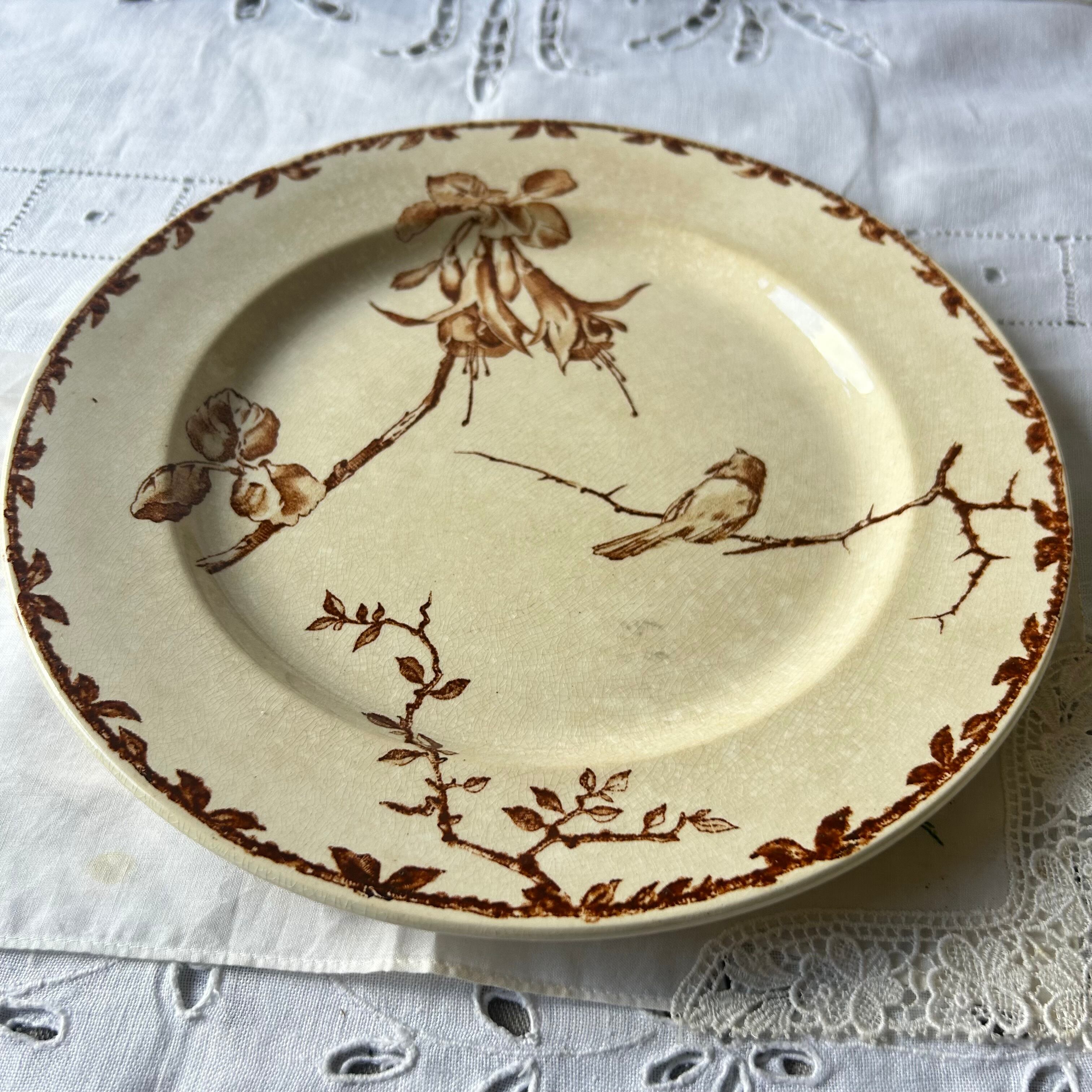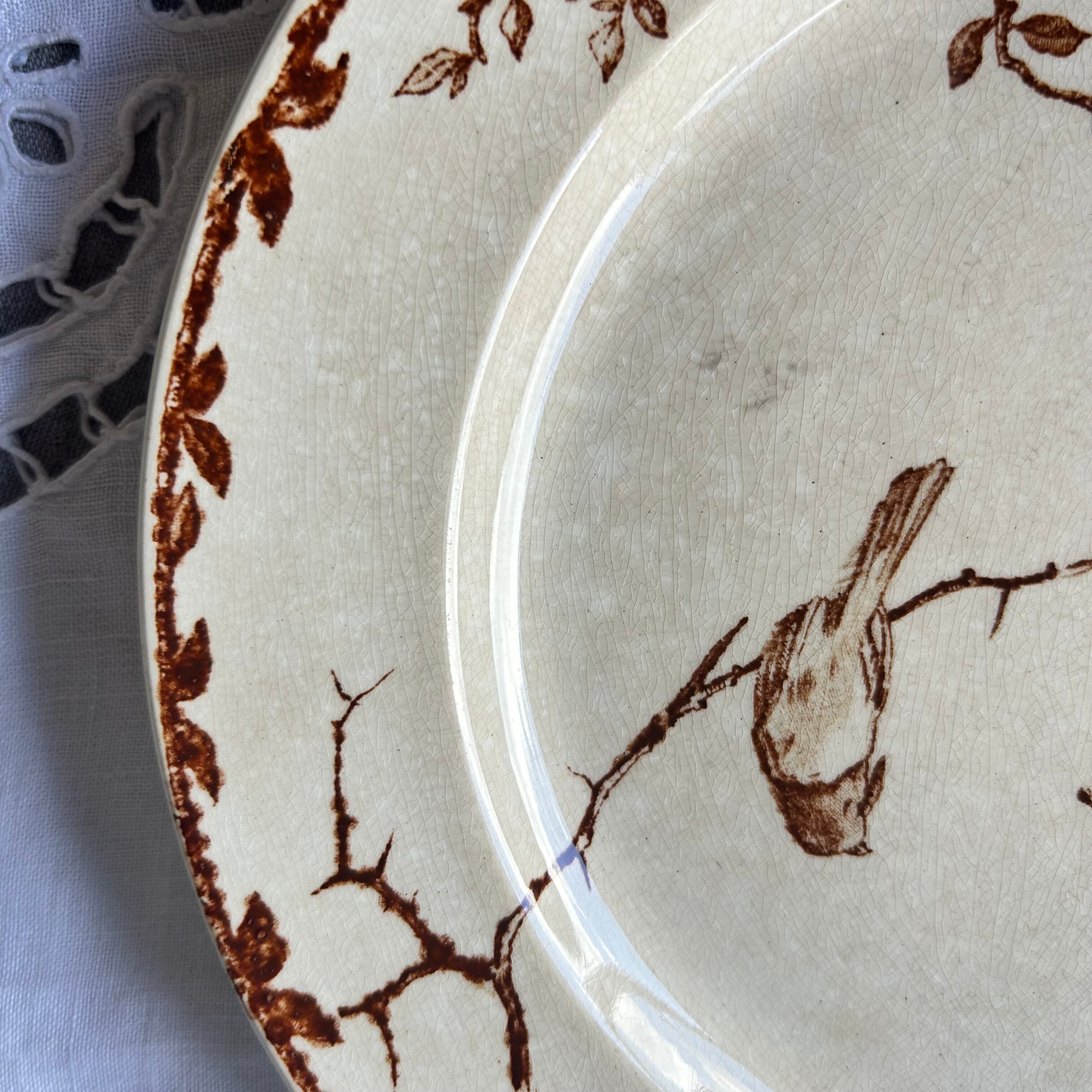 Choisy le roi セピア 平皿 フランス アンティーク プレート 小鳥 藍色