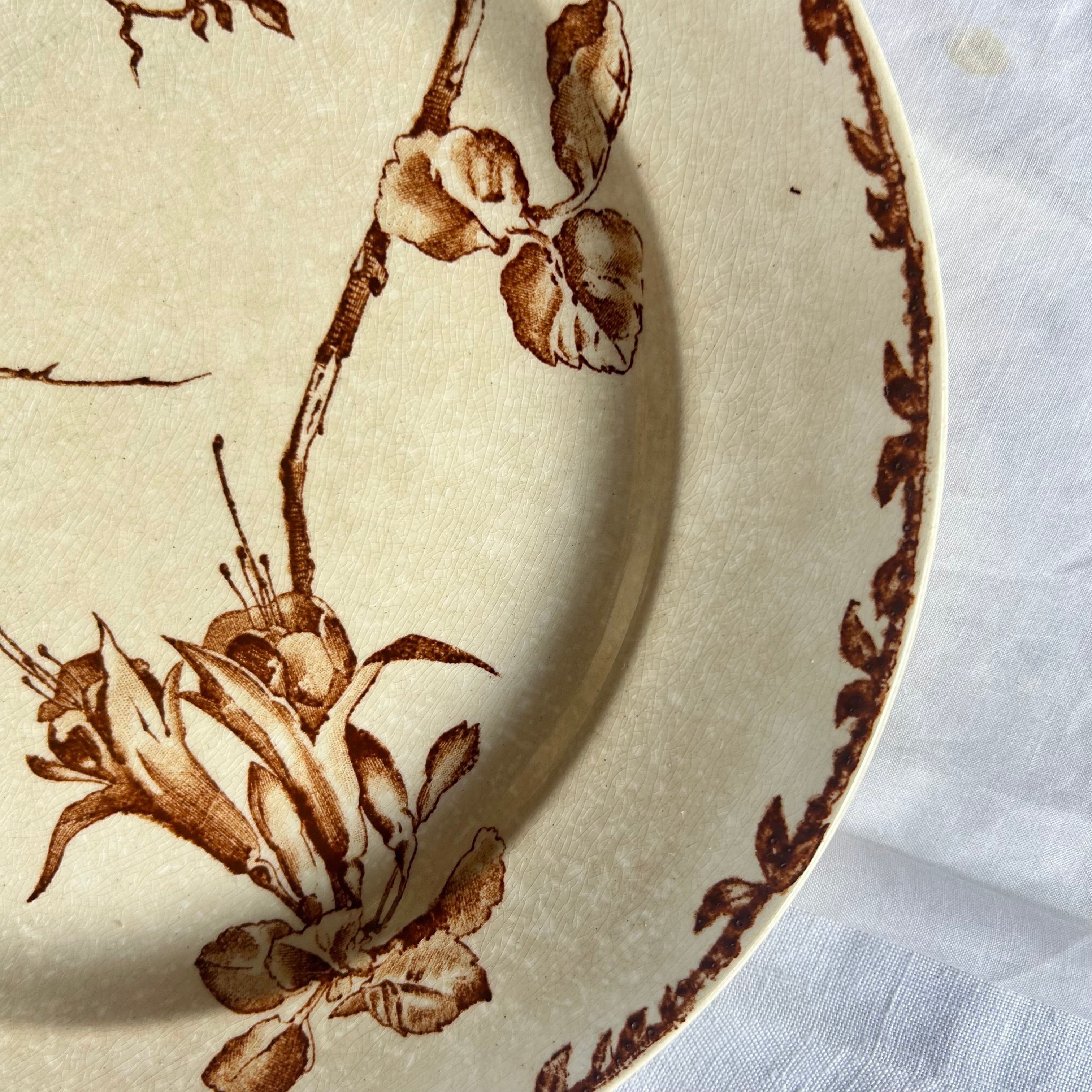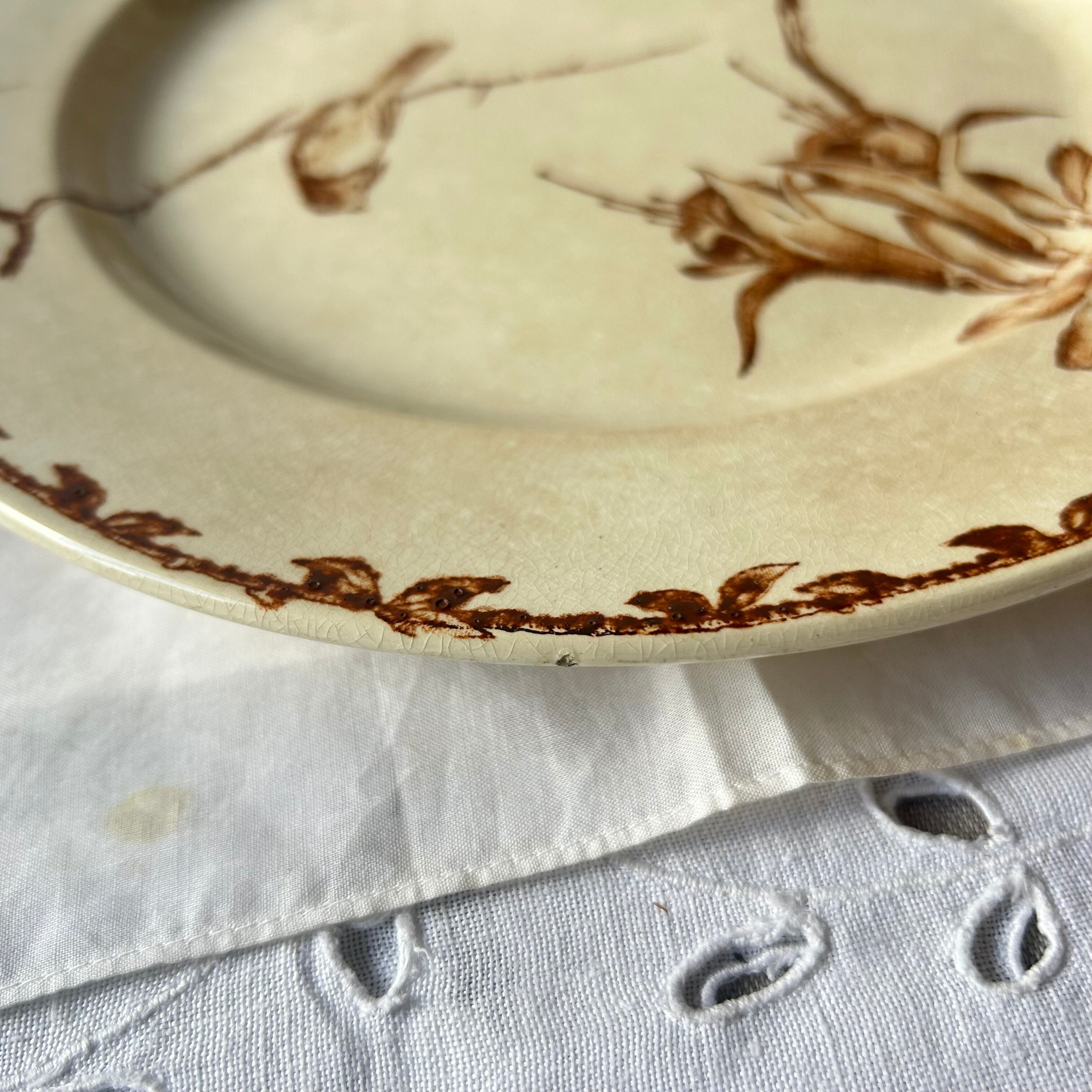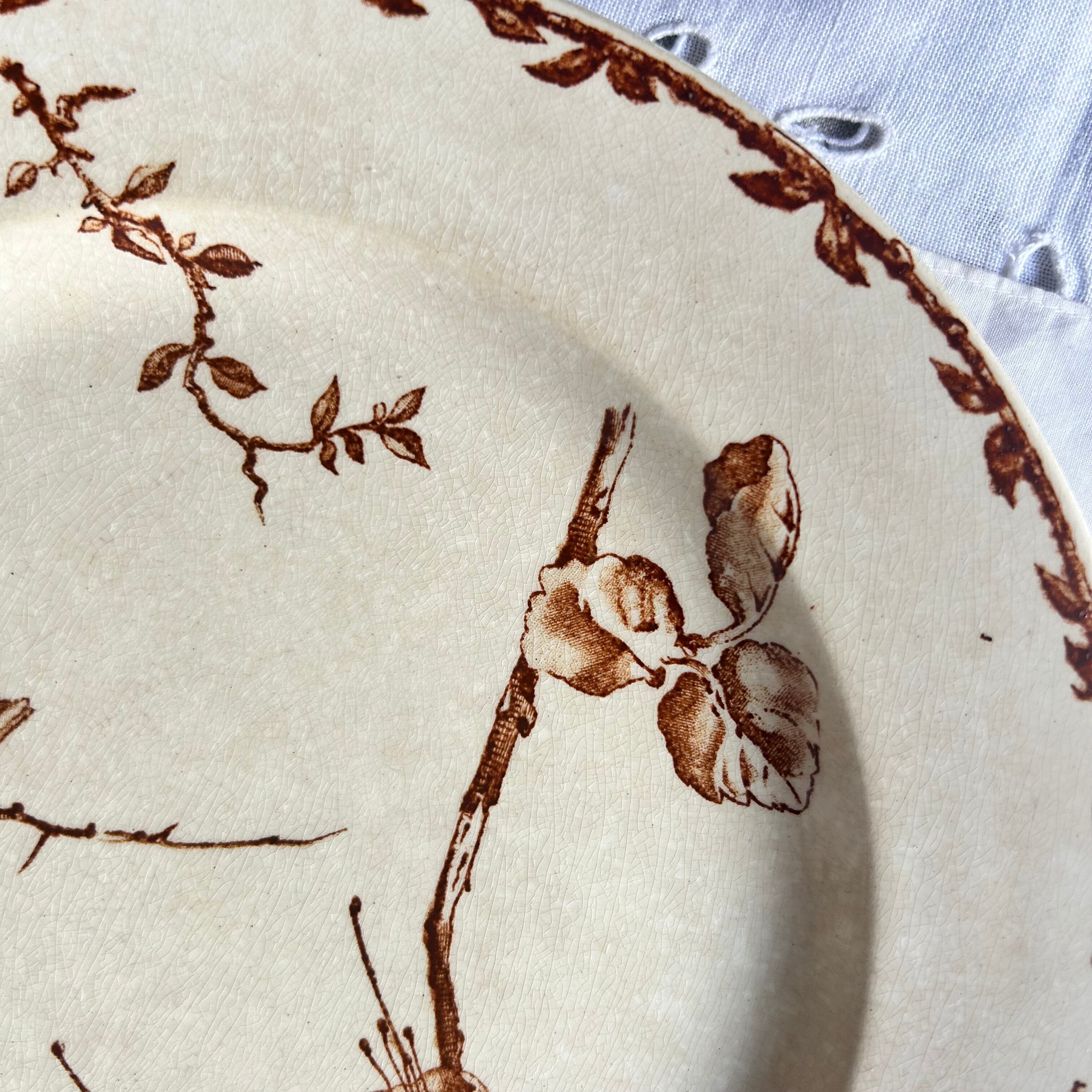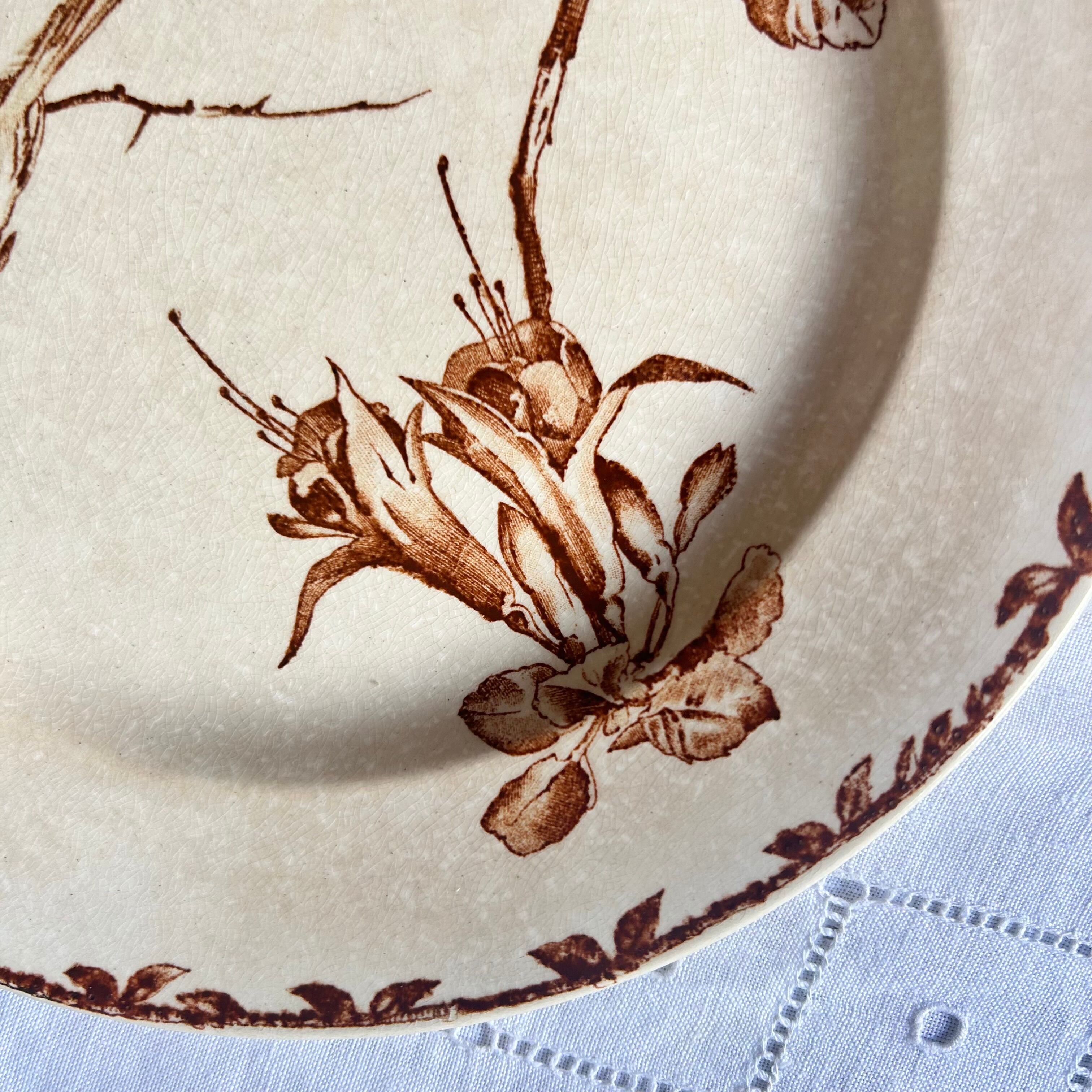 Choisy le roi セピア 平皿 フランス アンティーク プレート 小鳥 藍色