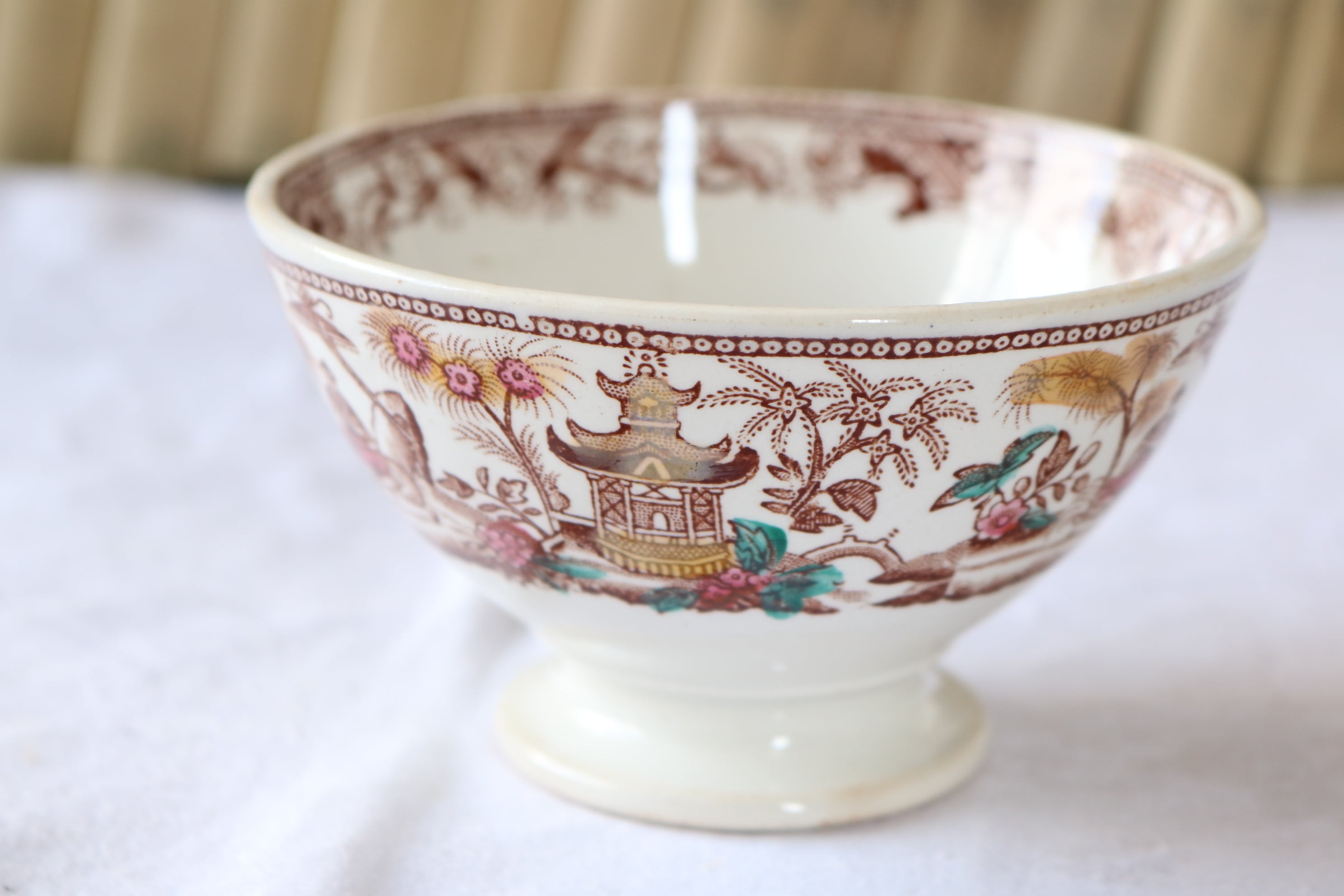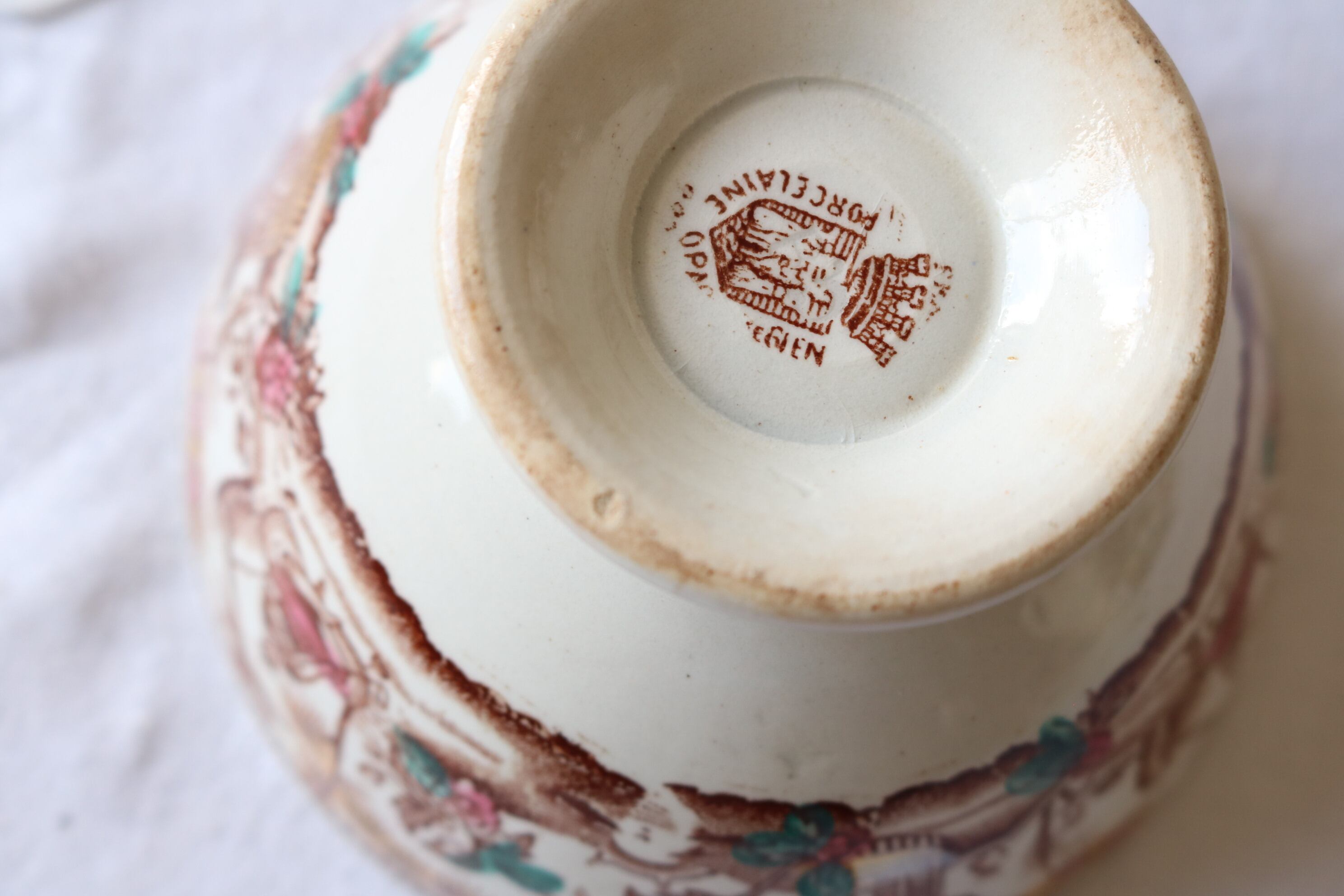 Gien B ジャポニズム シノワズリ ブラウンカラーの カフェオレボウル カップ
