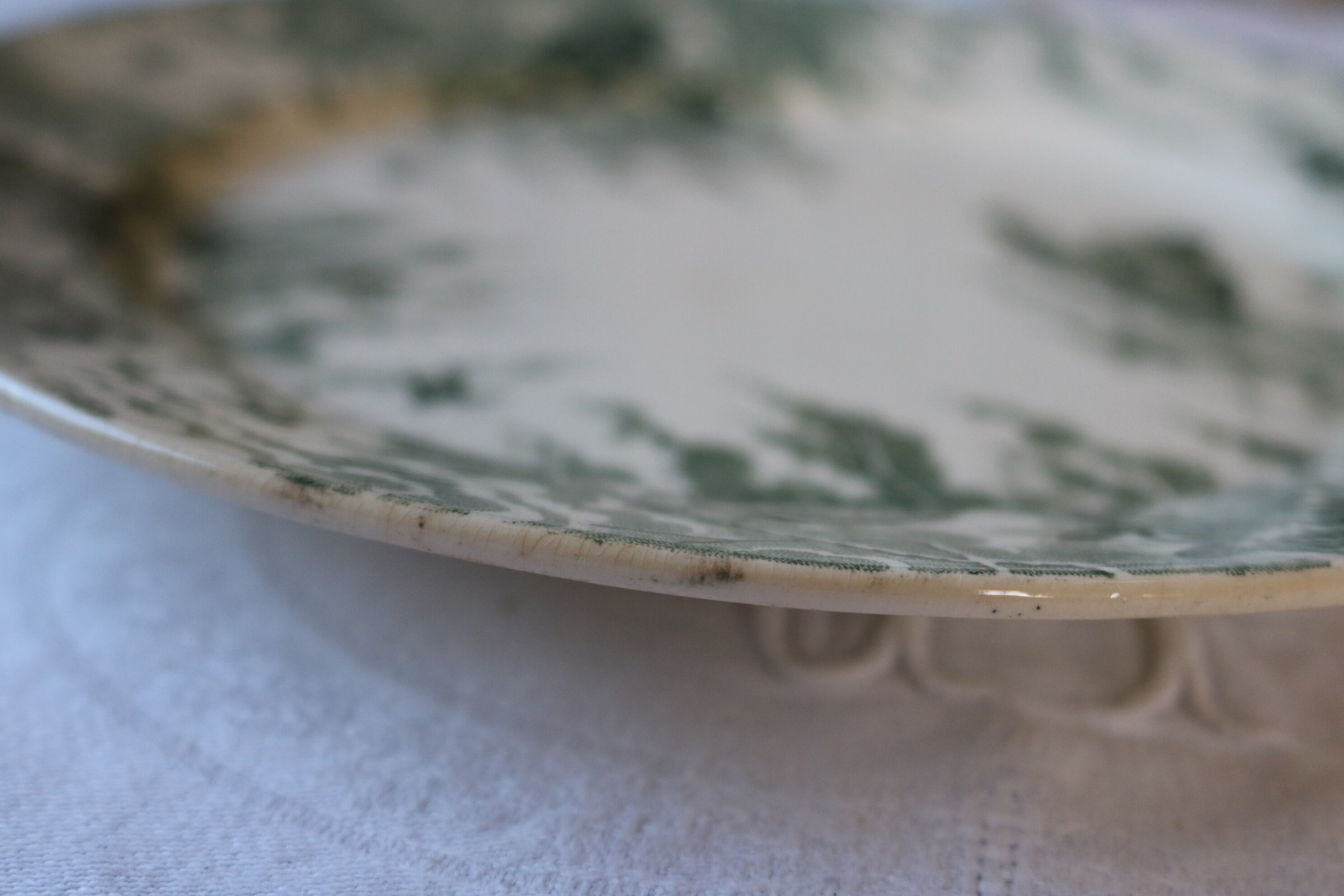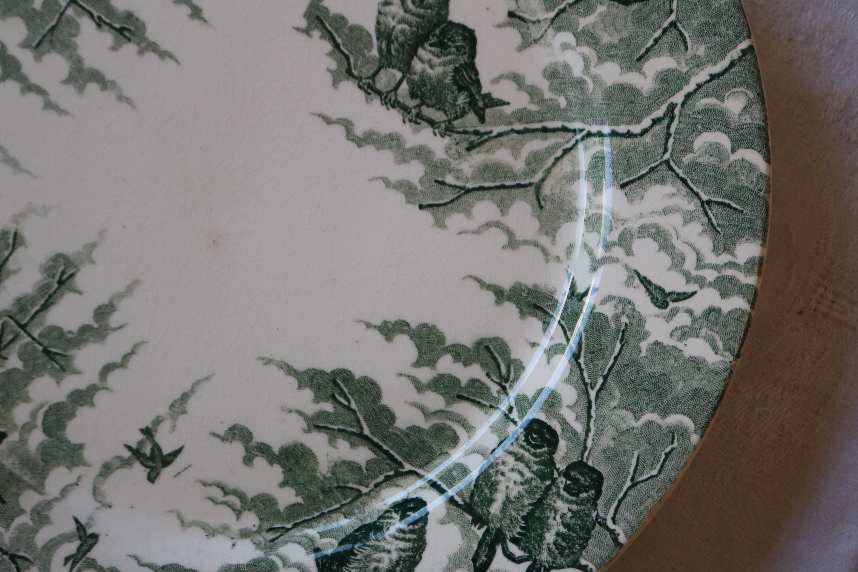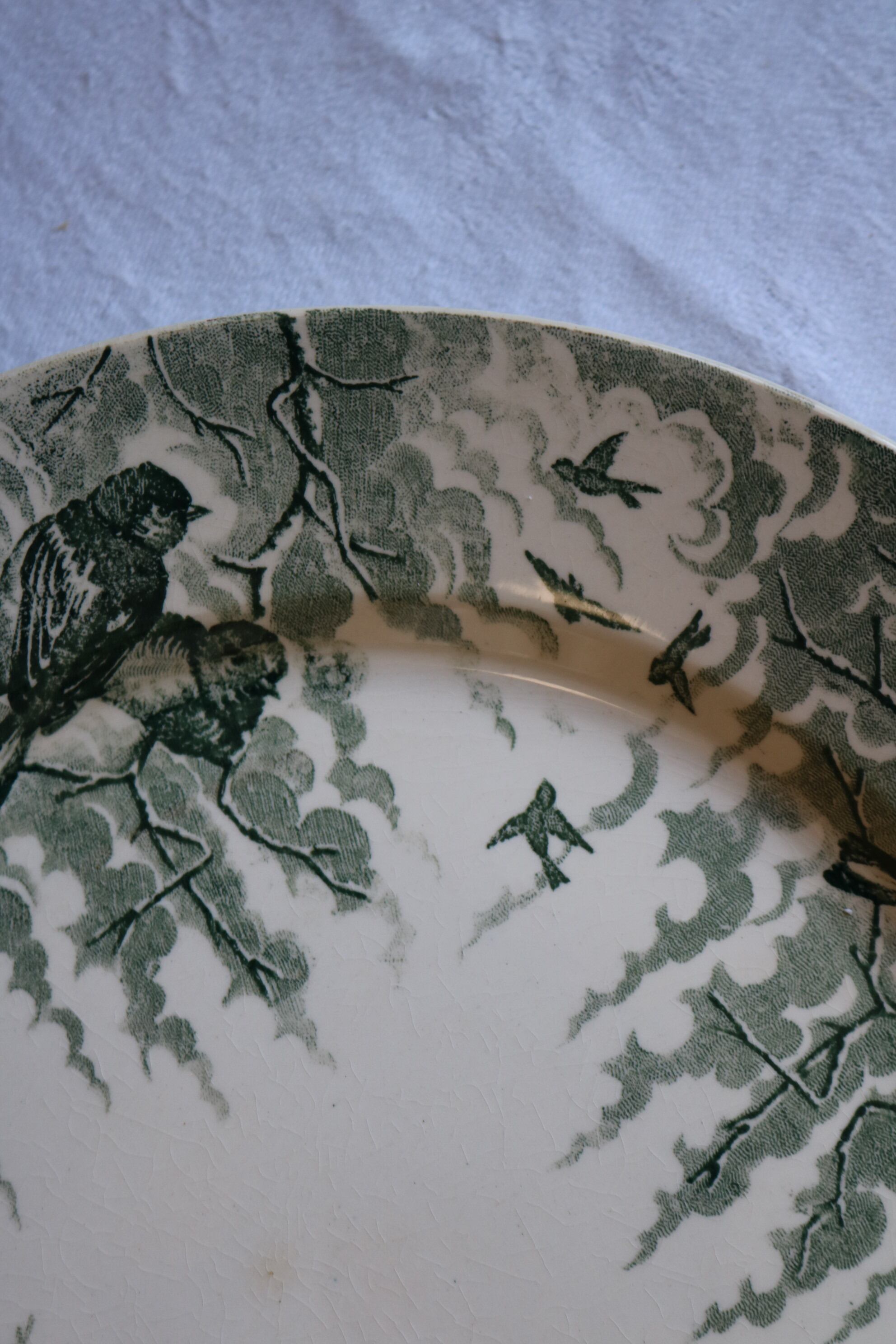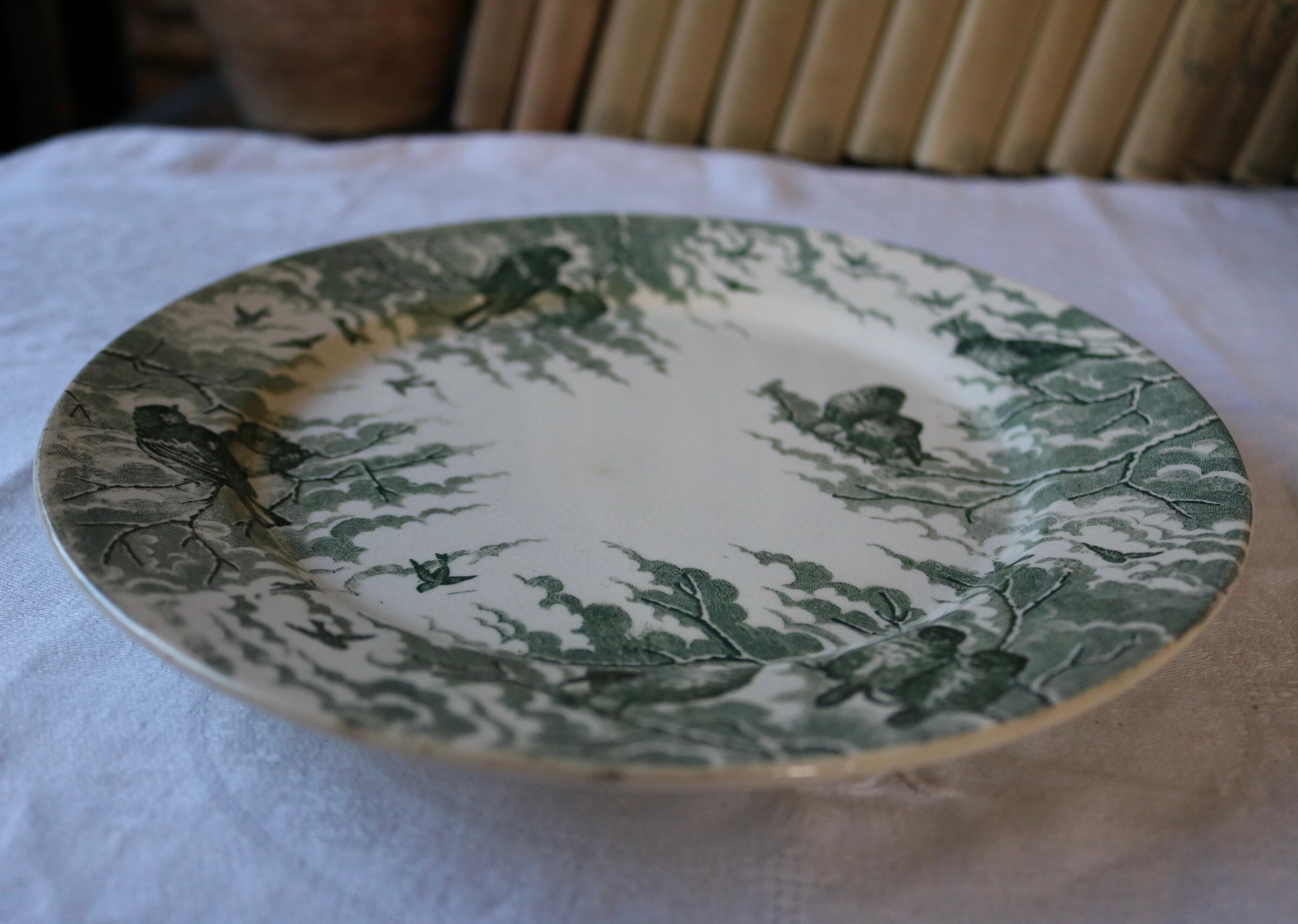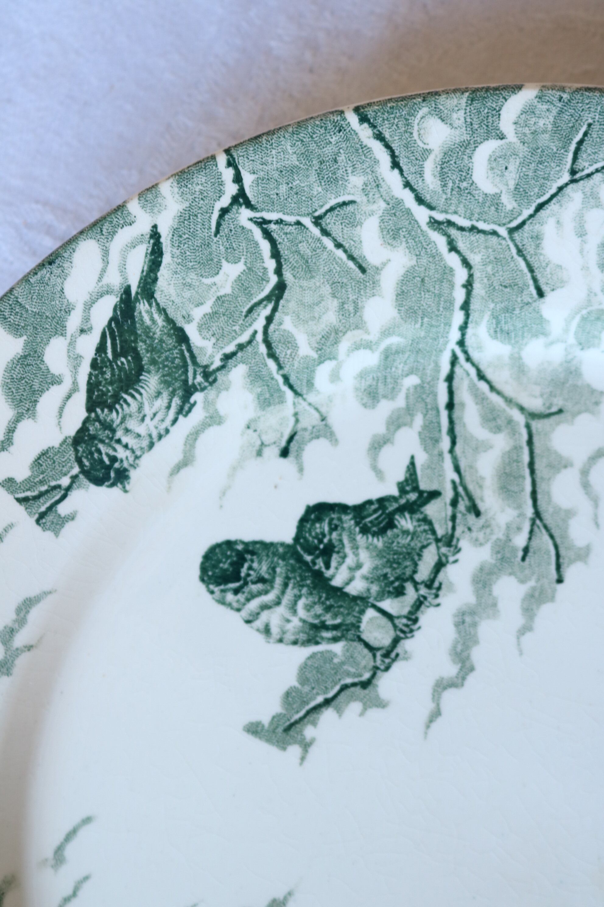 Sarreguemines 鳥 グリーン プレート フランス アンティーク